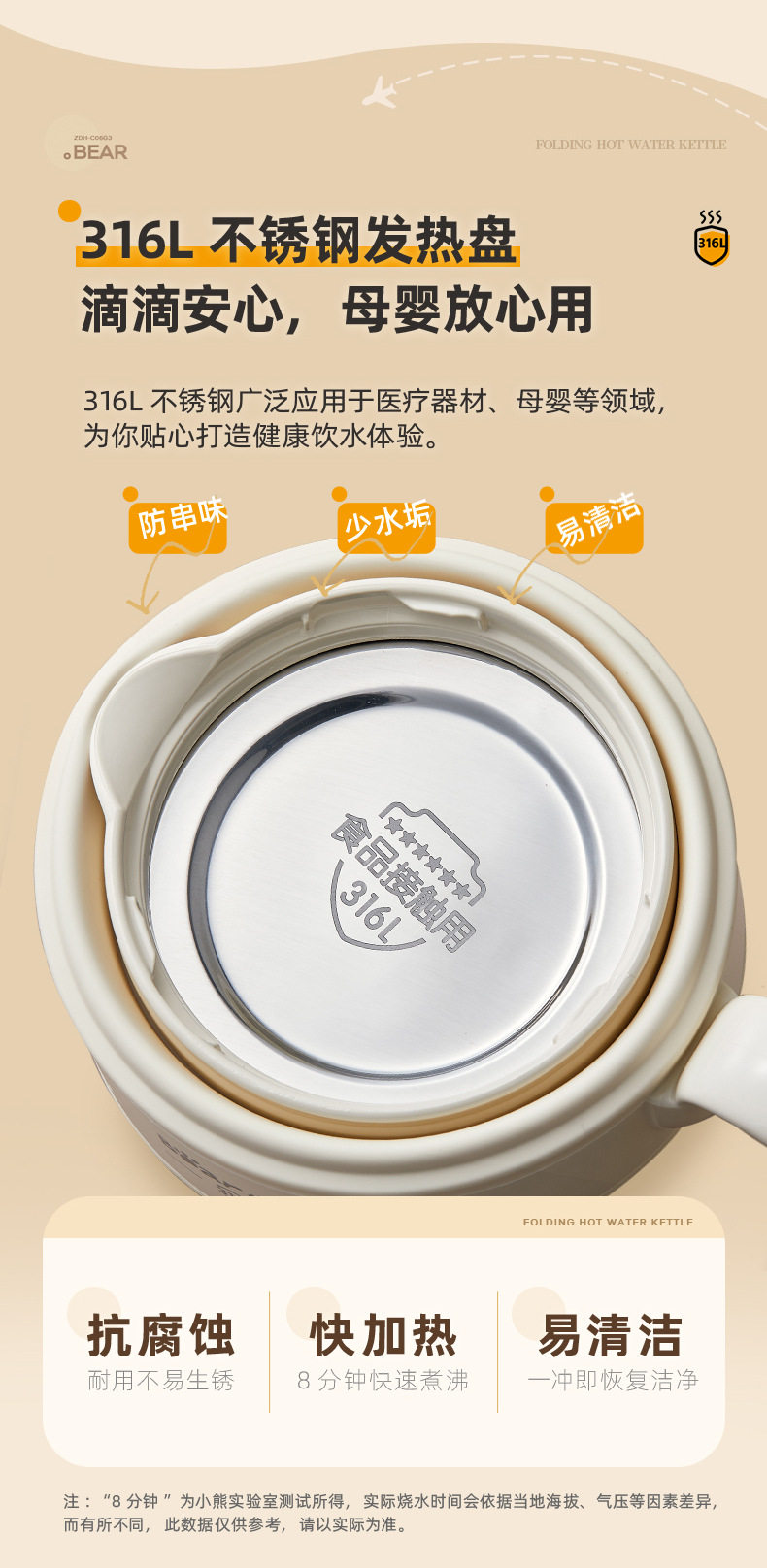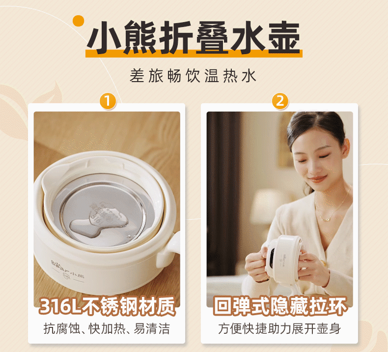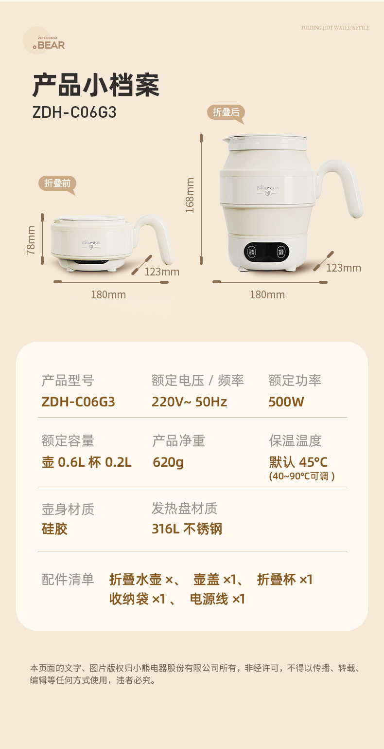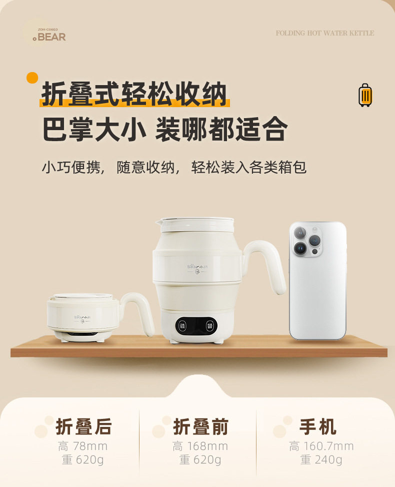 Bear Portable Kettle ZDH-C06G3 Electric Kettle Folding Kettle Mini Boating Water Cup for Traveling Home Use