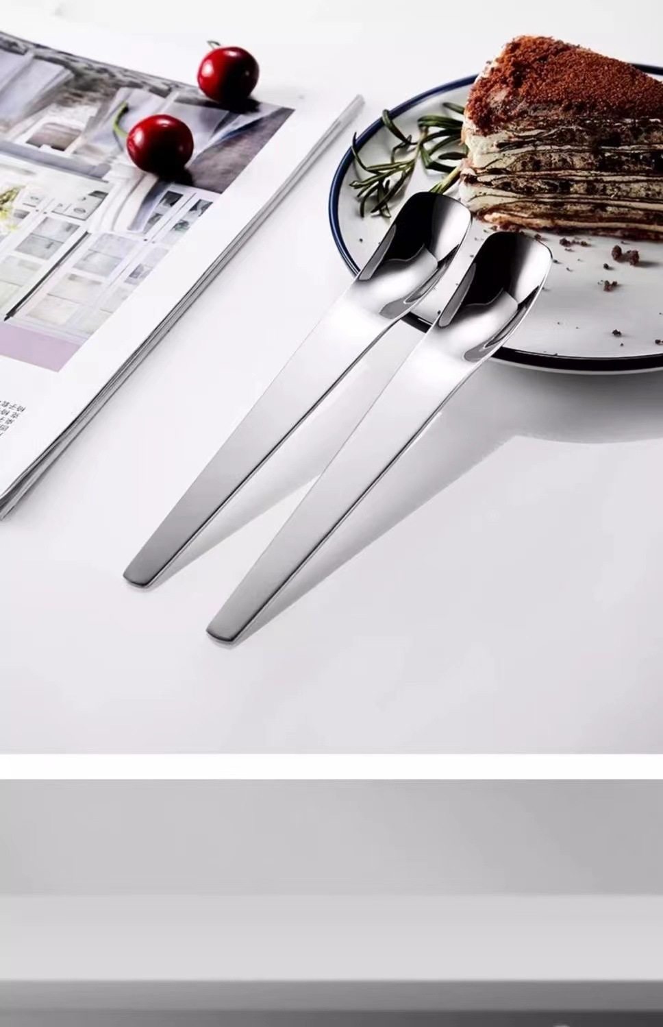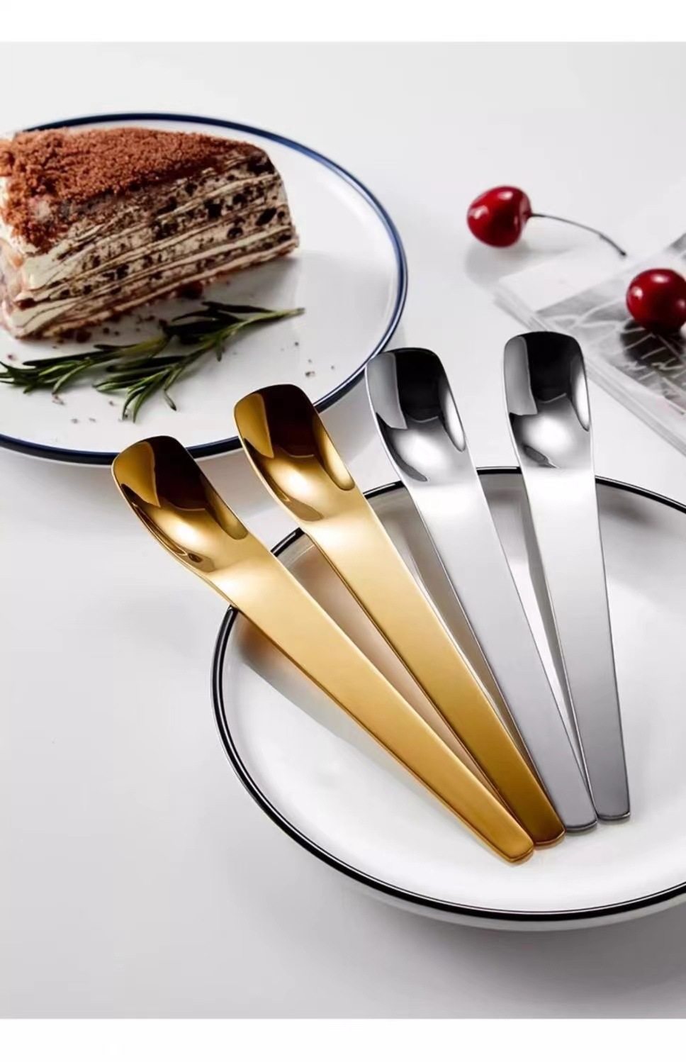 304 Stainless Steel Spoon Thickeneded Long Handle Dessert Spoon Cake Spoon Bread Cheese Spoon Flat Head Stirring Spoon Cat Food Spoon