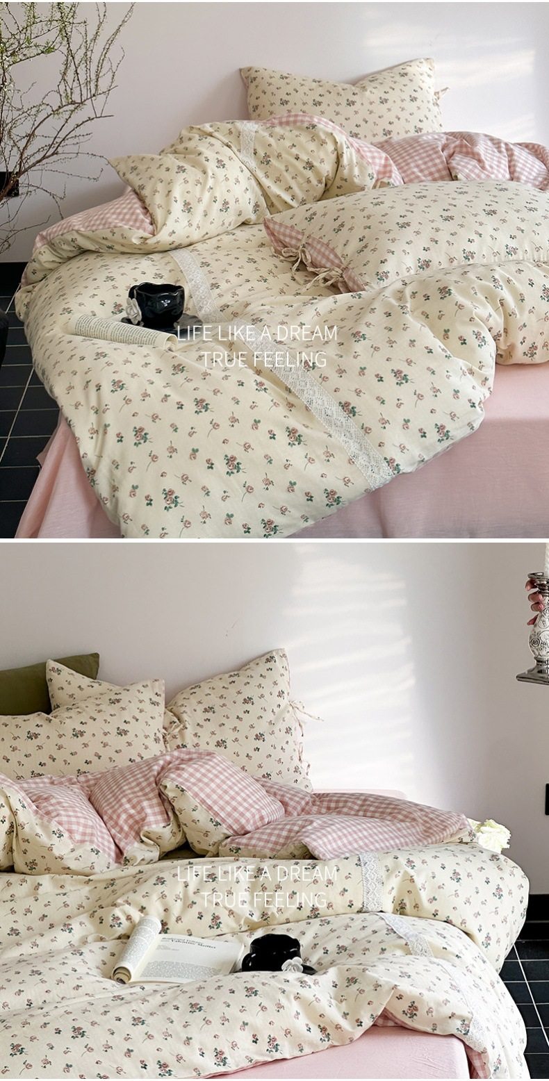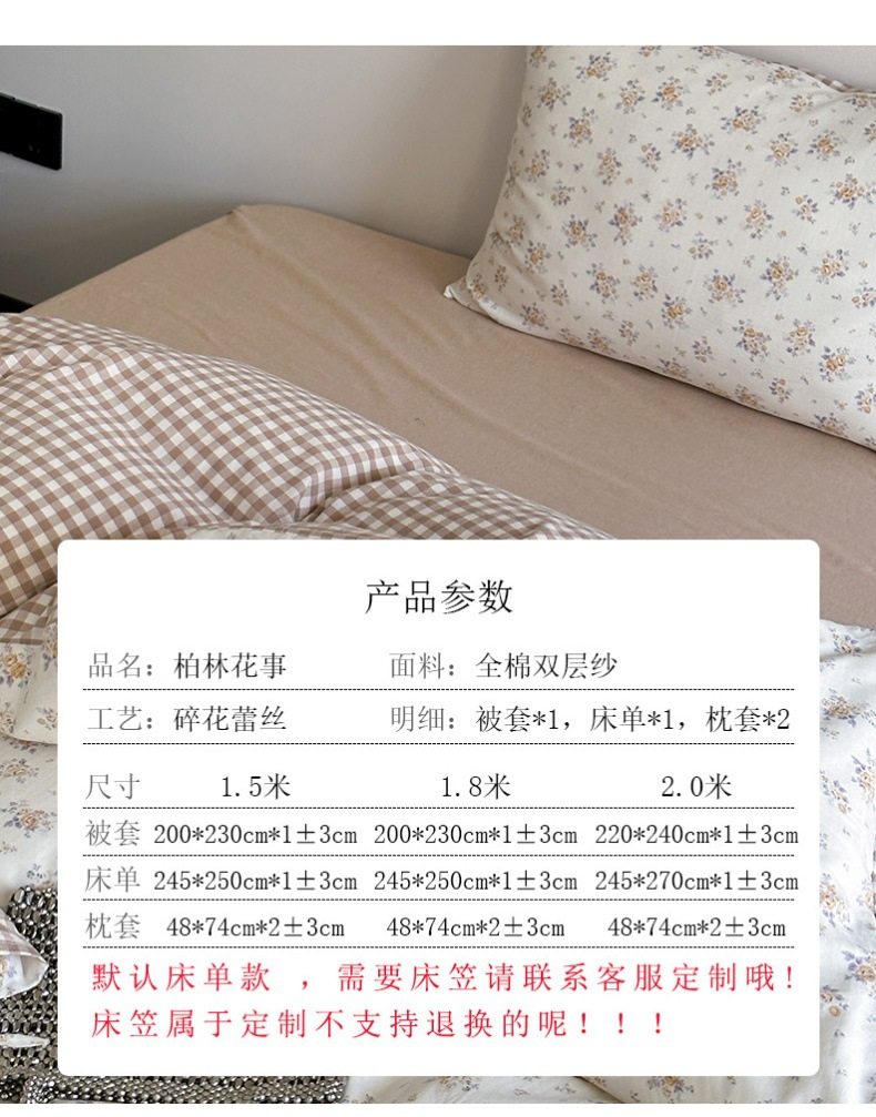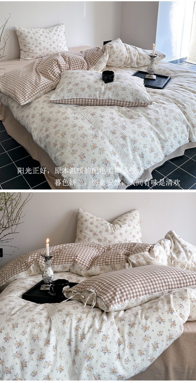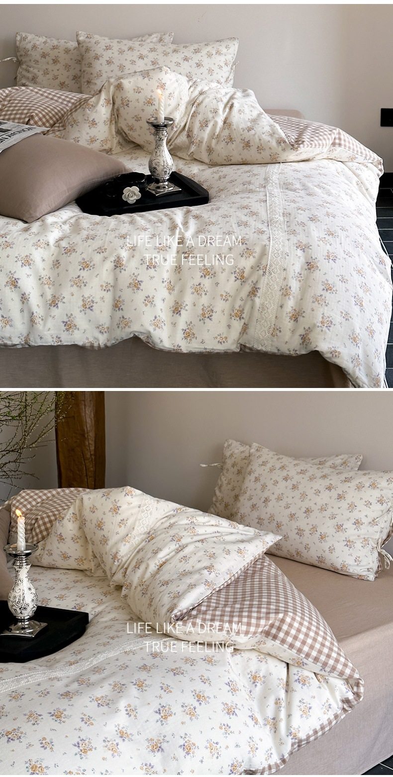 Small fresh floral cotton double-layer yarn four-piece set Korean lace gentle wind cotton quilt bedding soft