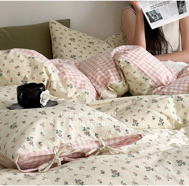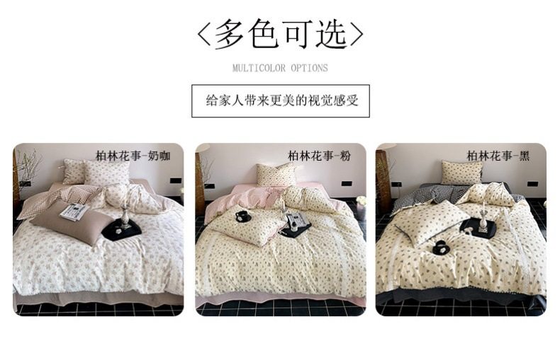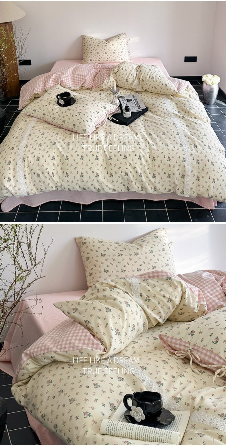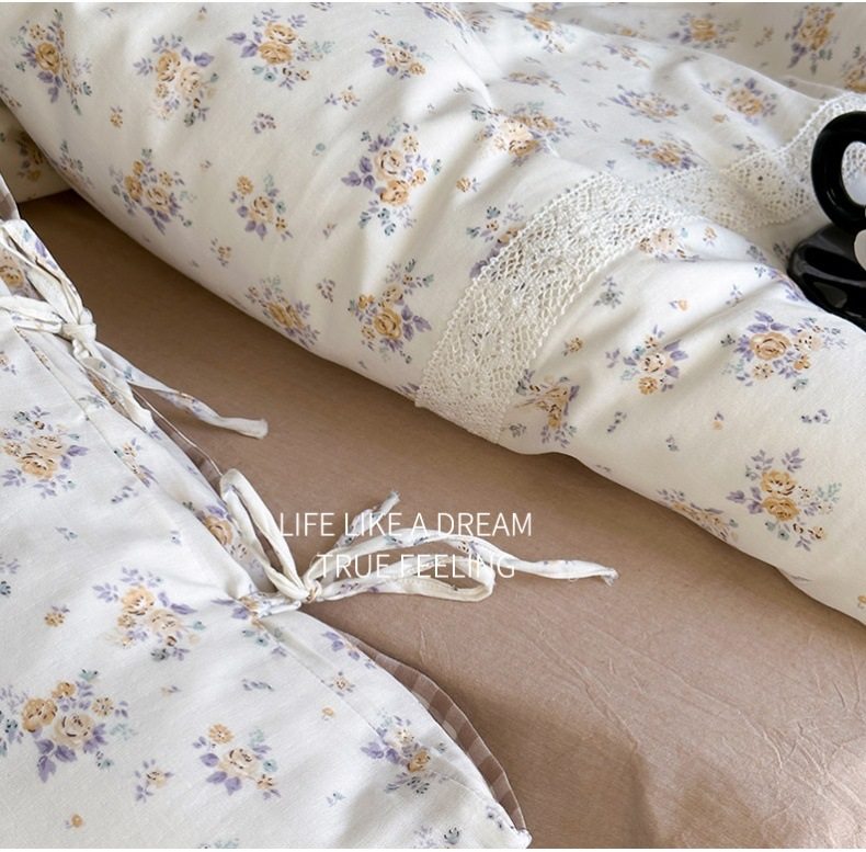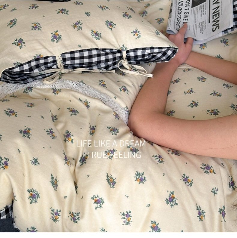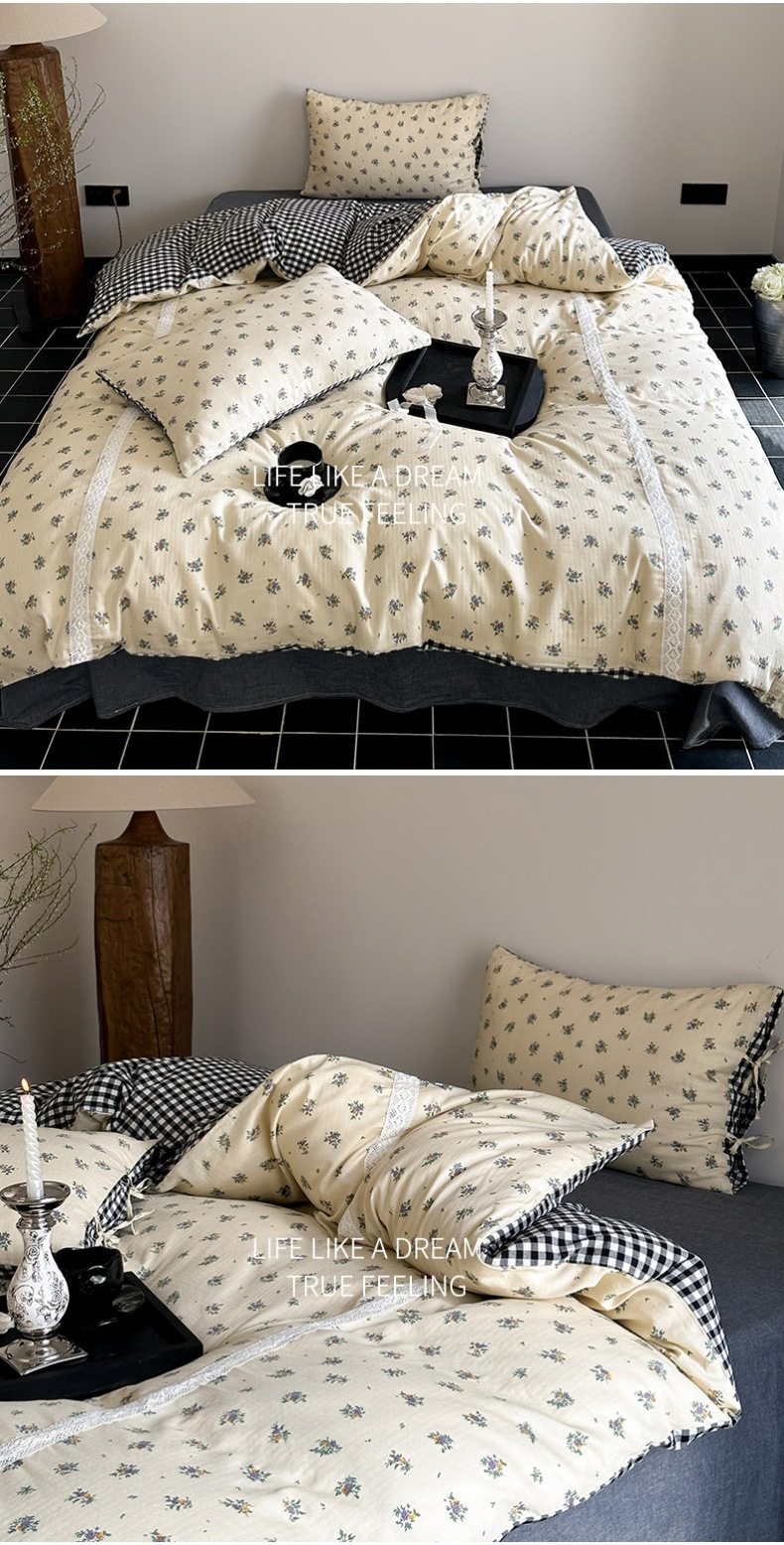 Small fresh floral cotton double-layer yarn four-piece set Korean lace gentle wind cotton quilt bedding soft