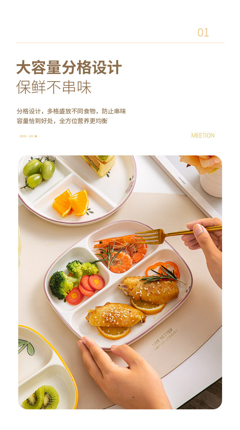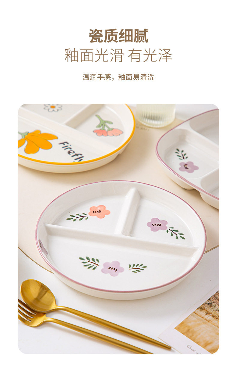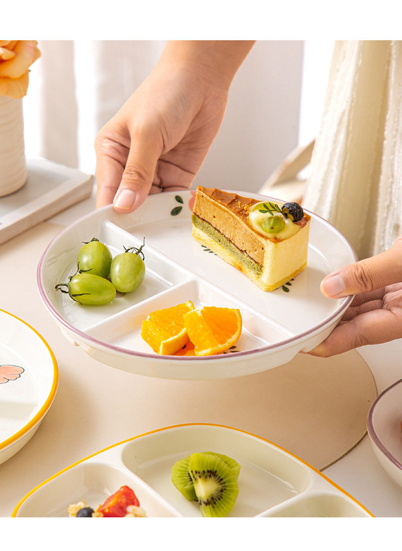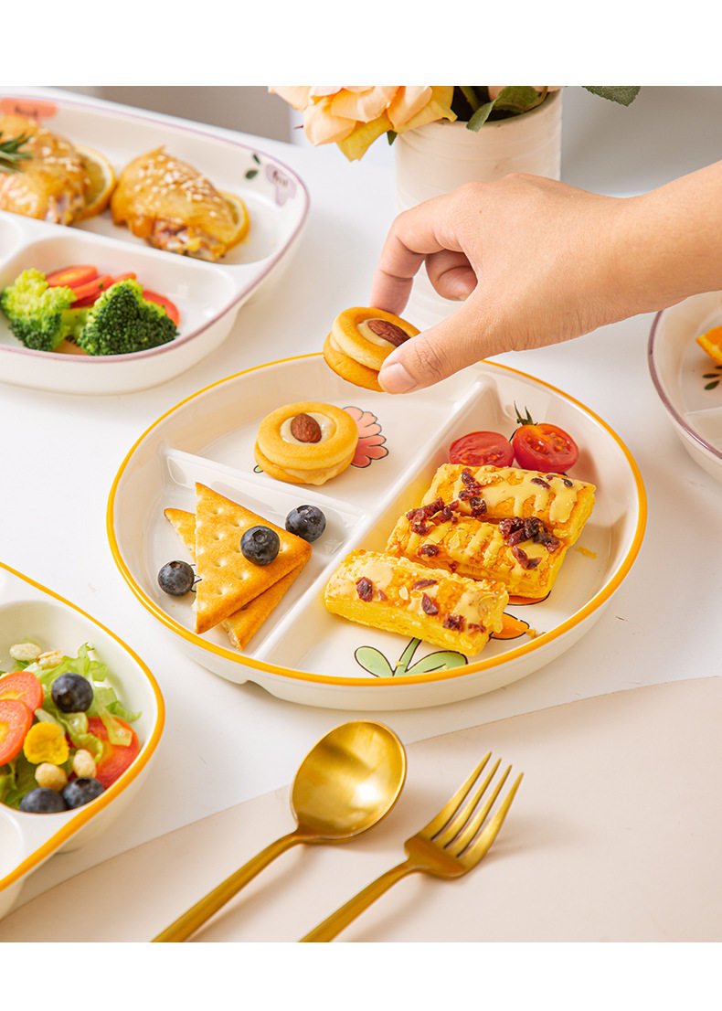 Compartmented Fat-Reducing Dinner Plate for One Person, Home Breakfast Tableware, Kidsren's Ceramic Scandinavian Quantitative Plate, Three-Compartment Dinner Plate