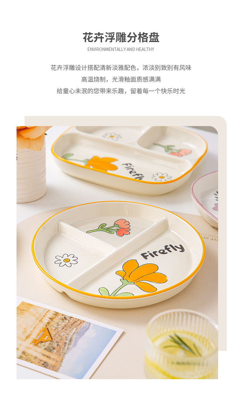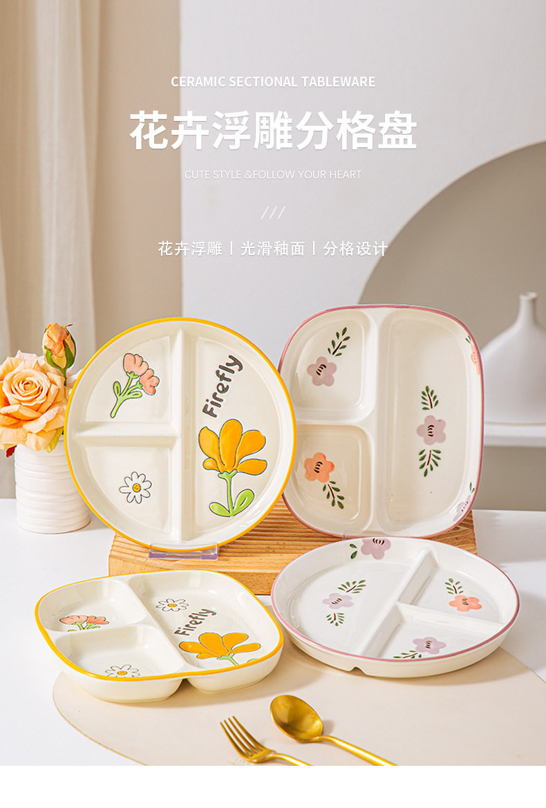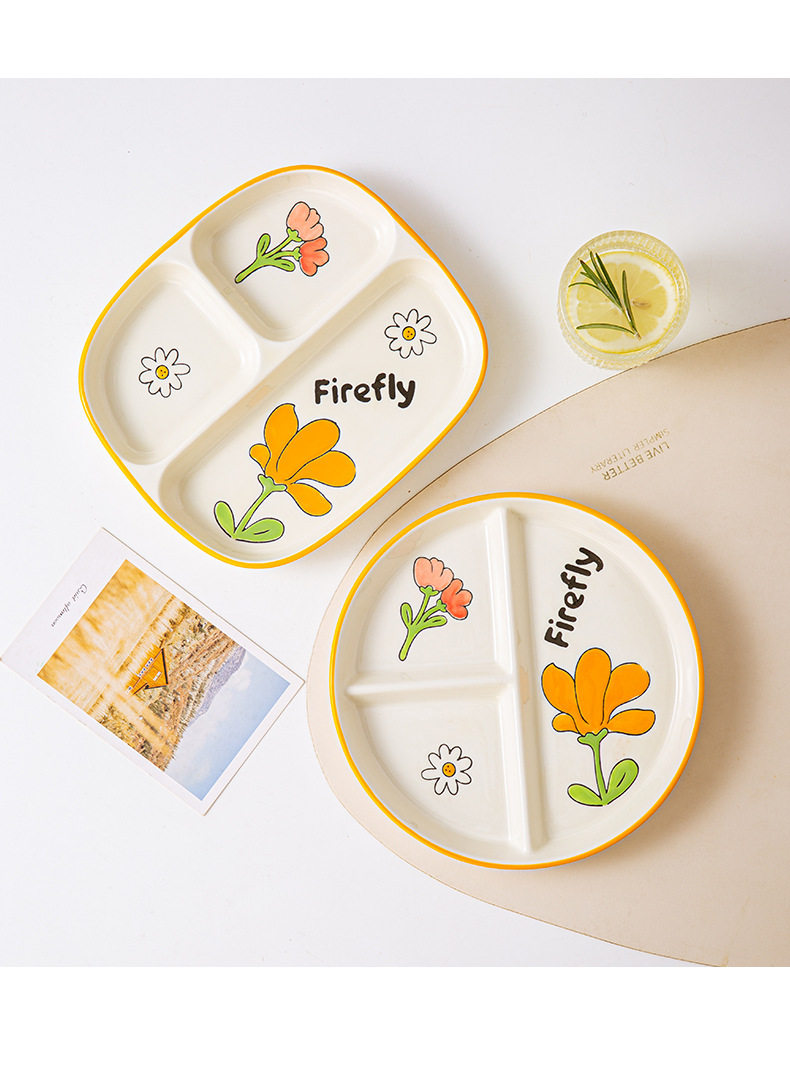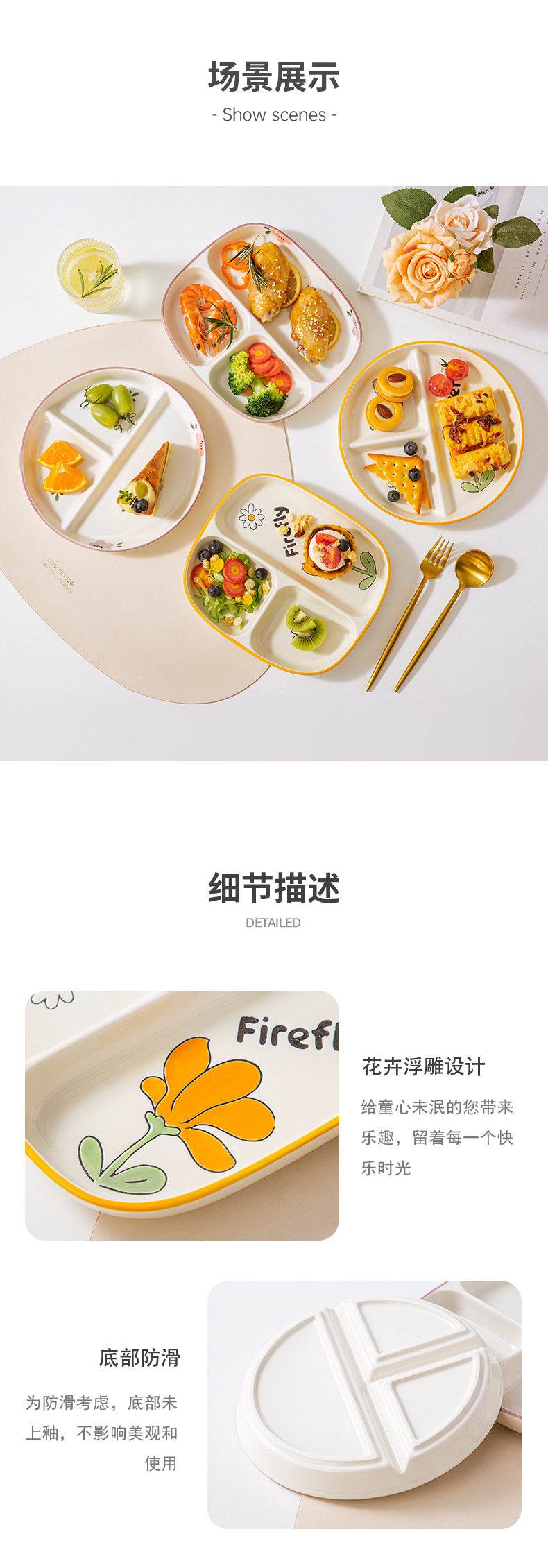 Compartmented Fat-Reducing Dinner Plate for One Person, Home Breakfast Tableware, Kidsren's Ceramic Scandinavian Quantitative Plate, Three-Compartment Dinner Plate