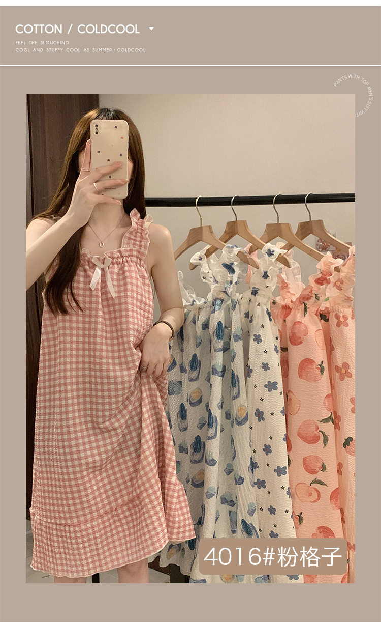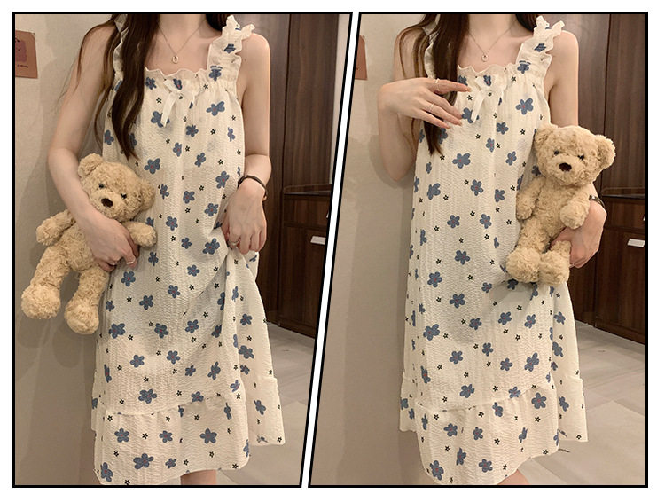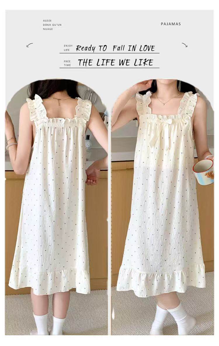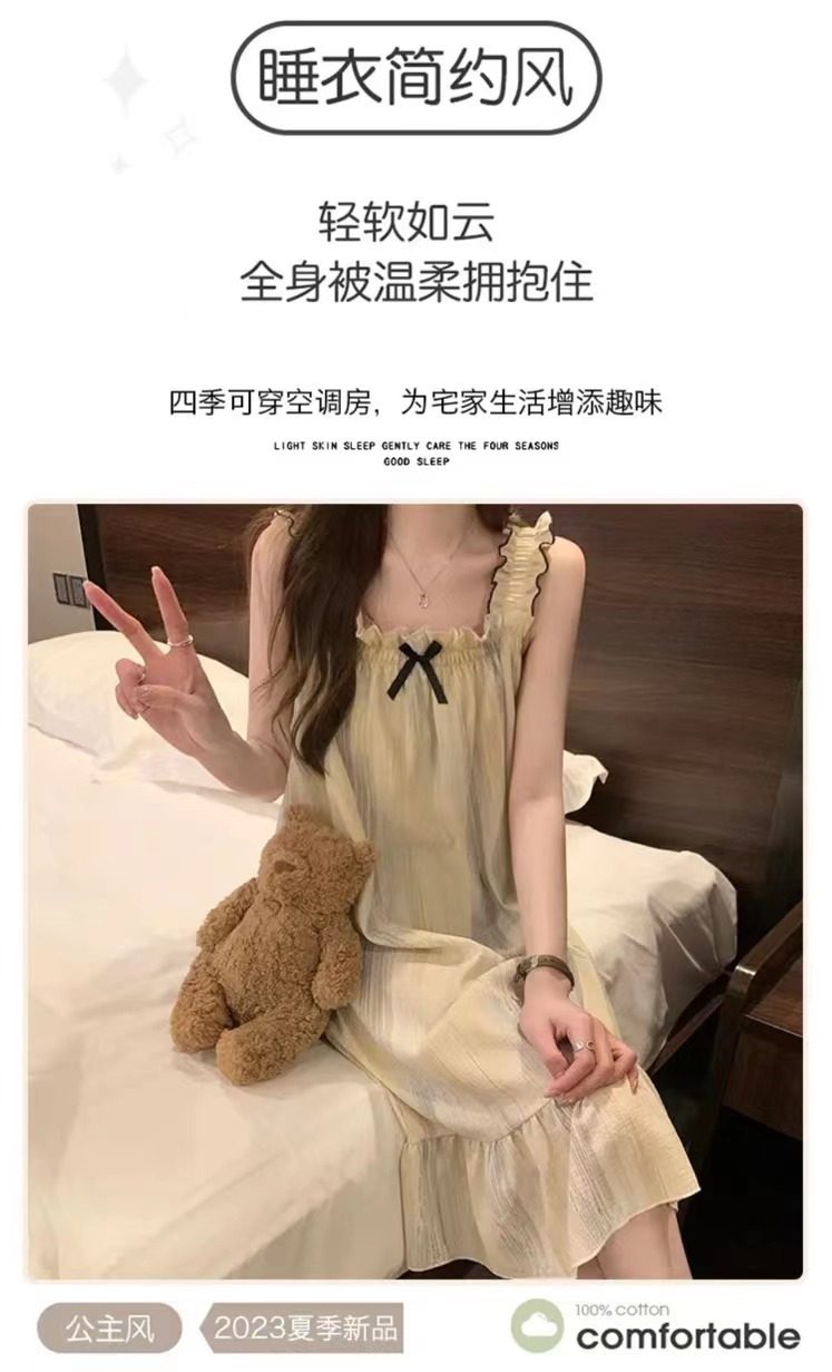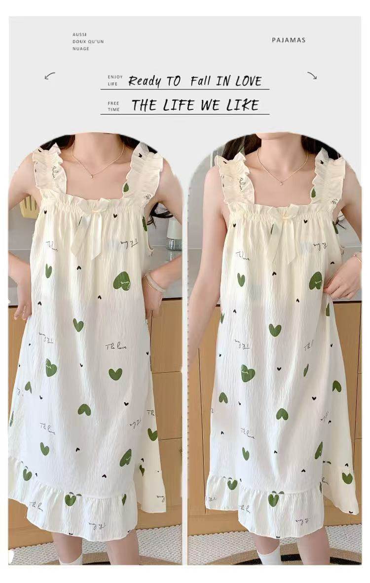2025 New Style Nightgown Cotton Vertical Striped Sling Mother Pregnant Women Pure Desire Style Pajamas Women's Summer Skirt Simple
