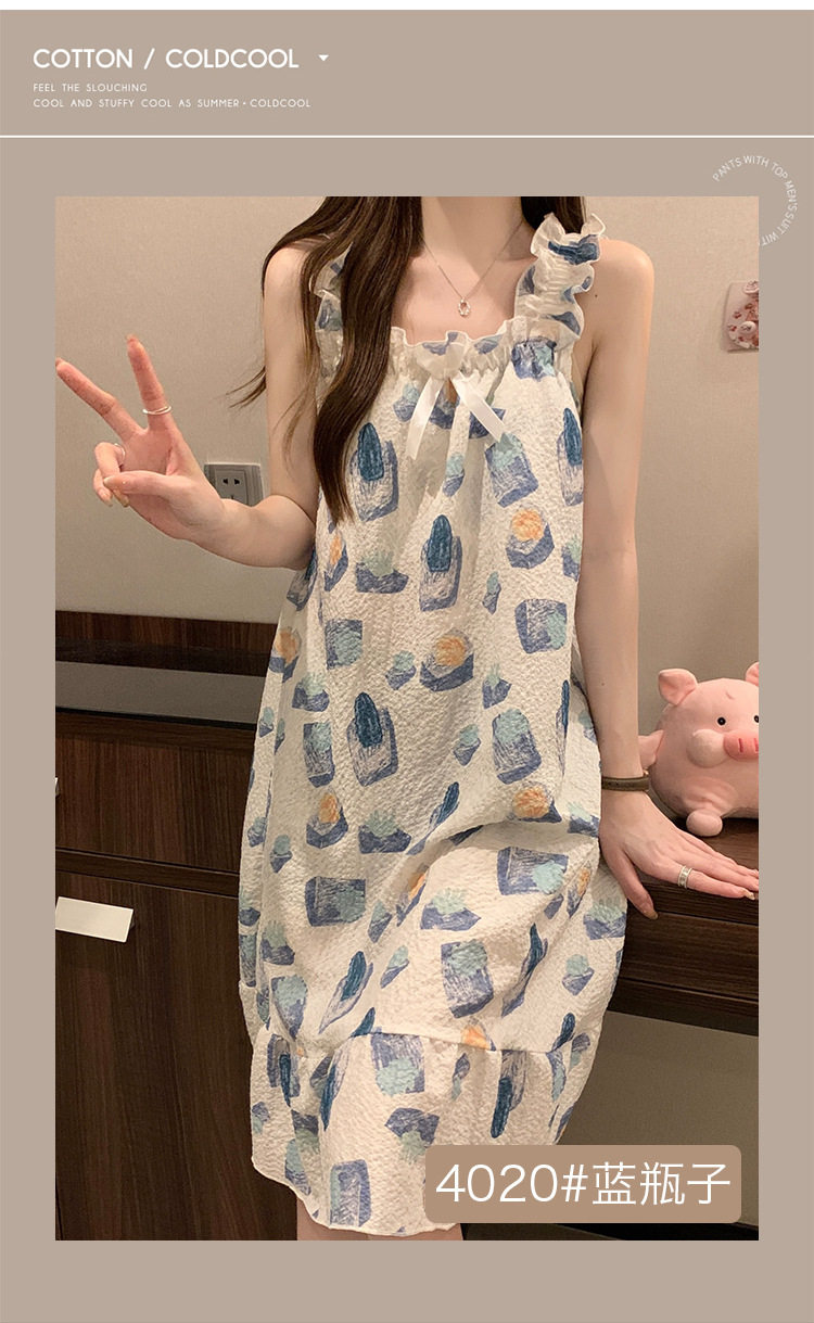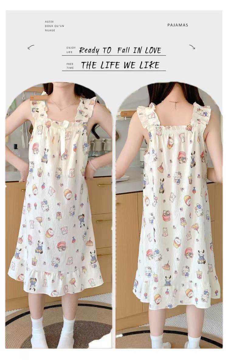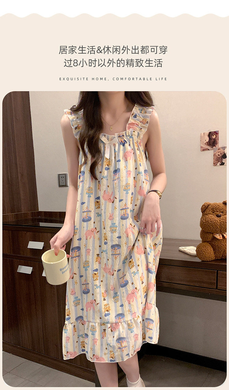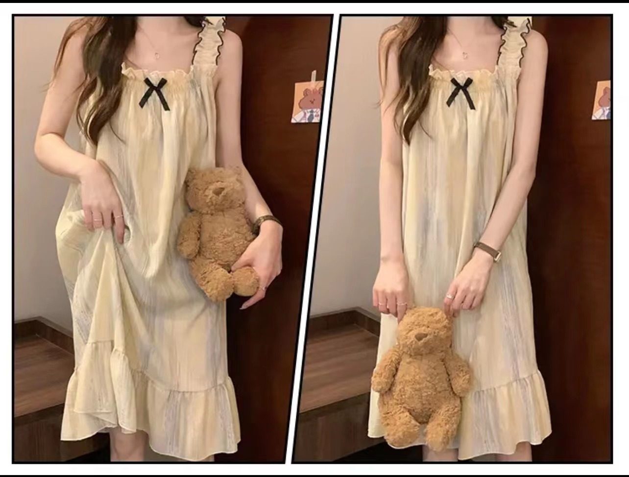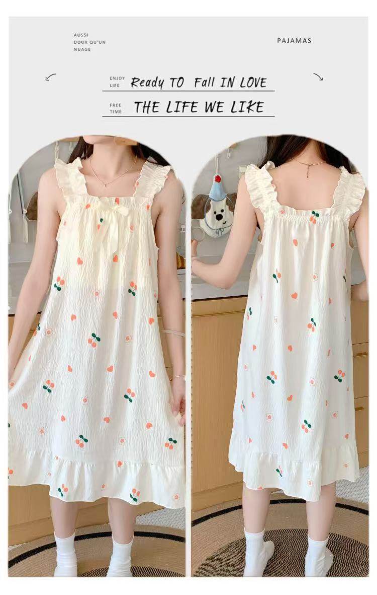 2025 New Style Nightgown Cotton Vertical Striped Sling Mother Pregnant Women Pure Desire Style Pajamas Women's Summer Skirt Simple