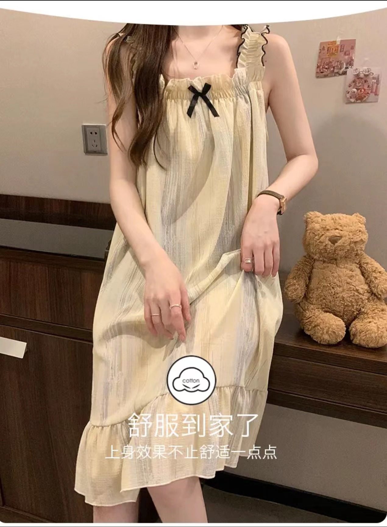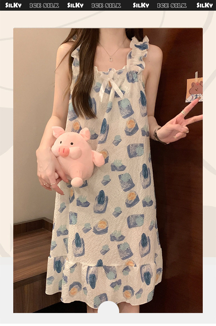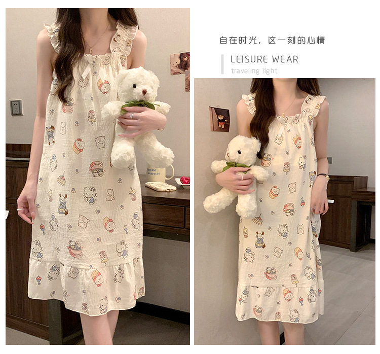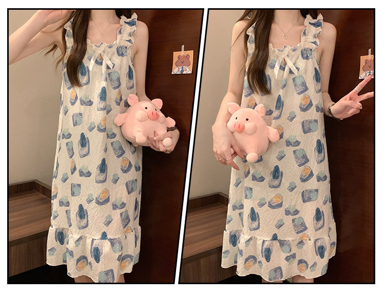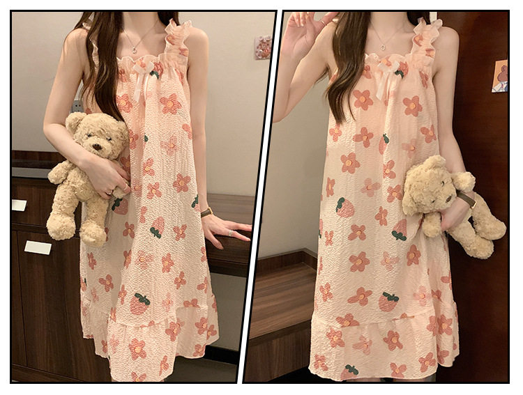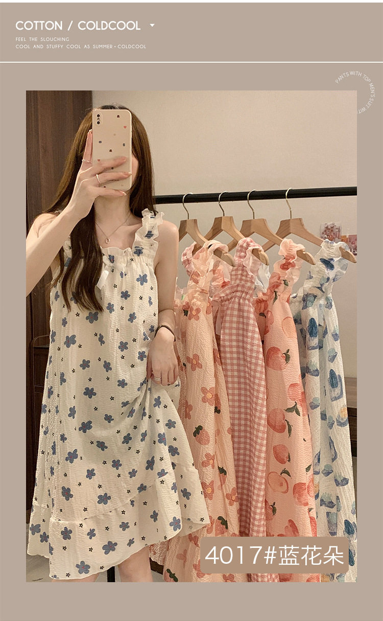 2025 New Style Nightgown Cotton Vertical Striped Sling Mother Pregnant Women Pure Desire Style Pajamas Women's Summer Skirt Simple