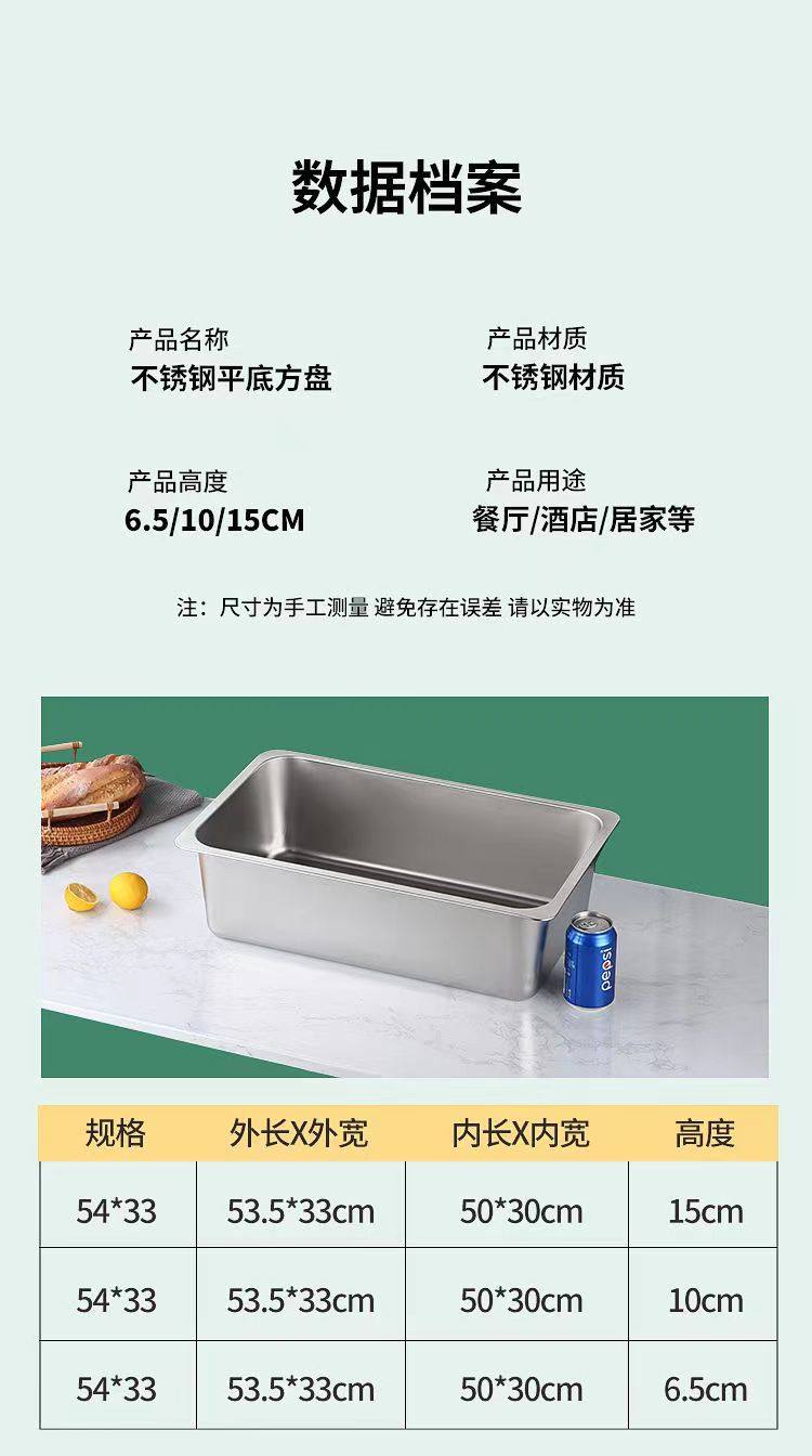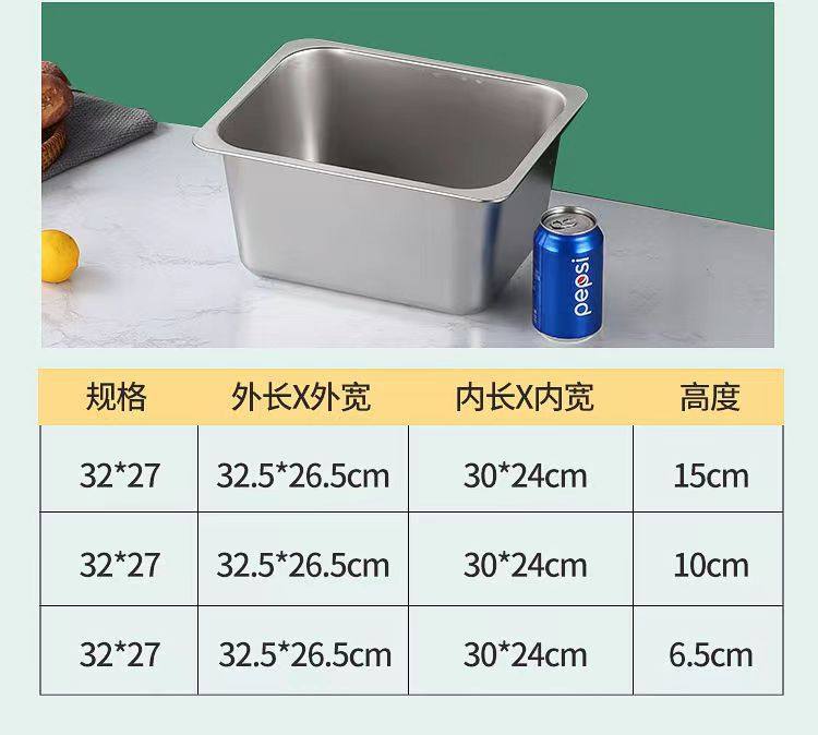 Stainless Steel New Chinese Portion Basin Square Basin Plate Preservation Box Fast Food Restaurant Malatang Jam Food Milk Tea Canteen