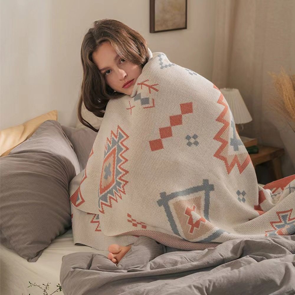 Cross-border Moroccan-style Double-layer Knitted Blanket Office Lunch Break Blanket Air Conditioning Sofa Blanket Famous Camping Thickened Blanket
