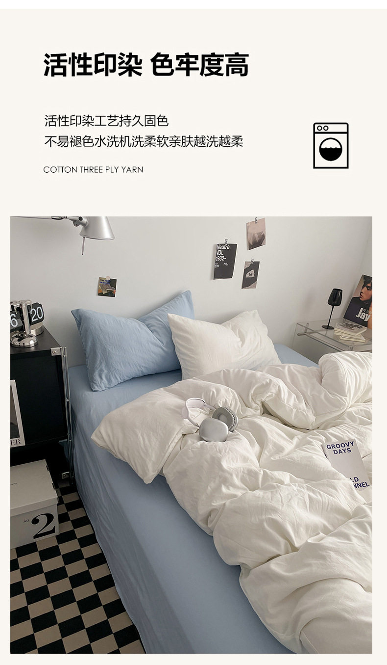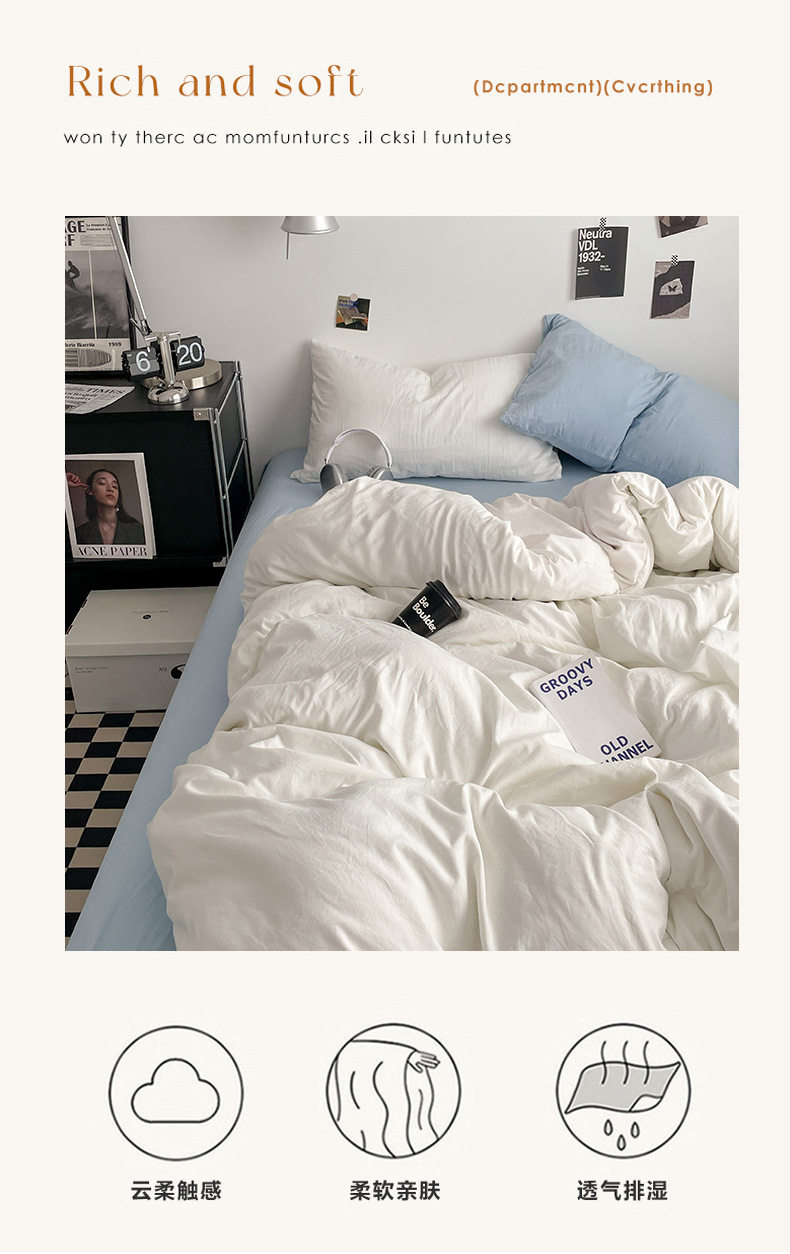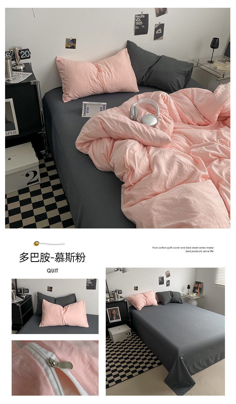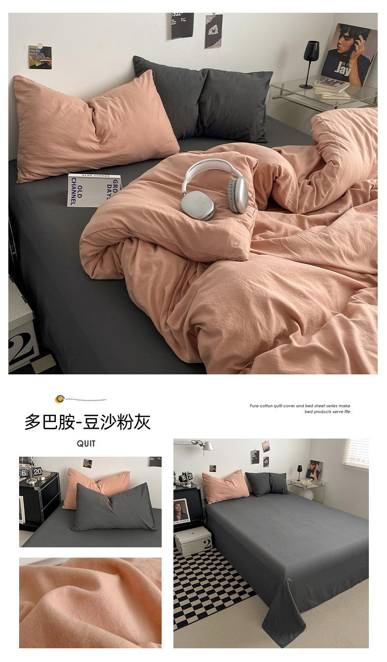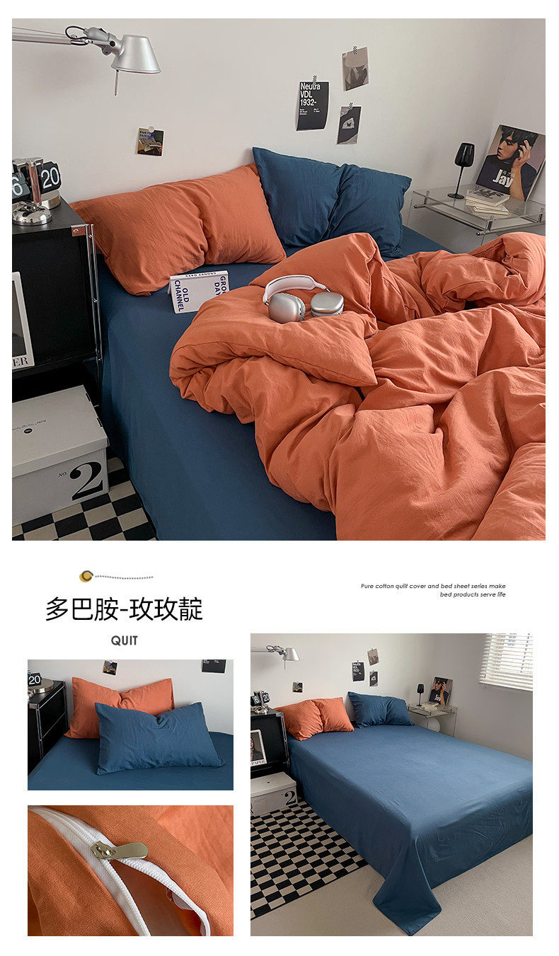 New Ins Color-matching Solid Color Washed Cotton Four-piece Set Three-piece Set Student Dormitory Quilt Set Bed Cover Bed Cover Sheet