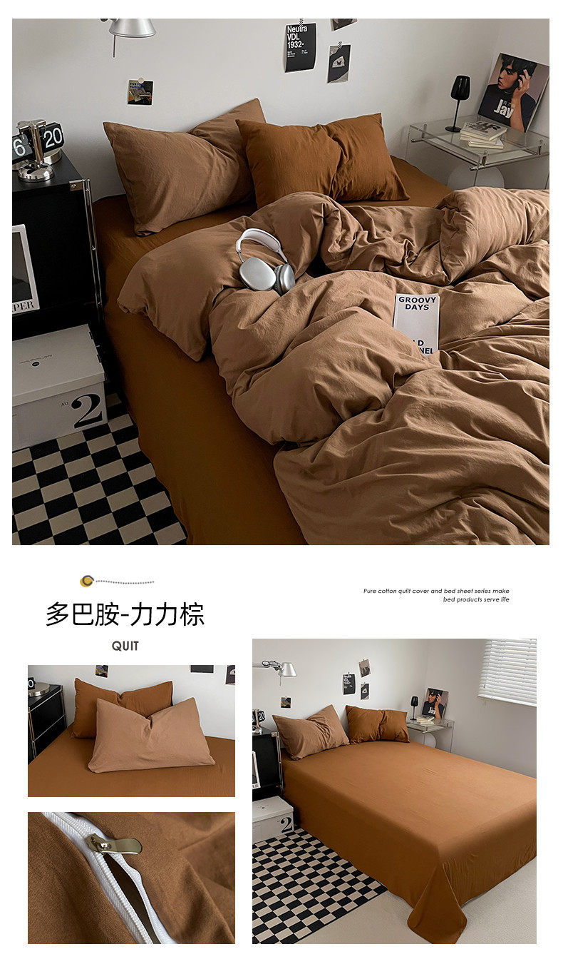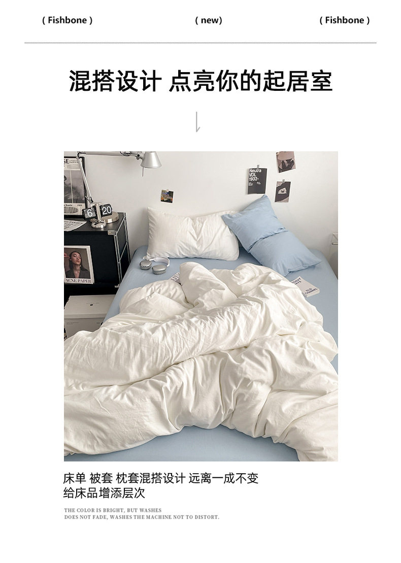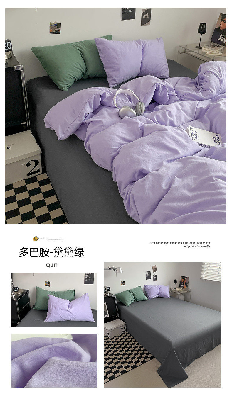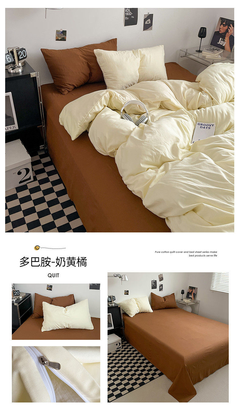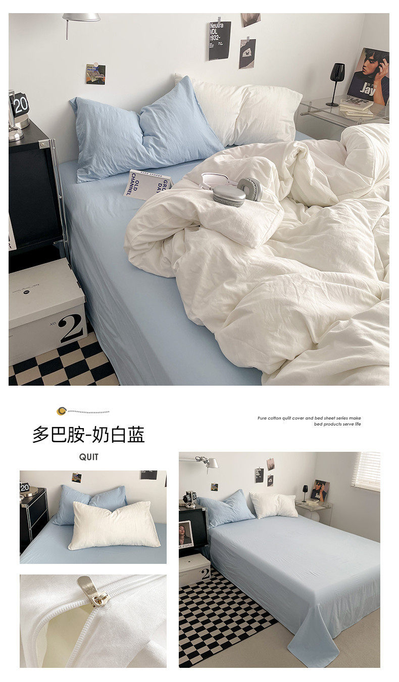 New Ins Color-matching Solid Color Washed Cotton Four-piece Set Three-piece Set Student Dormitory Quilt Set Bed Cover Bed Cover Sheet