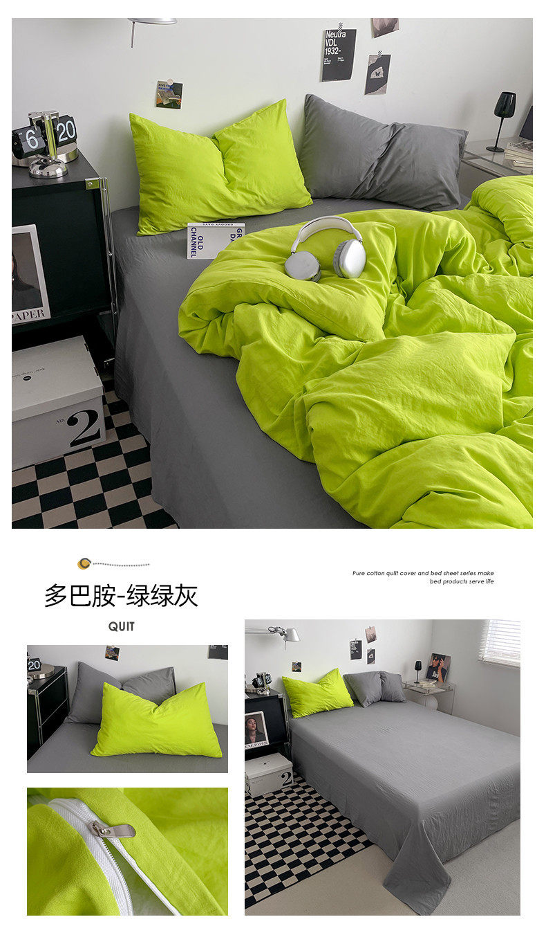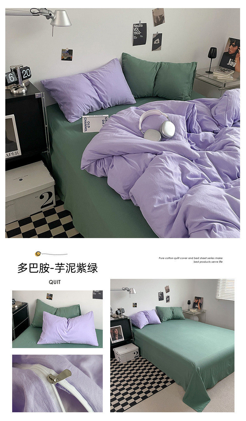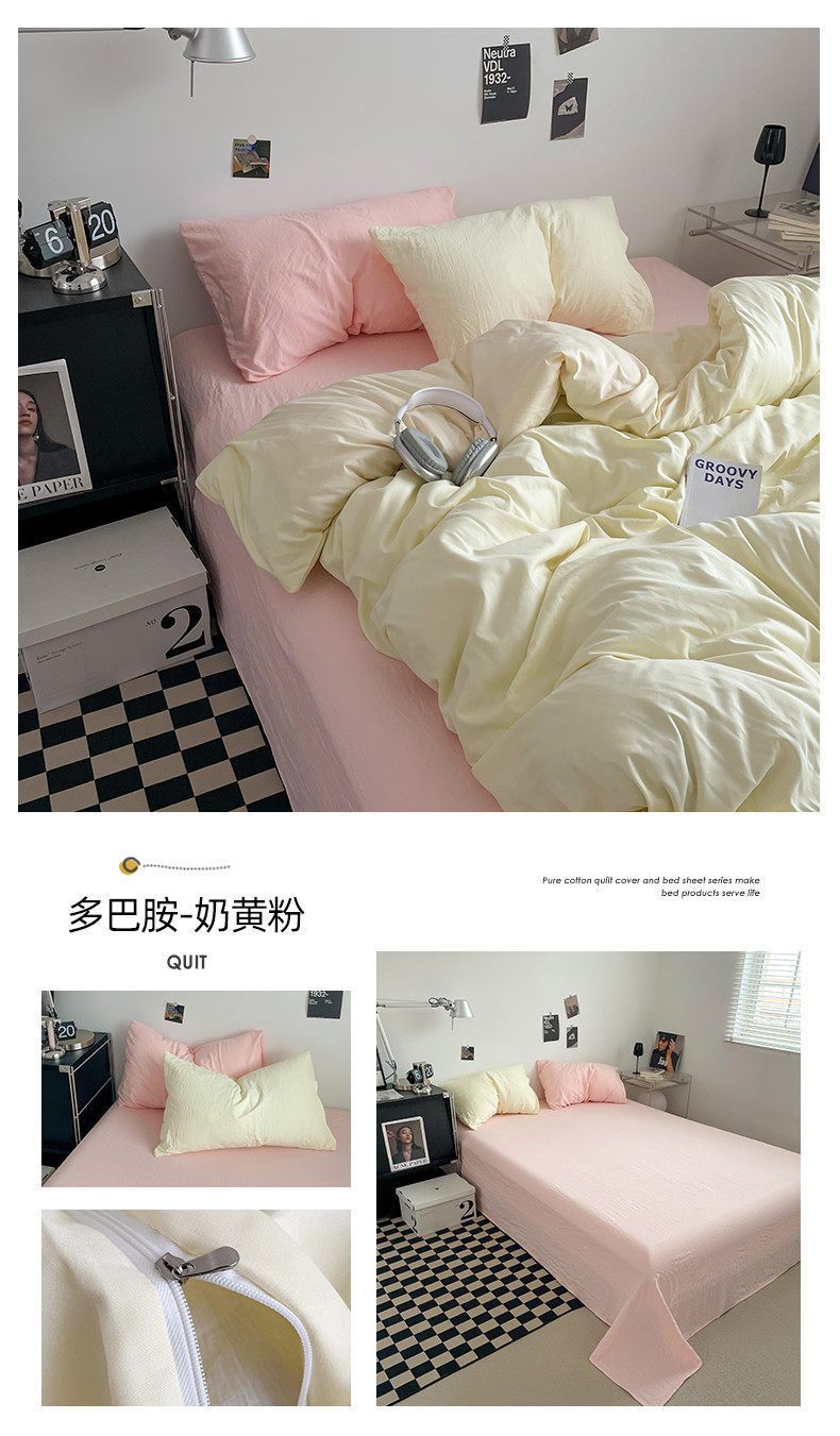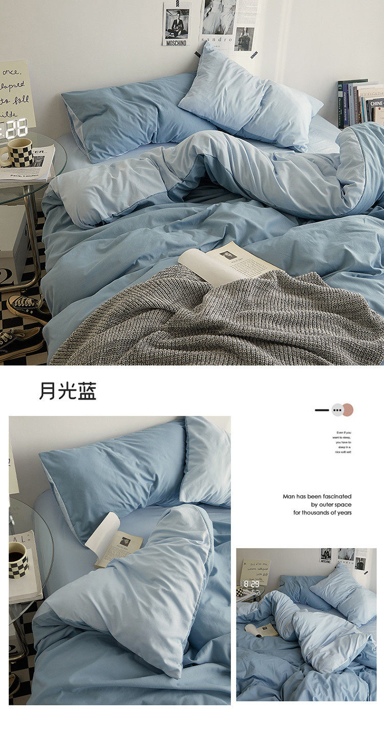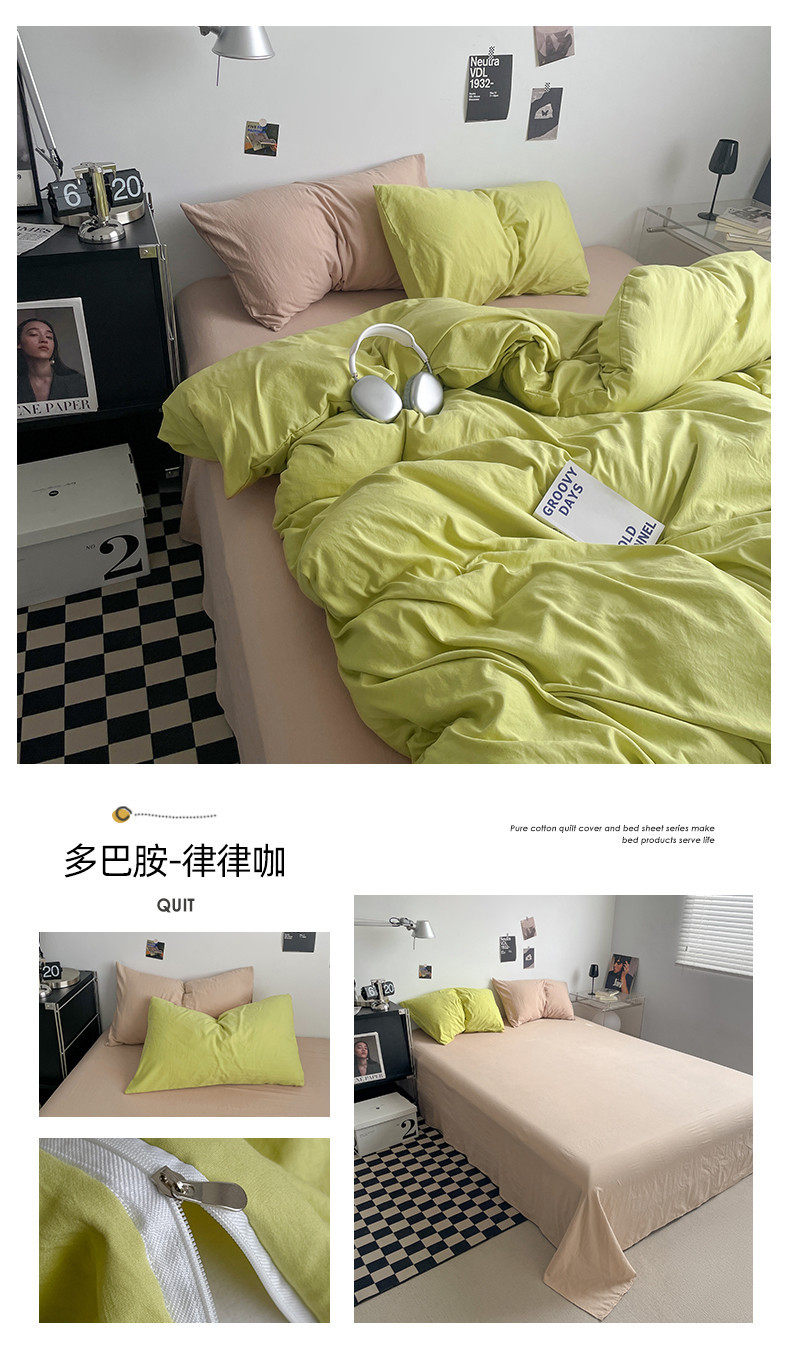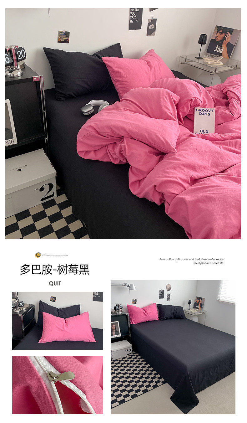 New Ins Color-matching Solid Color Washed Cotton Four-piece Set Three-piece Set Student Dormitory Quilt Set Bed Cover Bed Cover Sheet