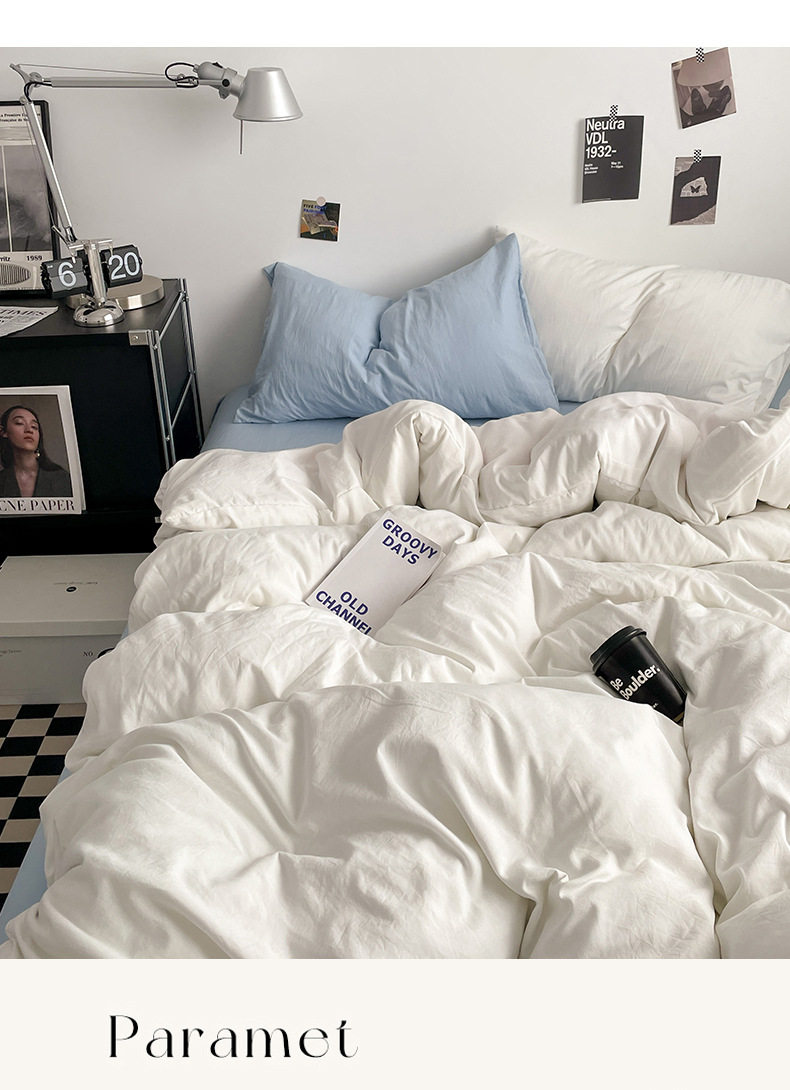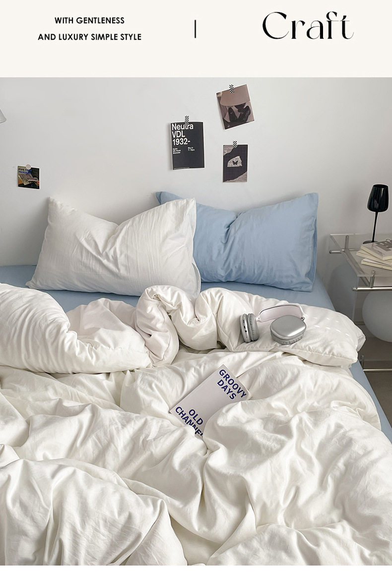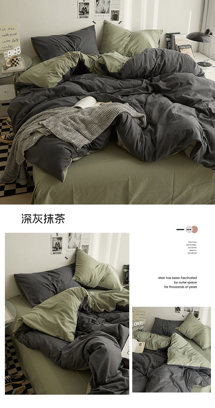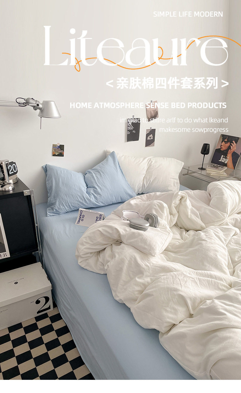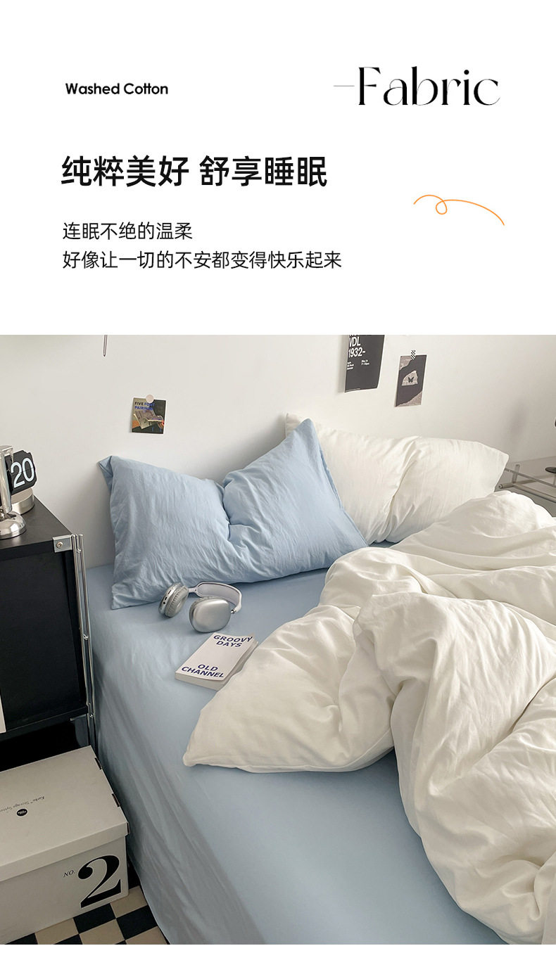 New Ins Color-matching Solid Color Washed Cotton Four-piece Set Three-piece Set Student Dormitory Quilt Set Bed Cover Bed Cover Sheet