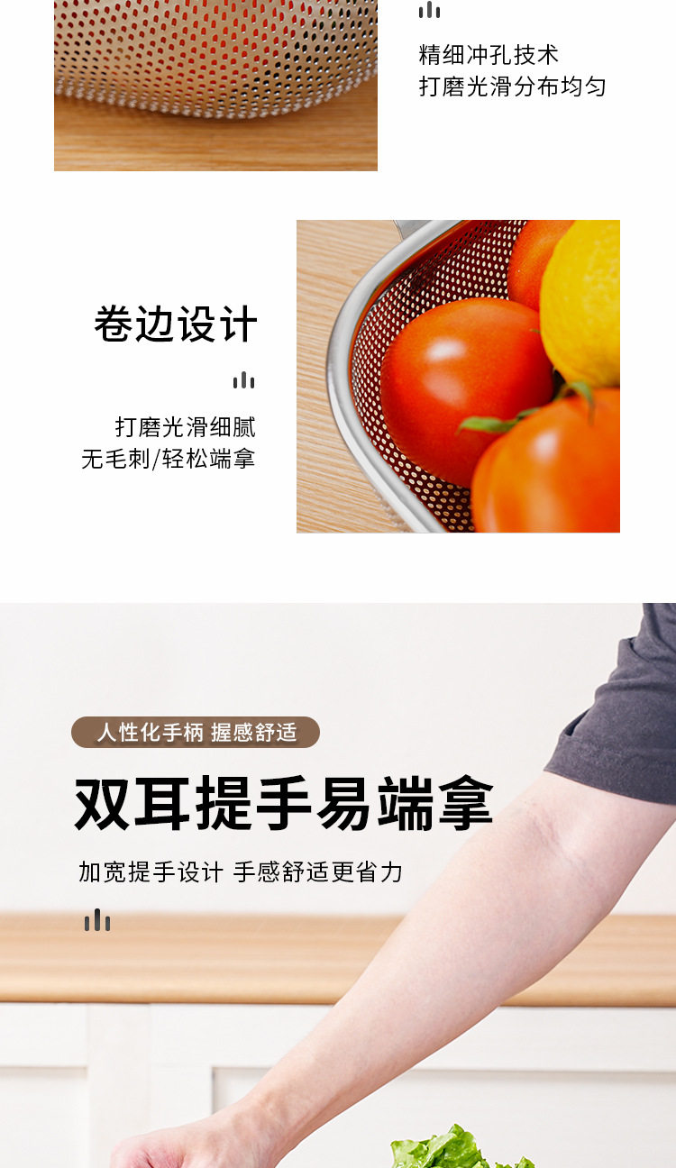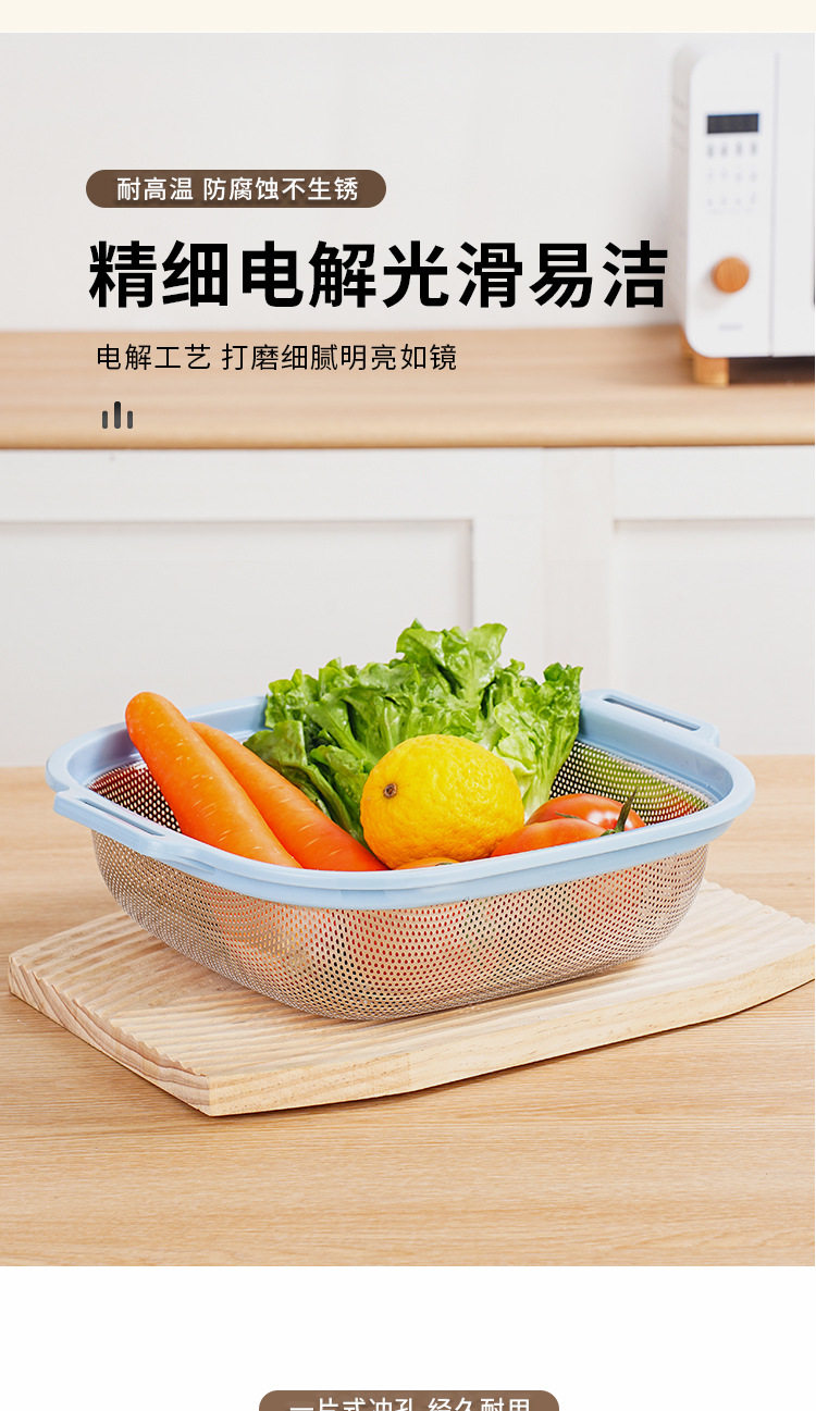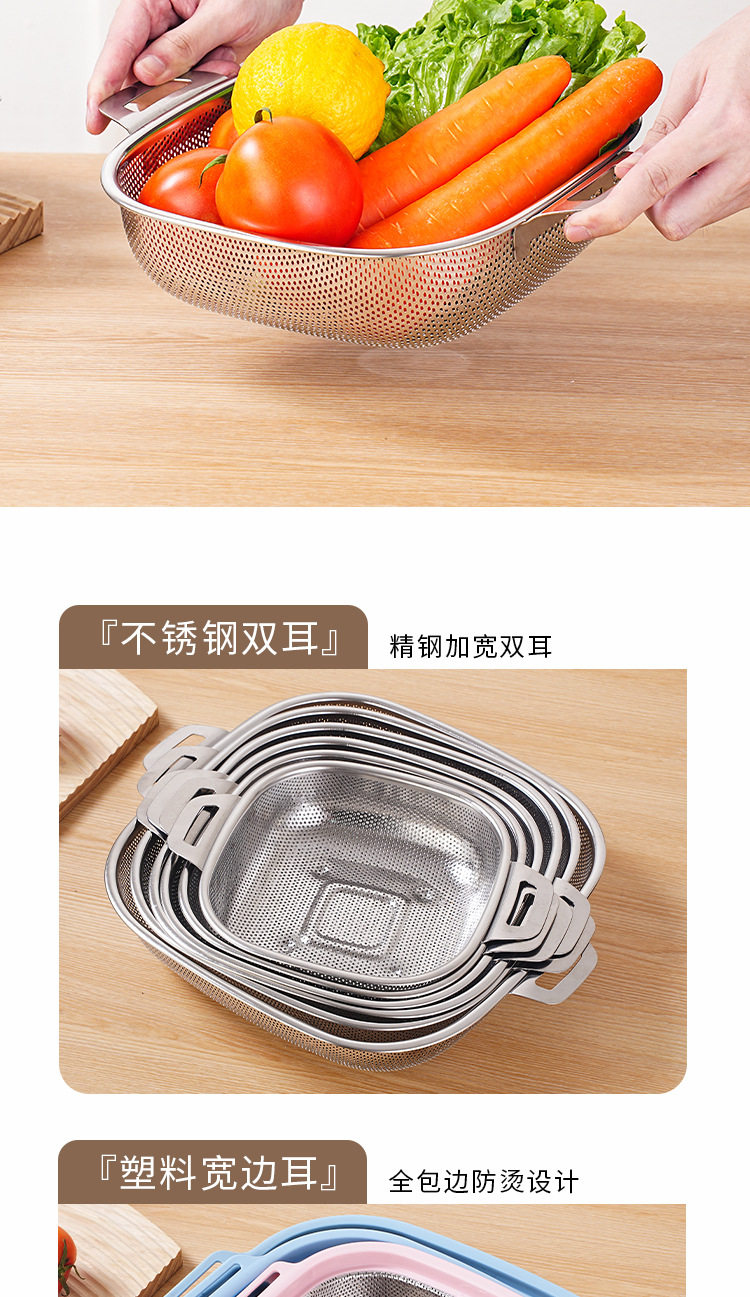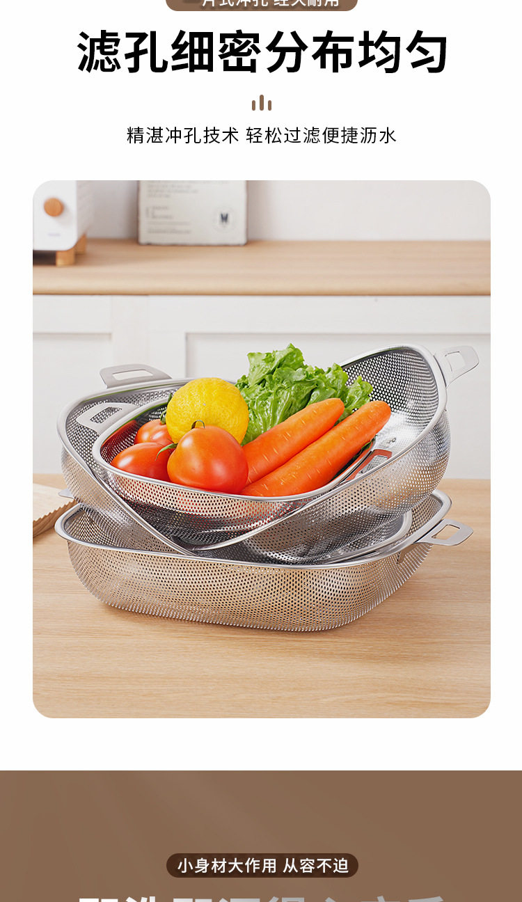 Stainless Steel Draining Basket for Home Kitchen Use, Multifunctional Vegetable and Fruit Strainer Basin with Double Handles for Washing Rice and Fruits
