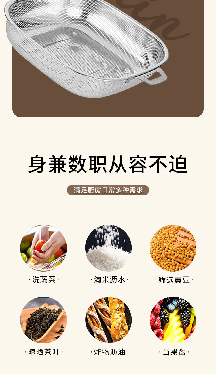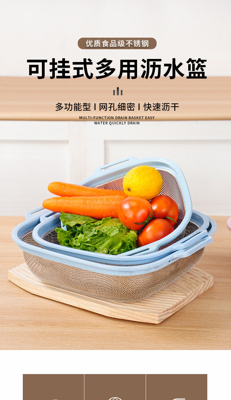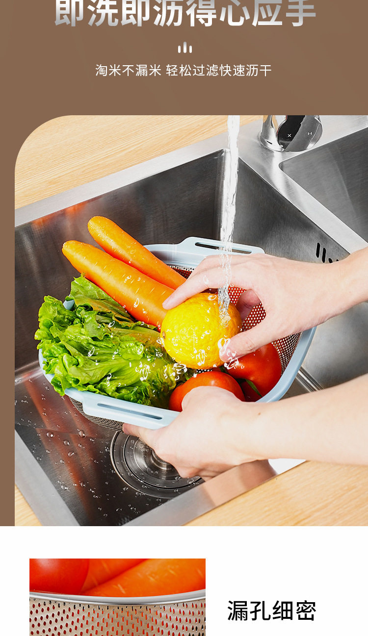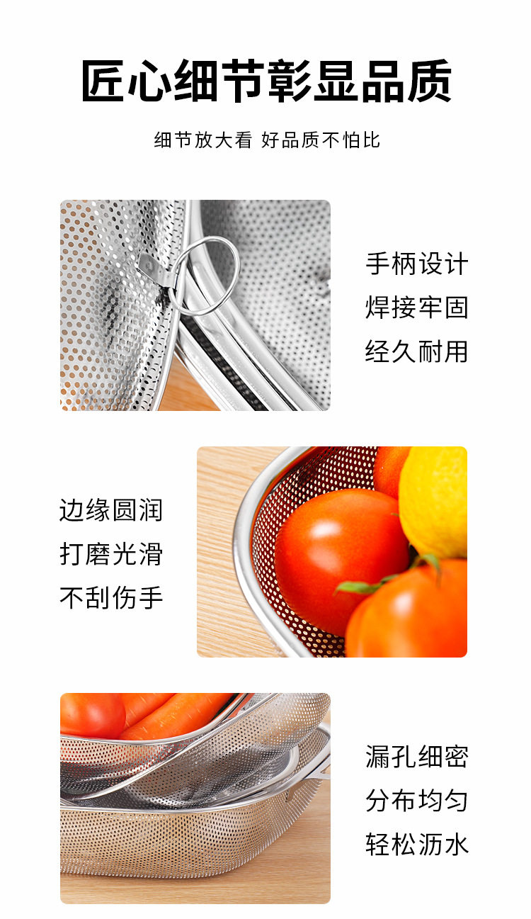 Stainless Steel Draining Basket for Home Kitchen Use, Multifunctional Vegetable and Fruit Strainer Basin with Double Handles for Washing Rice and Fruits