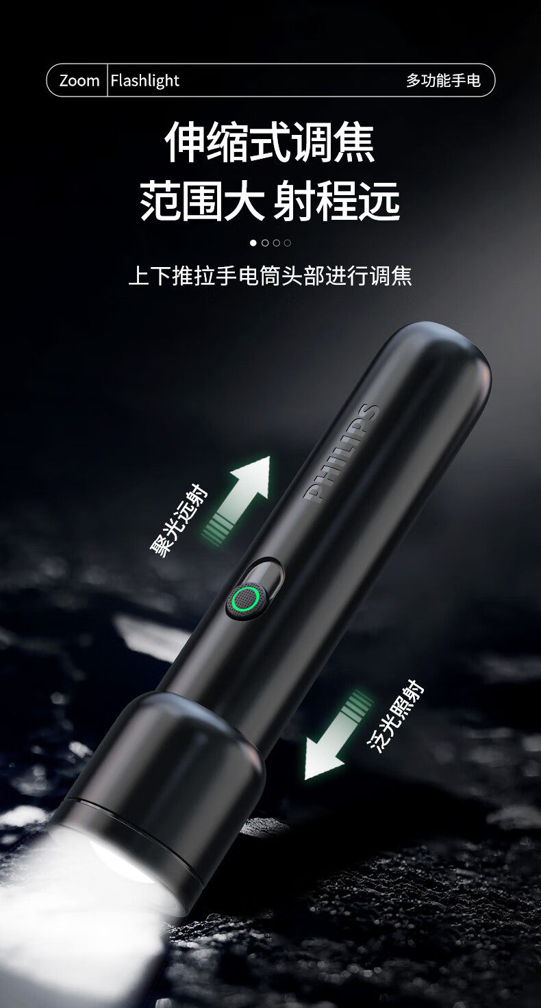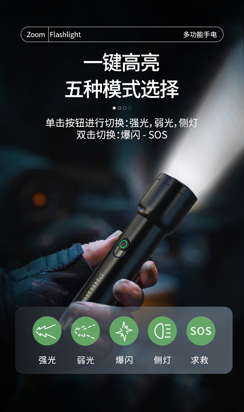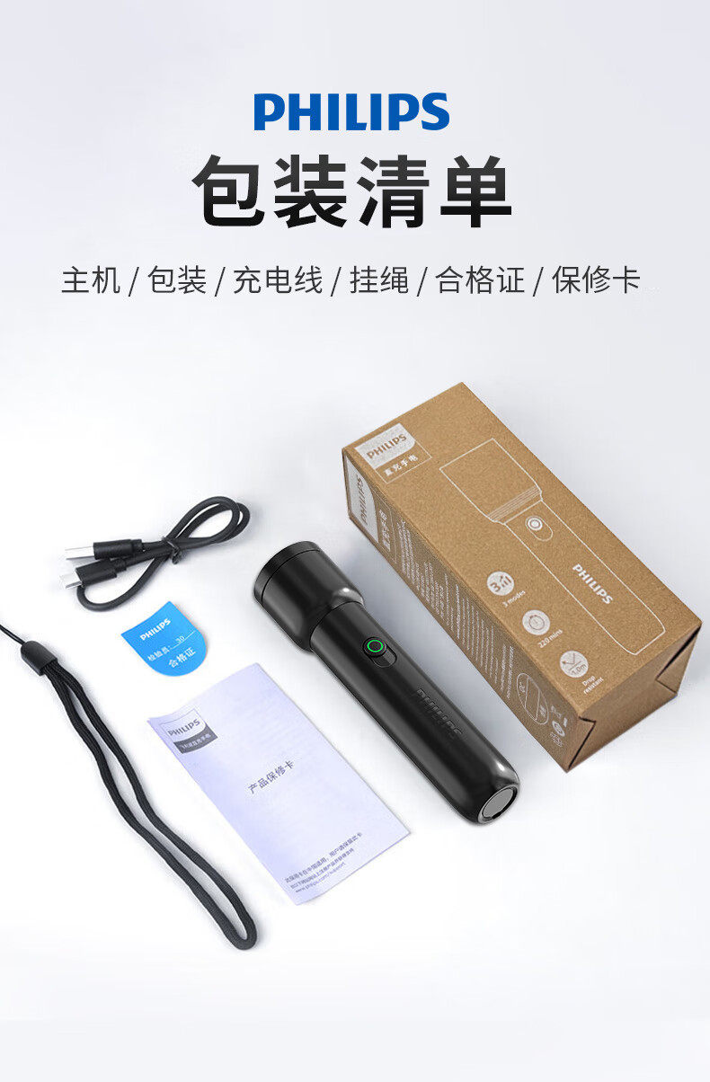 Philips Flashlight Strong Light Flashlight Ultra-Long Battery Life Night Fishing Patrol Outdoor Lighting Emergency Light