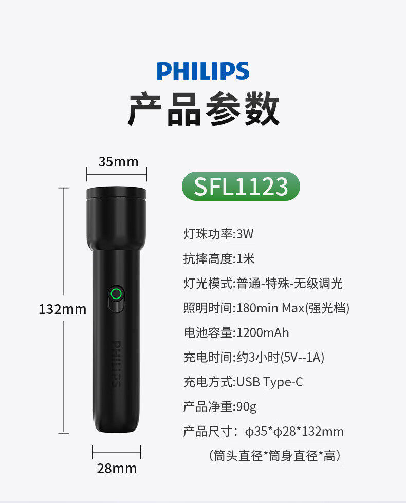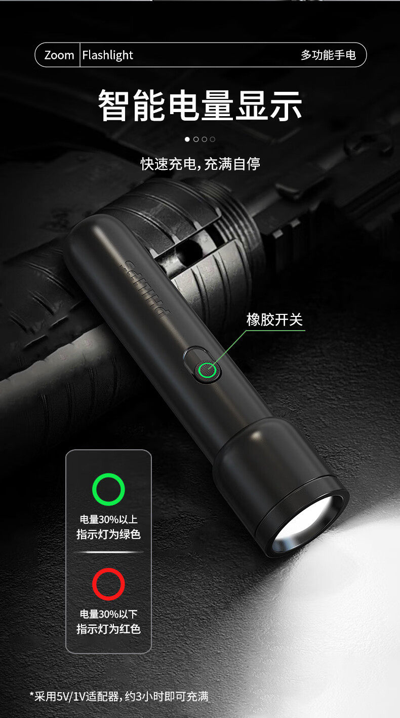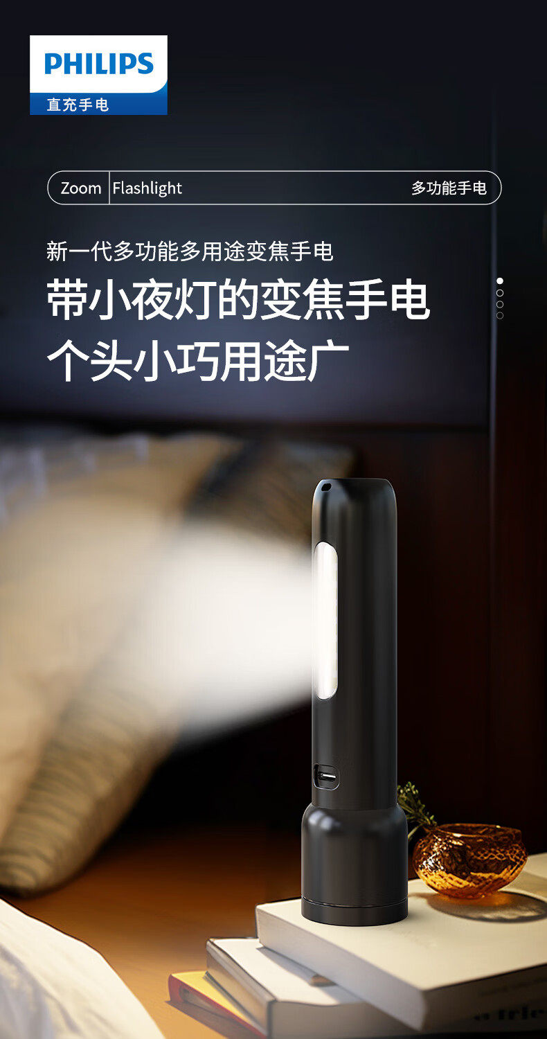 Philips Flashlight Strong Light Flashlight Ultra-Long Battery Life Night Fishing Patrol Outdoor Lighting Emergency Light