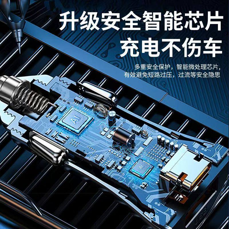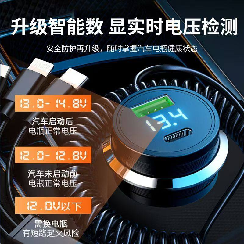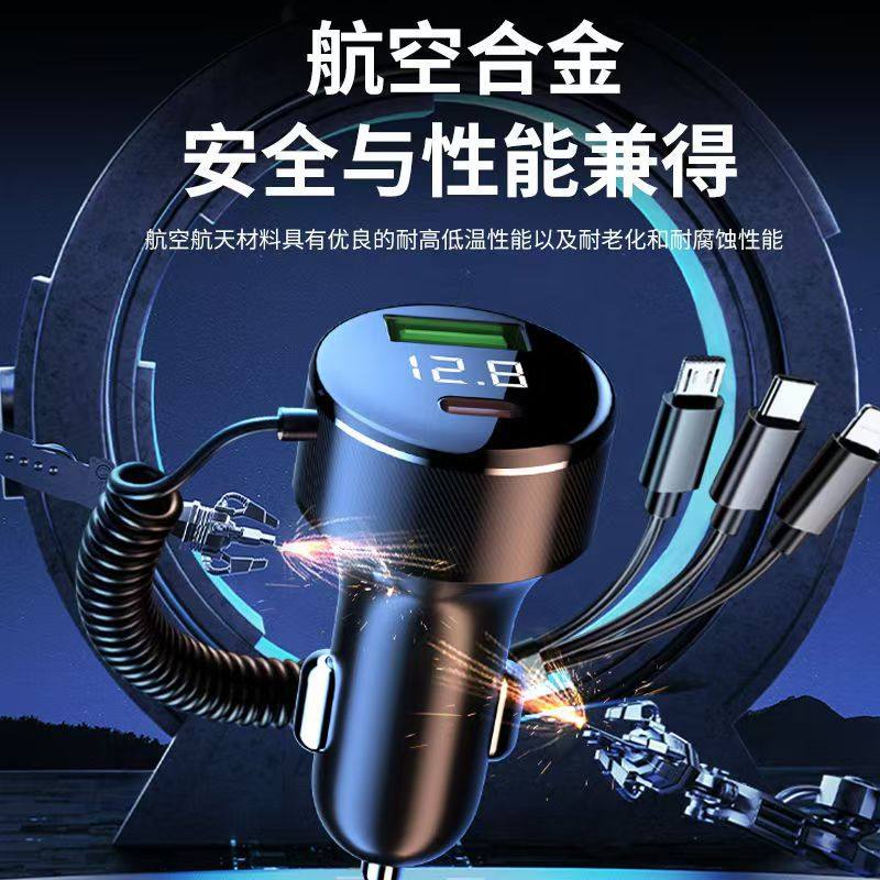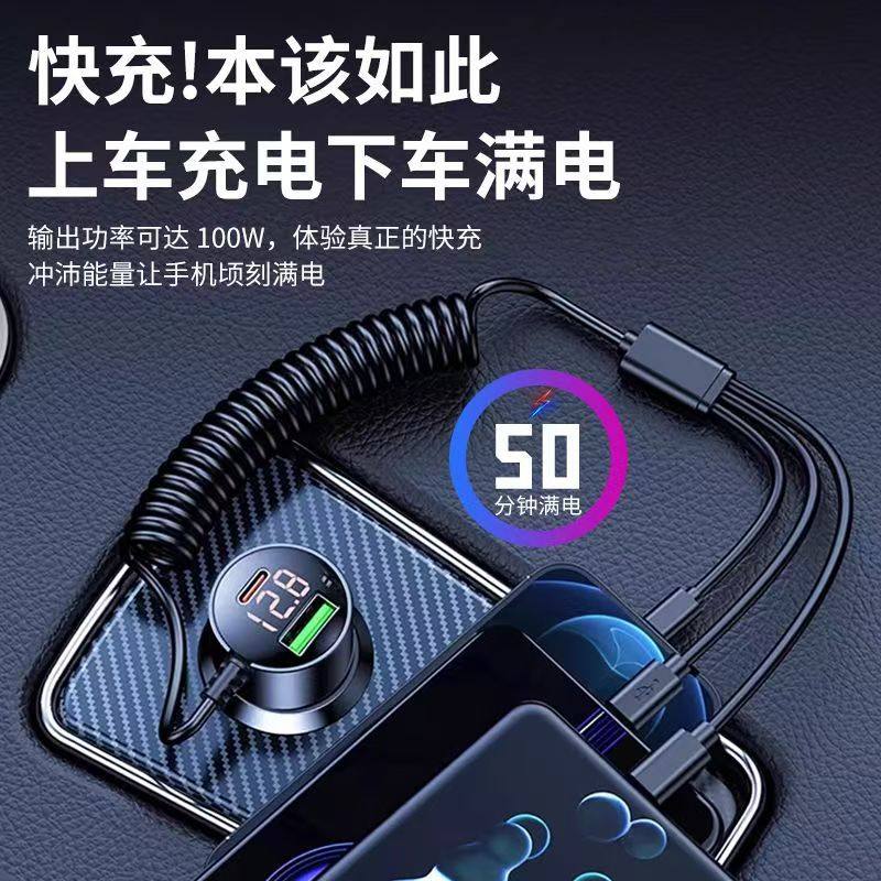 With line car charger digital display car charger 100w display super fast charge one-to-three data line car phone charger
