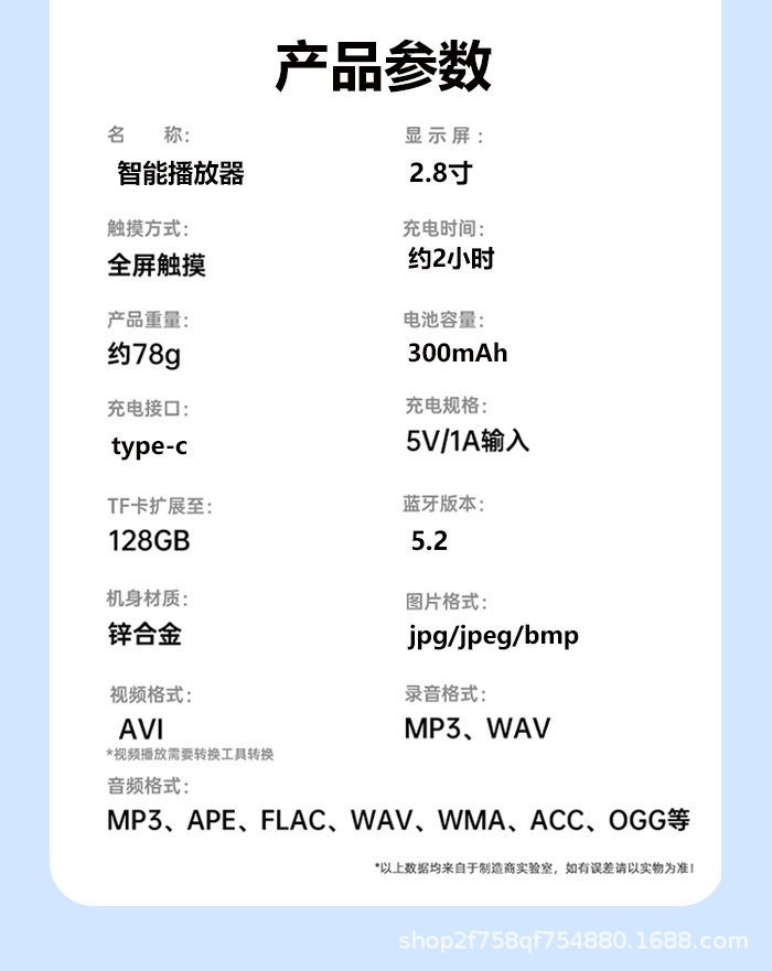 | Support audio formats | MP3,WMA,WAV,OGG,FLAC,APE,Other |
