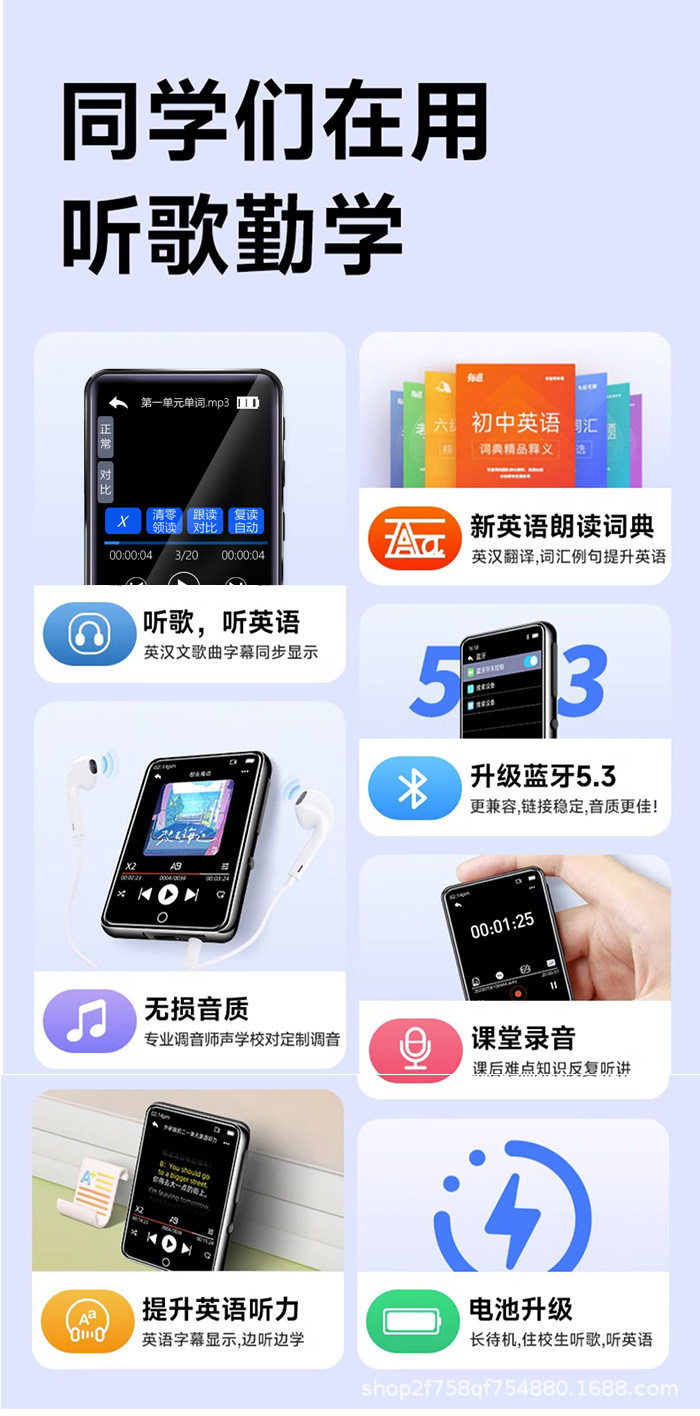 Student Version of Learning Machine English Language Listening SPecial RePeat Reading and Reading Full Touch Screen Walkman Small Portable P3