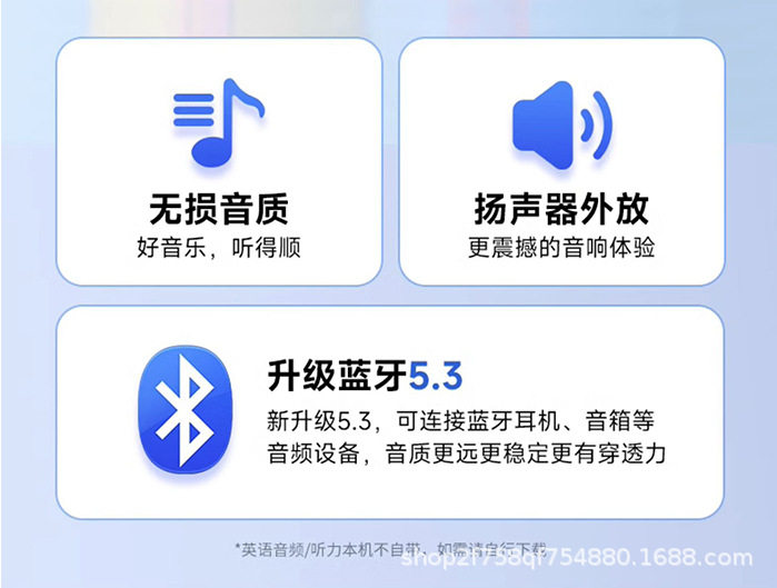 | Additional features | Support bluetooth,FM radio function,Recording function,External release function |