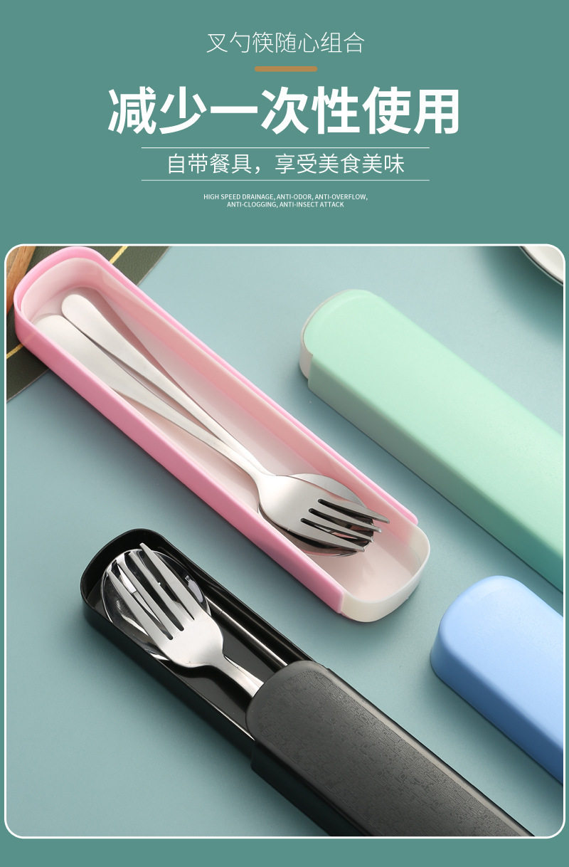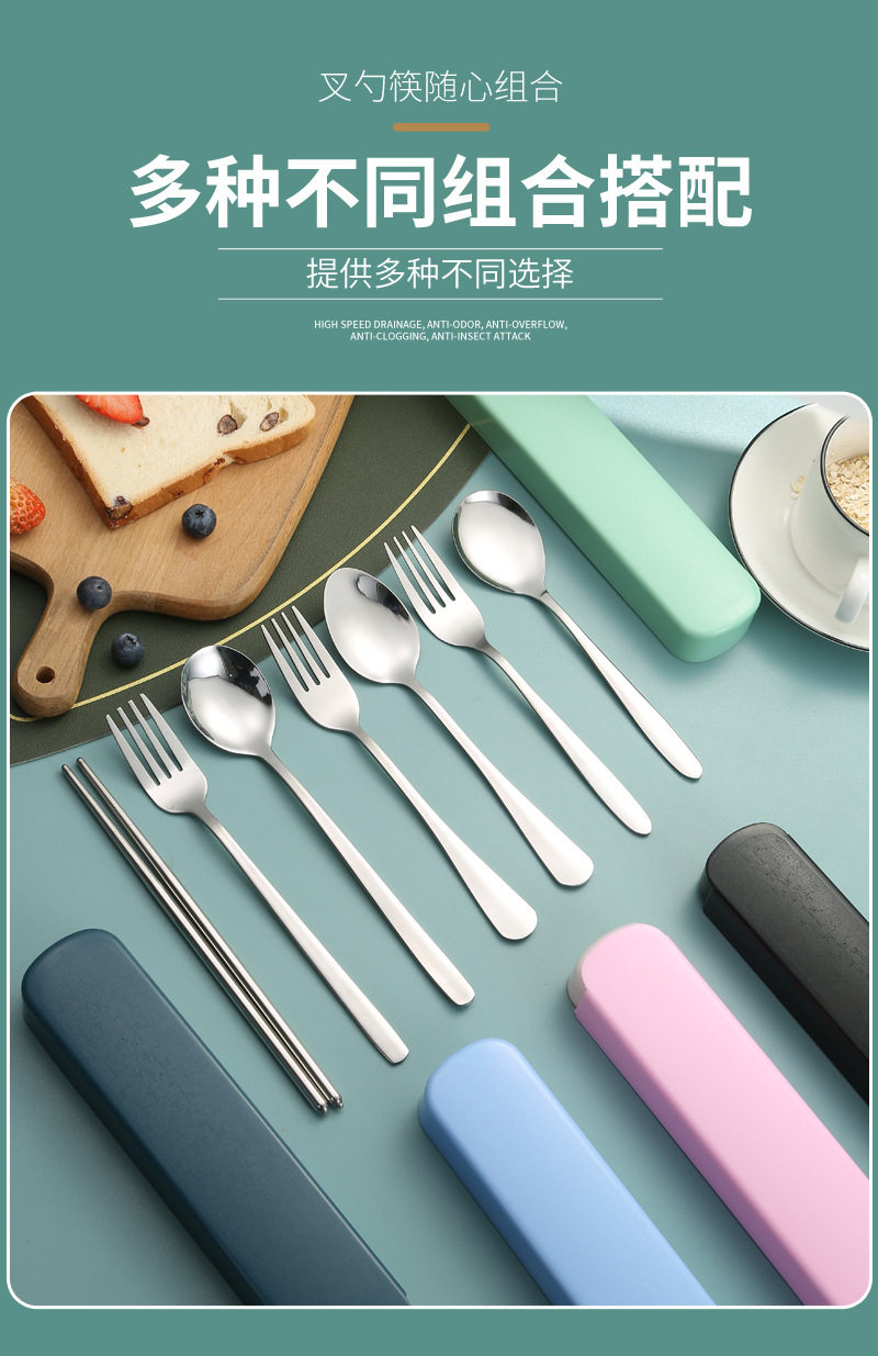 Portable stainless steel tableware three-piece fork spoon chopsticks student set company order tableware