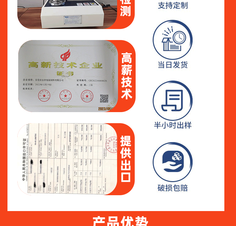 | Scope of application | Instruments and equipment, electronic components, glass products, auto parts, commercial display screens, plastic particles, liquid ton tanks, intelligent equipment, hardware tools |