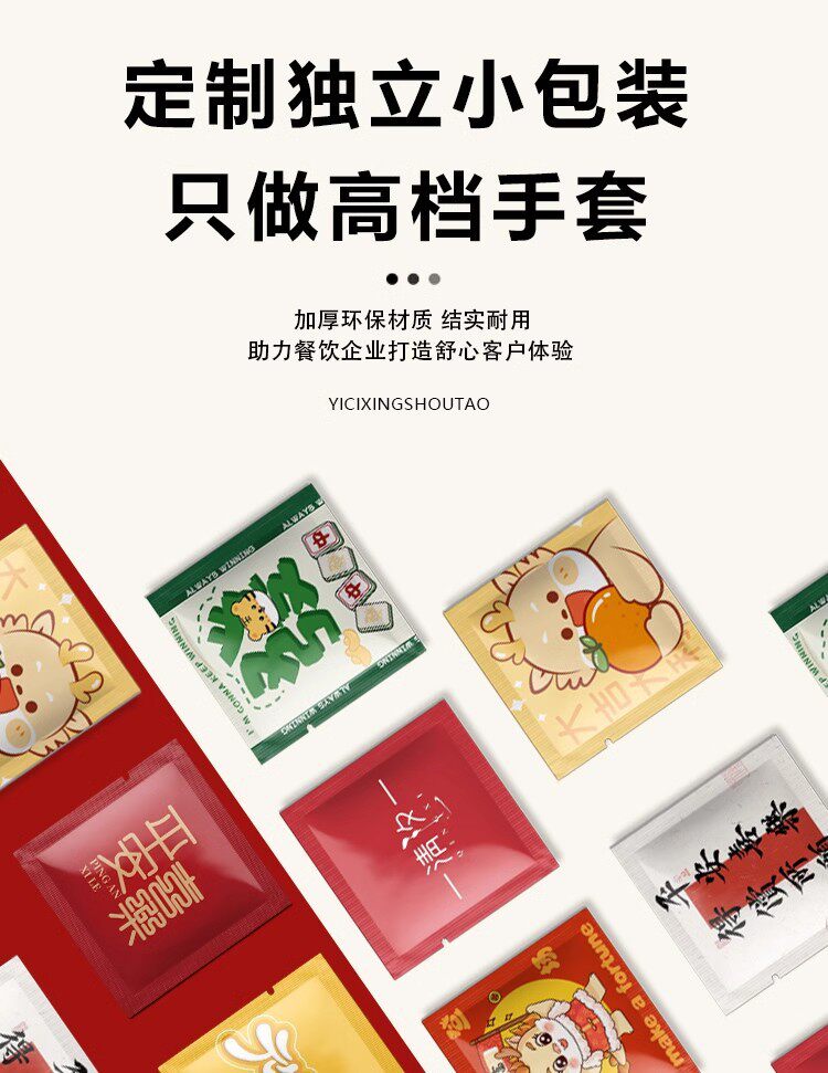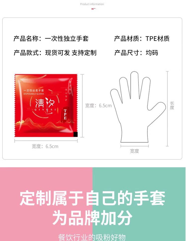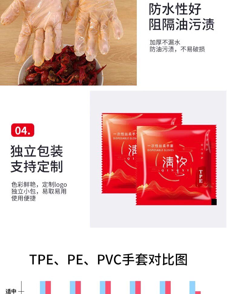 Disposable Gloves, Individually Packaged, Food-Grade, Thickened Tpe Material, Suitable for Catering and Takeout, Lobster, Fried Chicken, Logo Can Be Printed