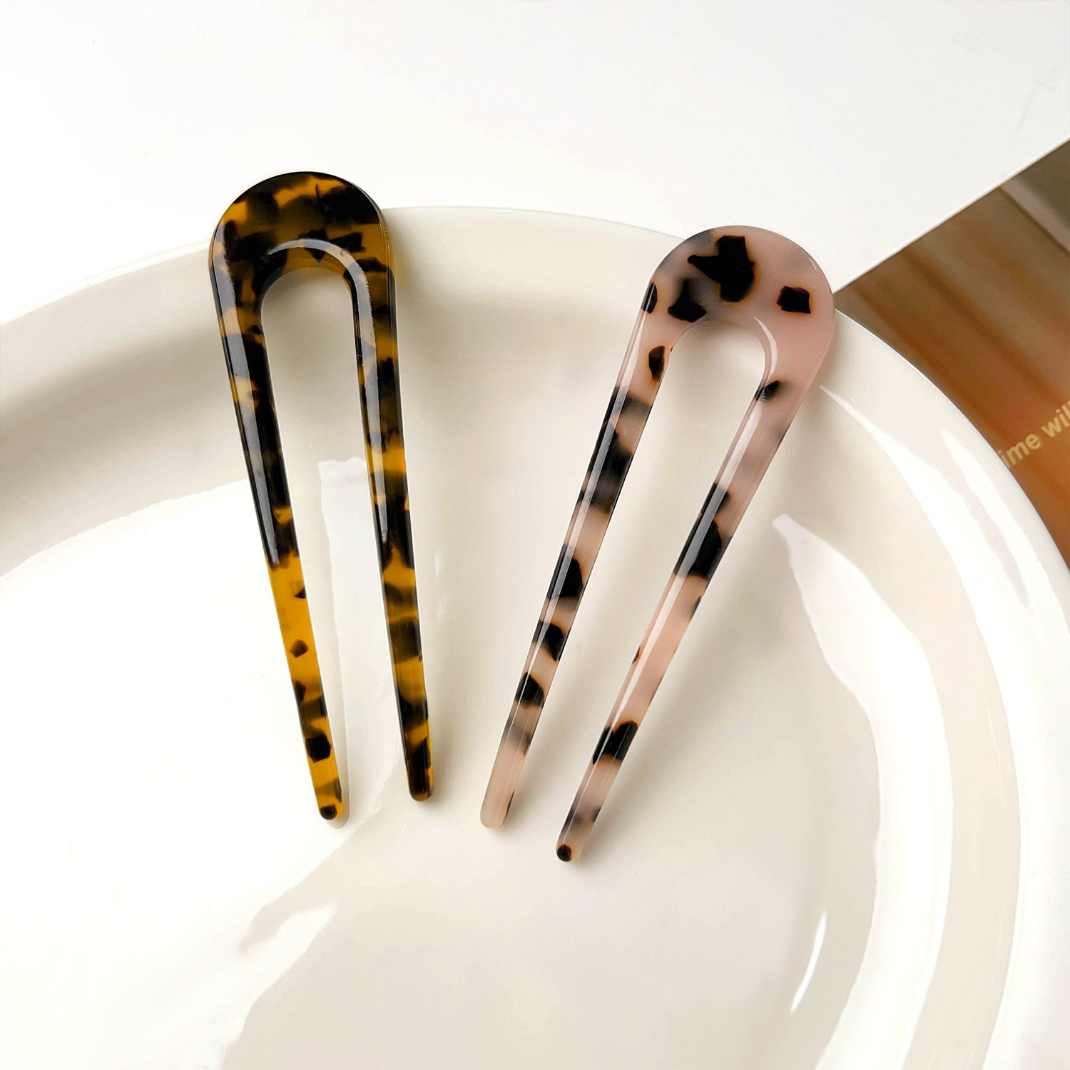 Ins High-end U-shape Acetic Acid Hairpin Korean Simple Ball Head Disc Hair Hairpin Antique Elegant Hair Accessories for Women
