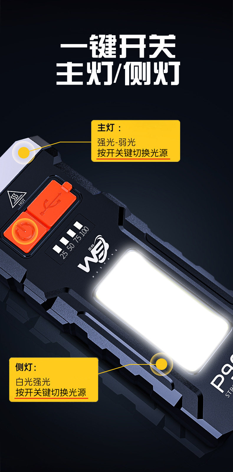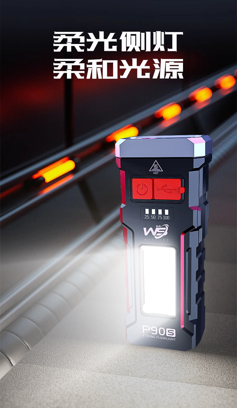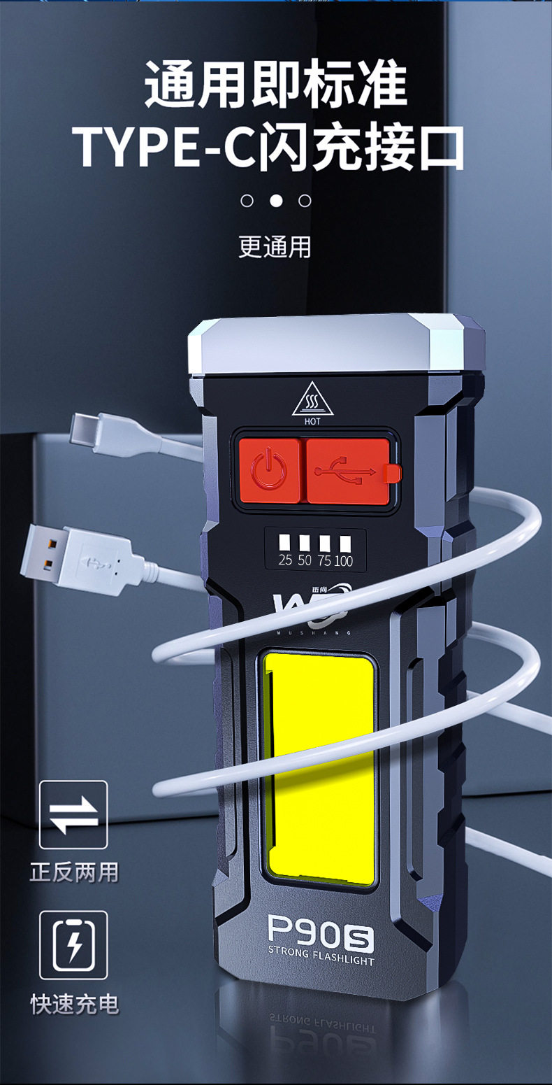 Cross-border new portable double light source flashlight TYPE-C fast charging multi-work eight wick work lamp emergency flashlight