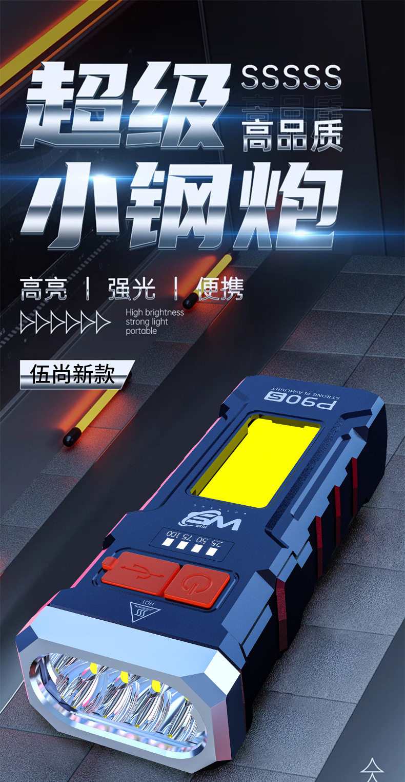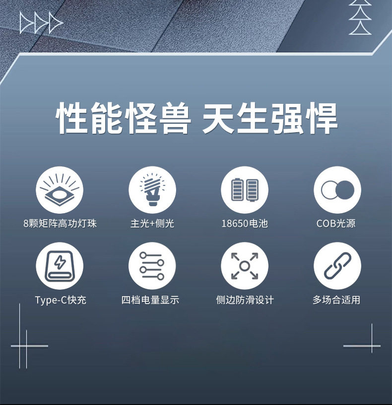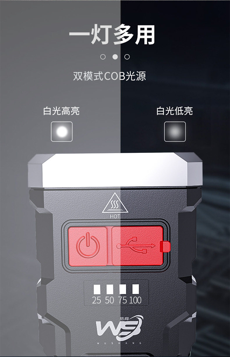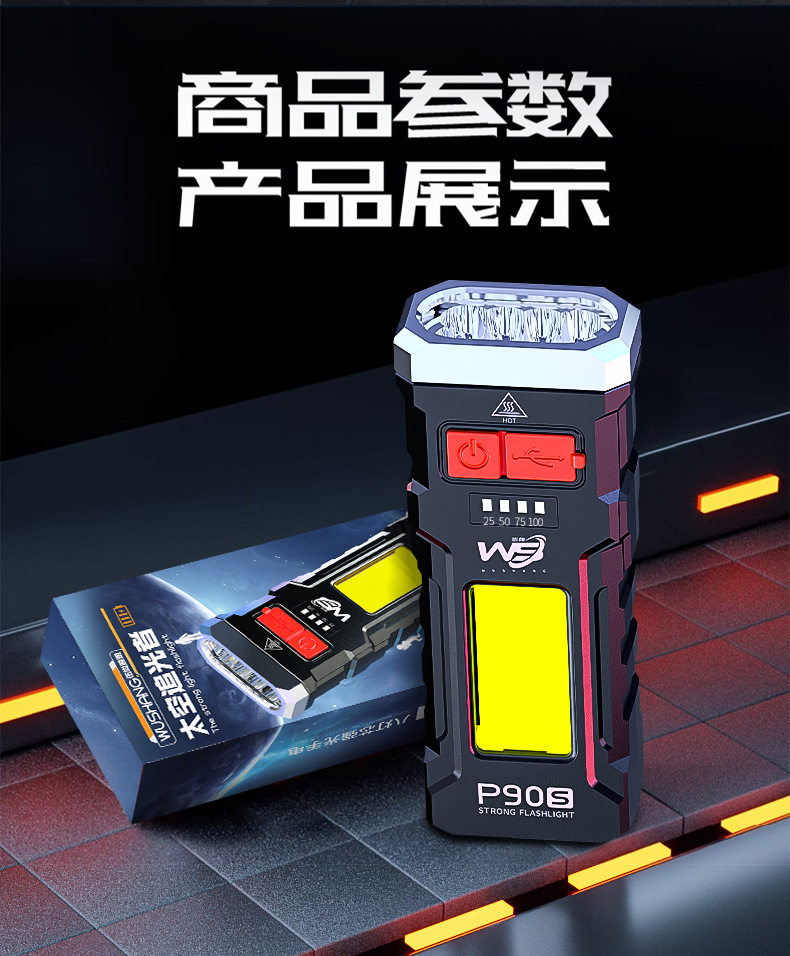 Cross-border new portable double light source flashlight TYPE-C fast charging multi-work eight wick work lamp emergency flashlight