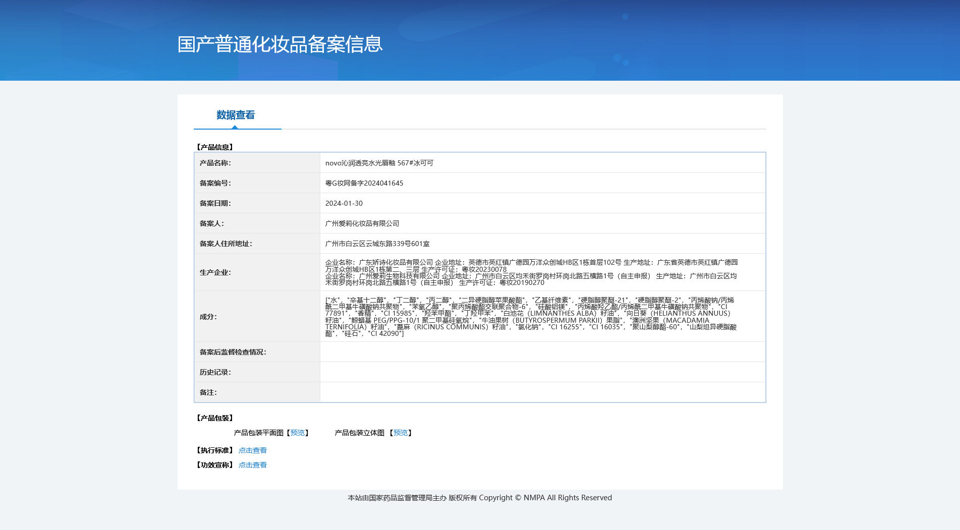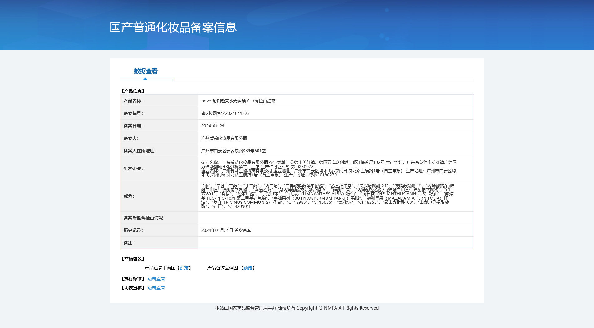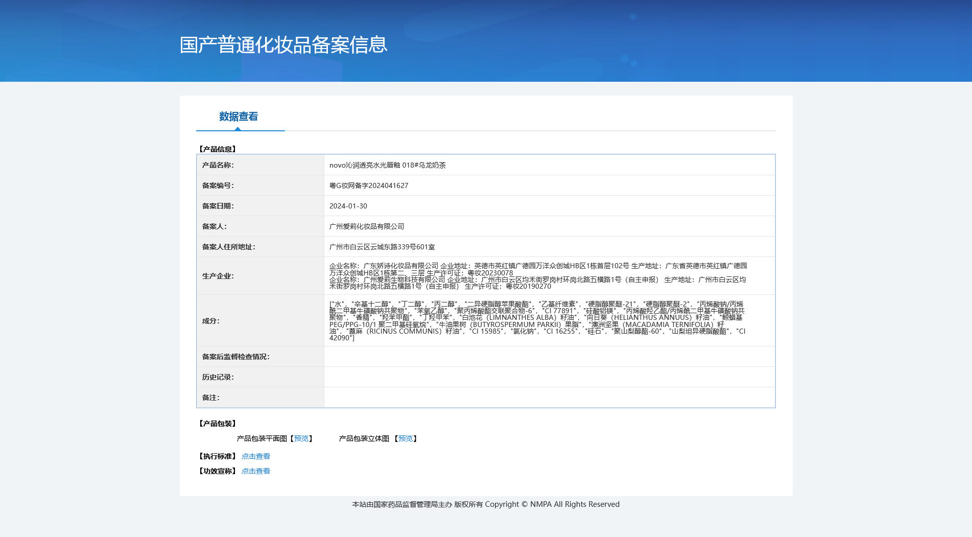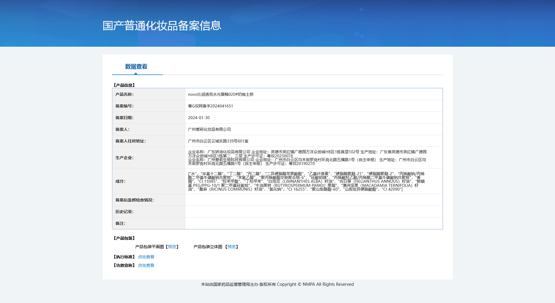 Non-special cosmetics registration certificate number Guangdong g makeup network preparation number 2024041623