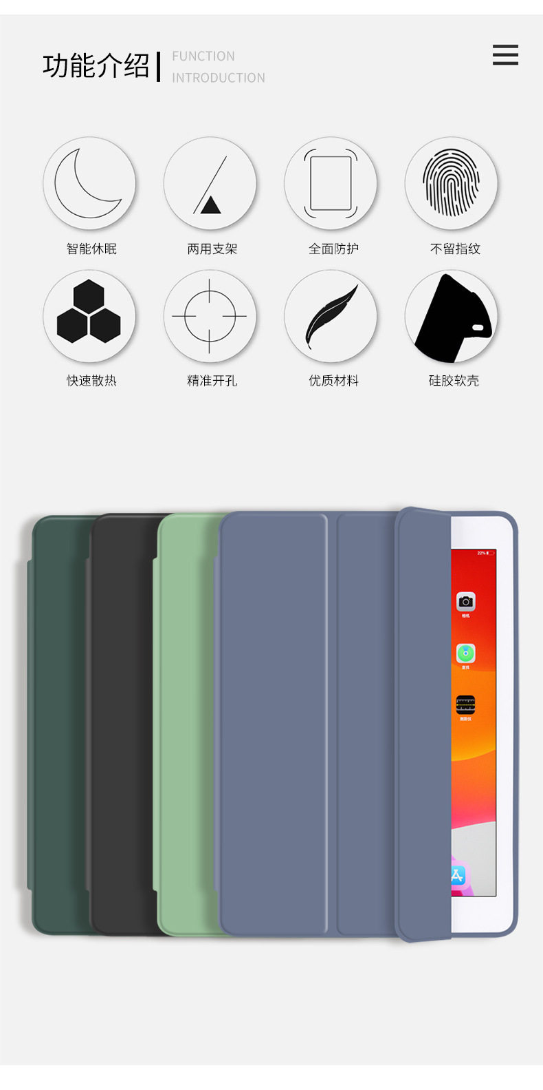 | Applicable model | [IPAD2021(10.2 inches)]],[IPAD2020(10.2 inches)]],[IPAD2019(10.2 inches)]],[7/8/9 generation (10.2 inches)]],[2017/2018/(9.7 inches]],[air1/air2(9.7 inches]],[IPAD5/6 generation (9.7 inches)]],[mini1/2/3(7.9 inches]]],mini4/5(7.9 inches)],mini6(8.3 inches)],[IPAD2/3/4(9.7 inch]]],Pro(9.7 inches)],[Air3/Pro(10.5 inches]]],Air4(10.9 inches)],Air5(10.9 inches)],[IPAD0 generation (10.9 inches)]],Pro 2018(11 inches)],Pro 2020(11 inches)],Pro 2021(11 inches)],Pro 2022(11 inches)] |
