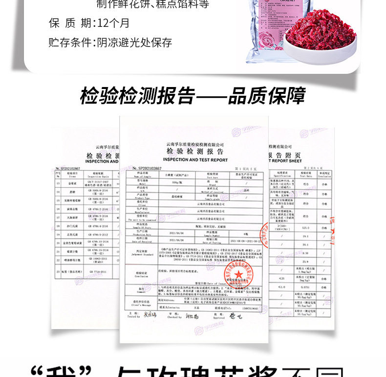 | Raw materials and ingredients | Double red rose, sugar, honey, citric acid |