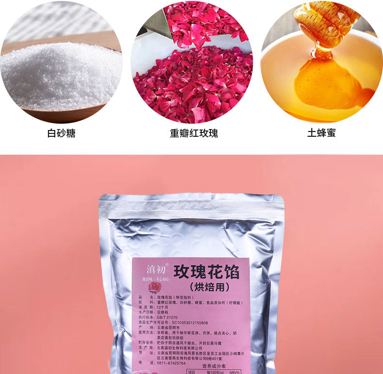 1kg bagged fresh flower cake moon cake baking edible raw materials commercial Yunnan specialty rose stuffing