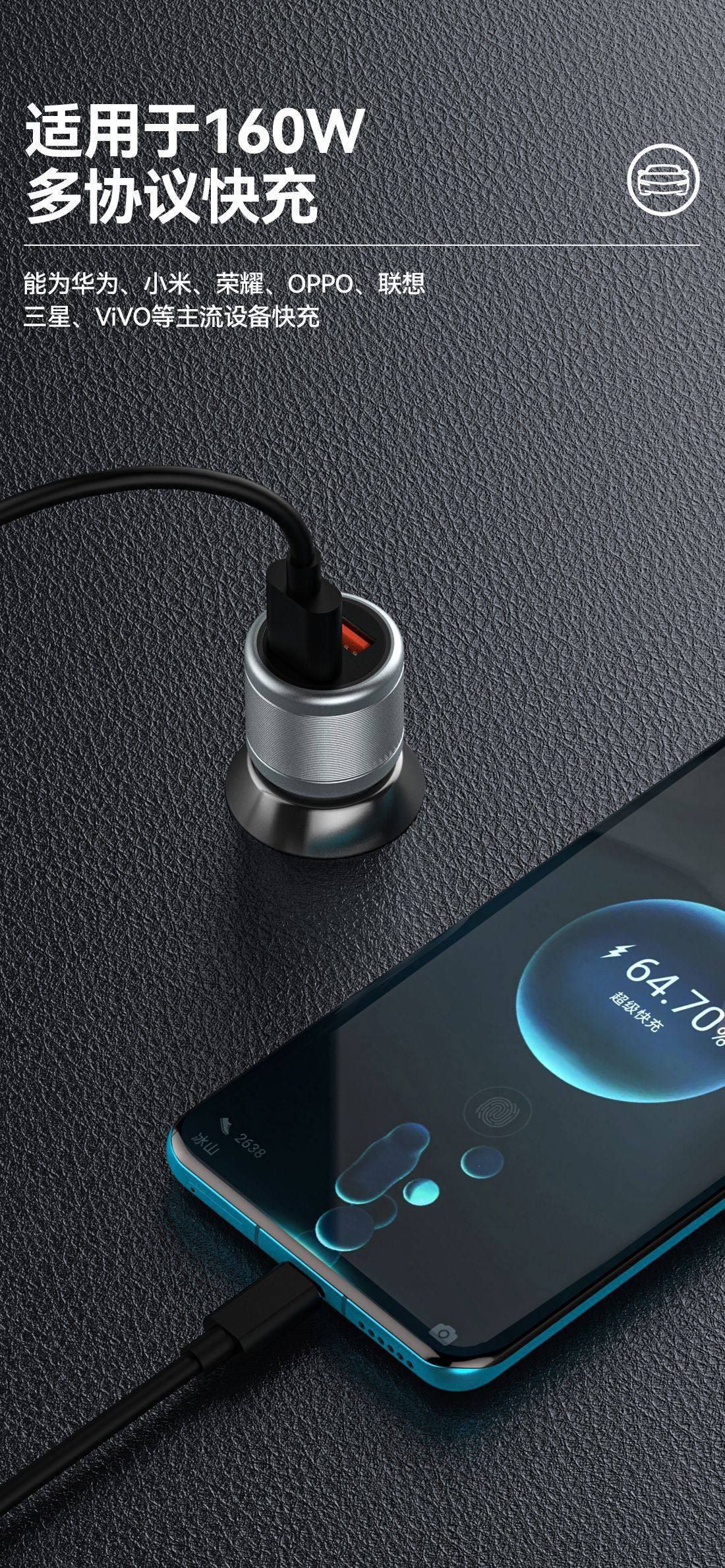 | Model | Ca-03 [160w metal car charger] full protocol dual usb flash charging [exquisite packaging] |