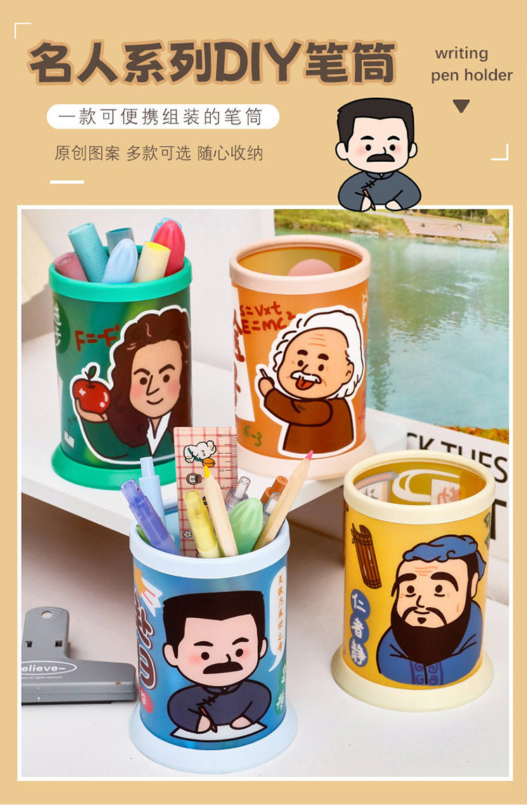 Celebrity Series Folding Round Pen Conner Student DIY Desktop Large Capacity Storage Box Cute Prizes Small Gifts