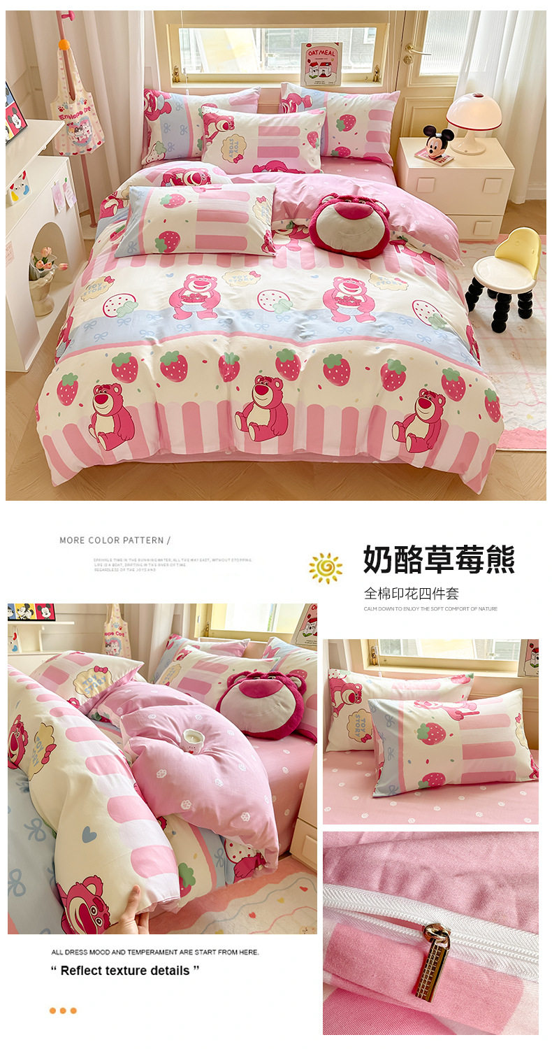 New maternal and infant grade 100 cotton small fresh four-piece cartoon cotton student dormitory three-piece bed hat wholesale