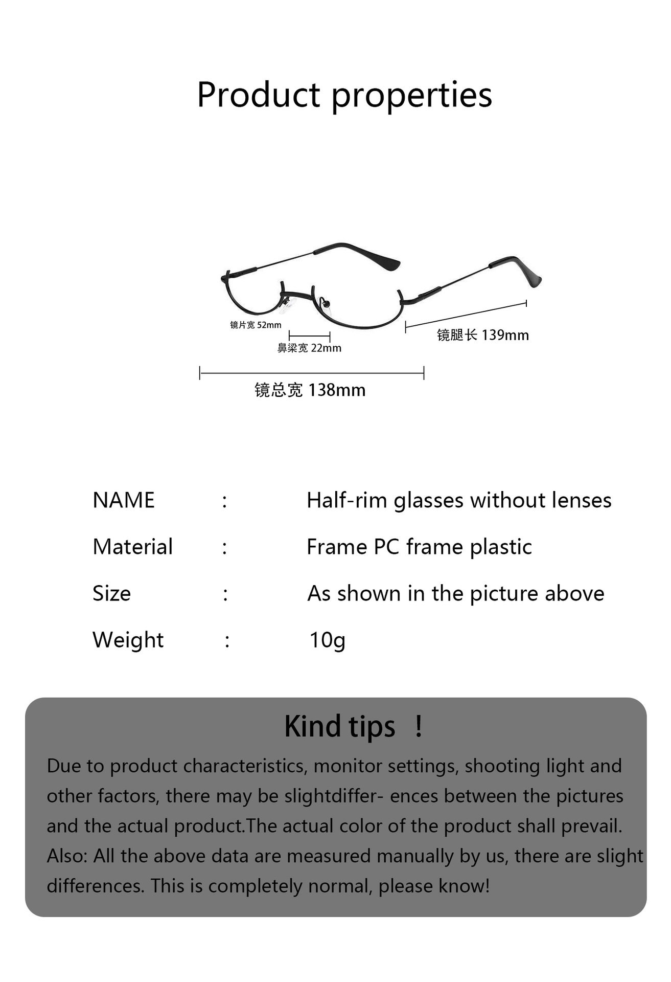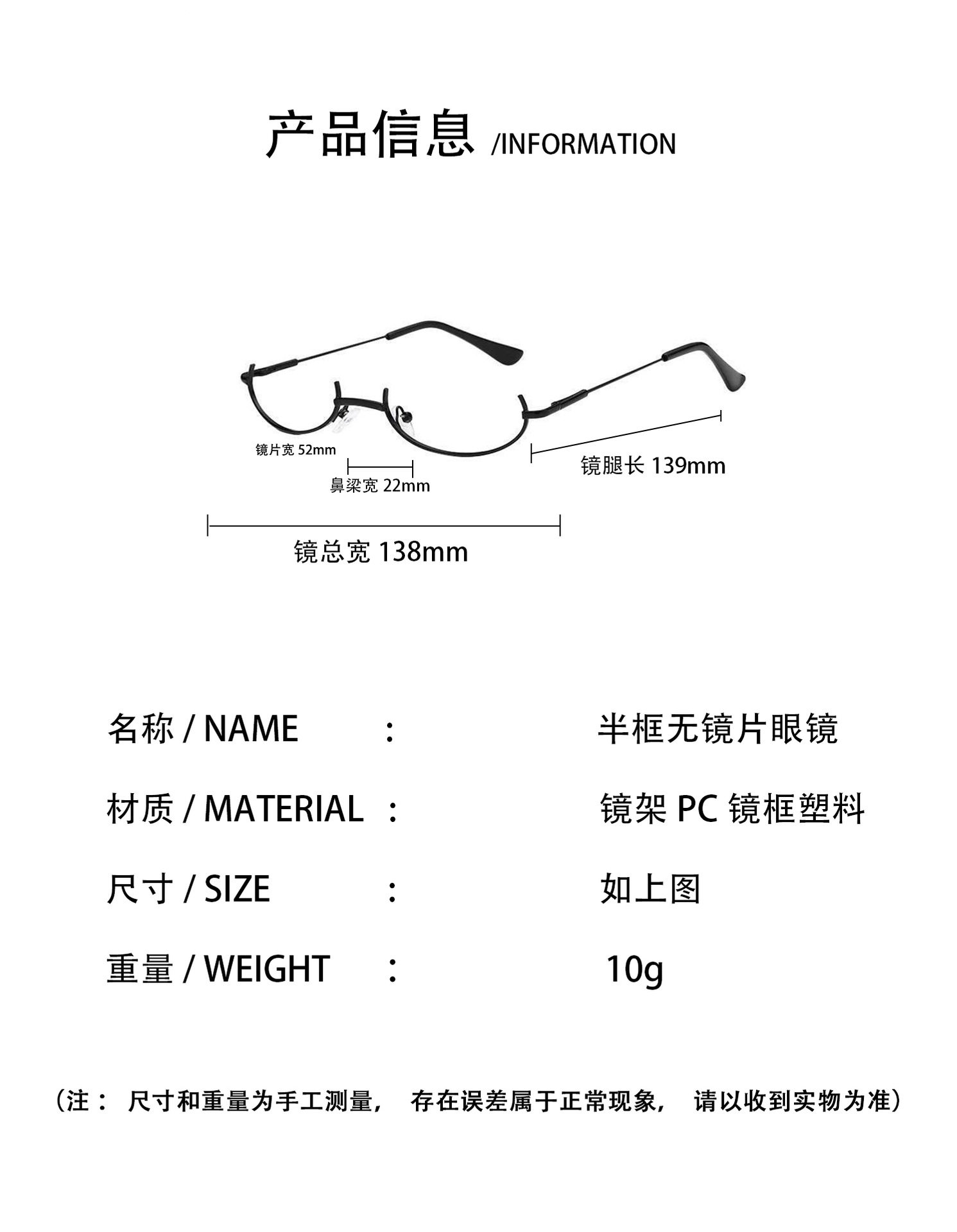 | Glasses structure | Half frame |