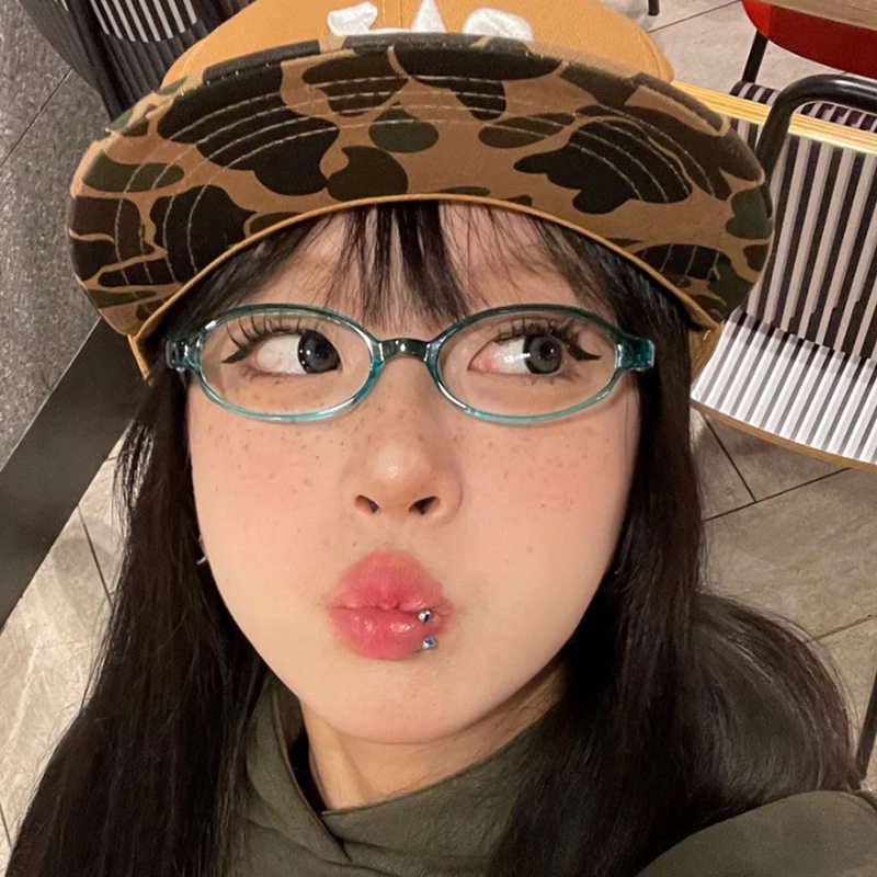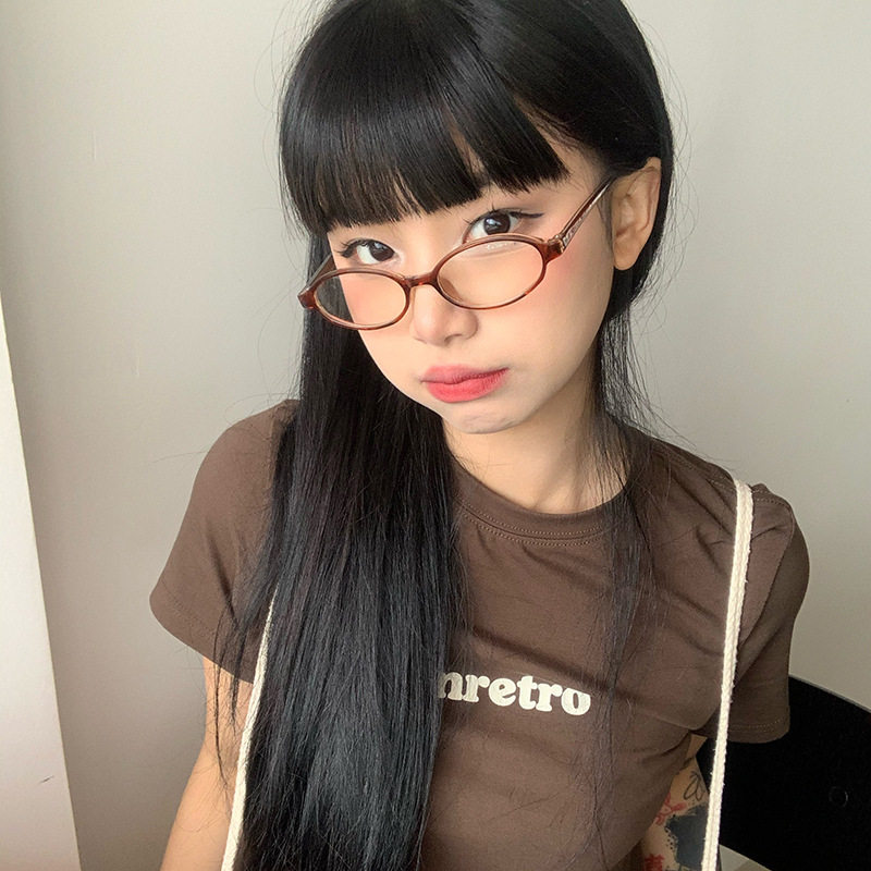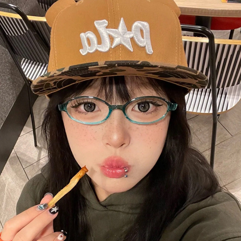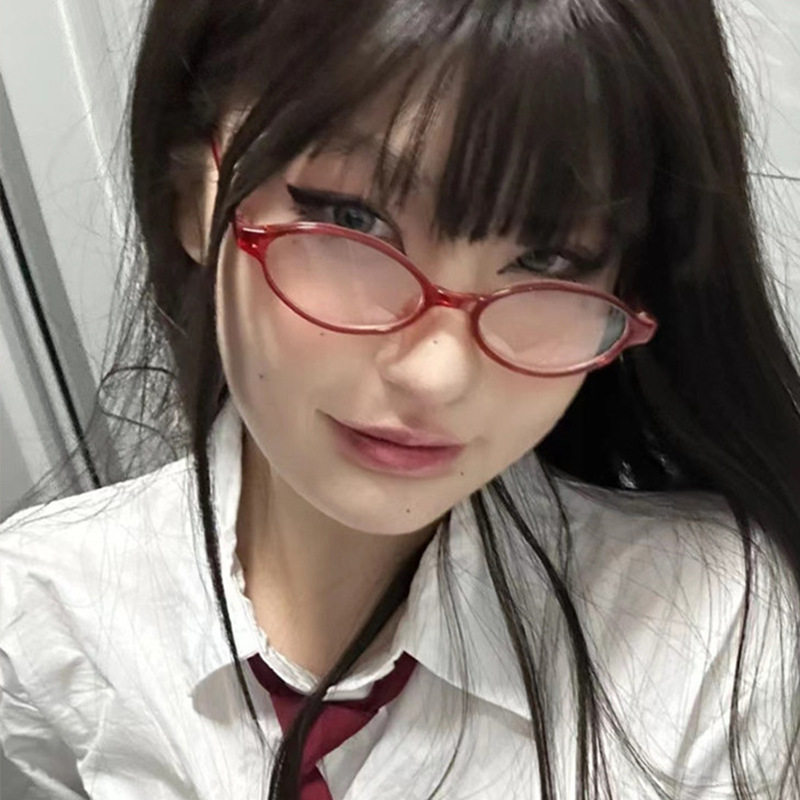 Small Frame Oval Gradient Green Glasses Frame Japanese and Korean Spicy Pure Y2K Spice Girl Flat Glasses Cartoon Secondary Glasses