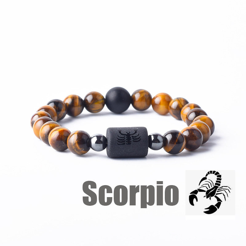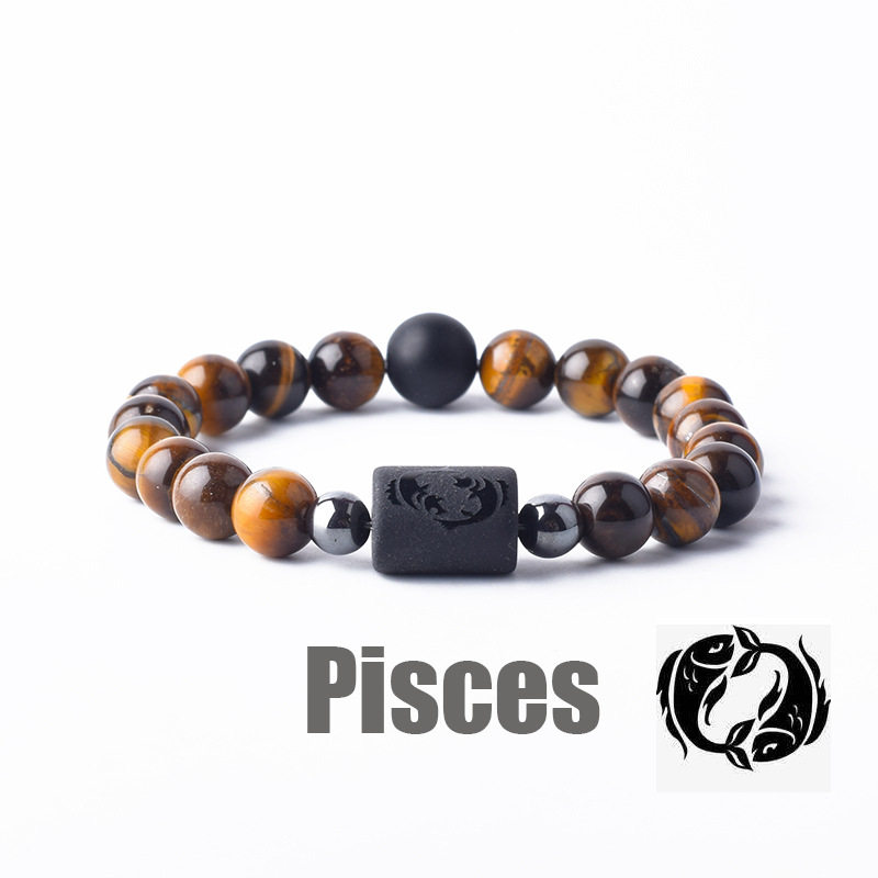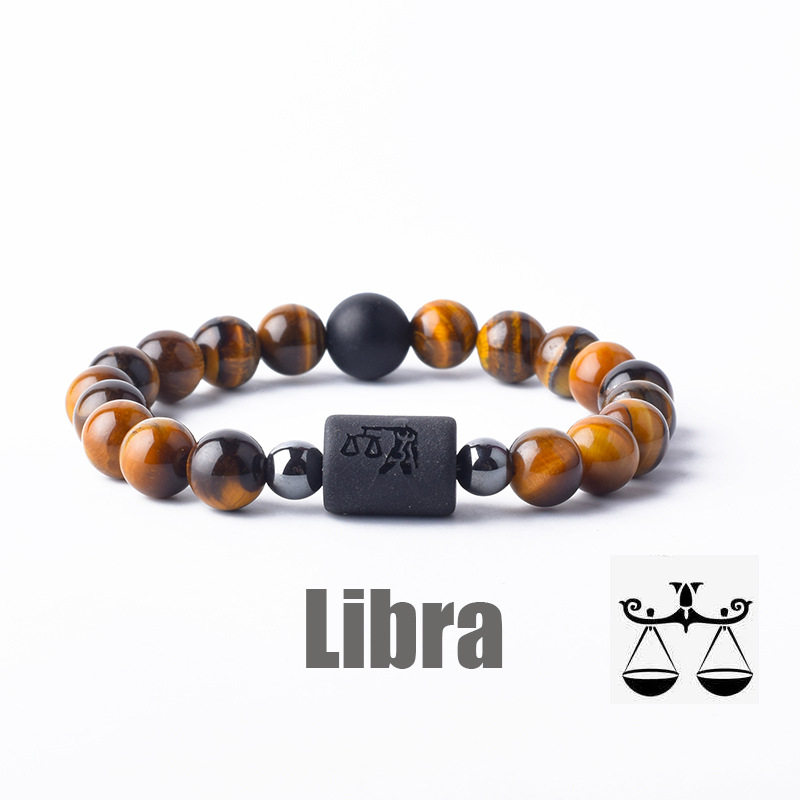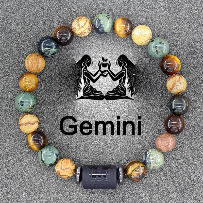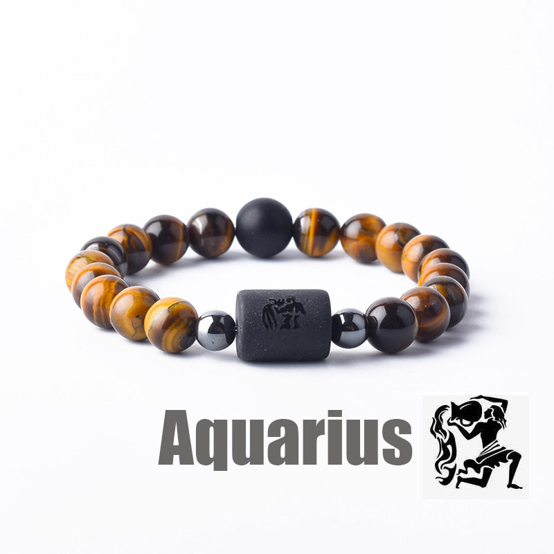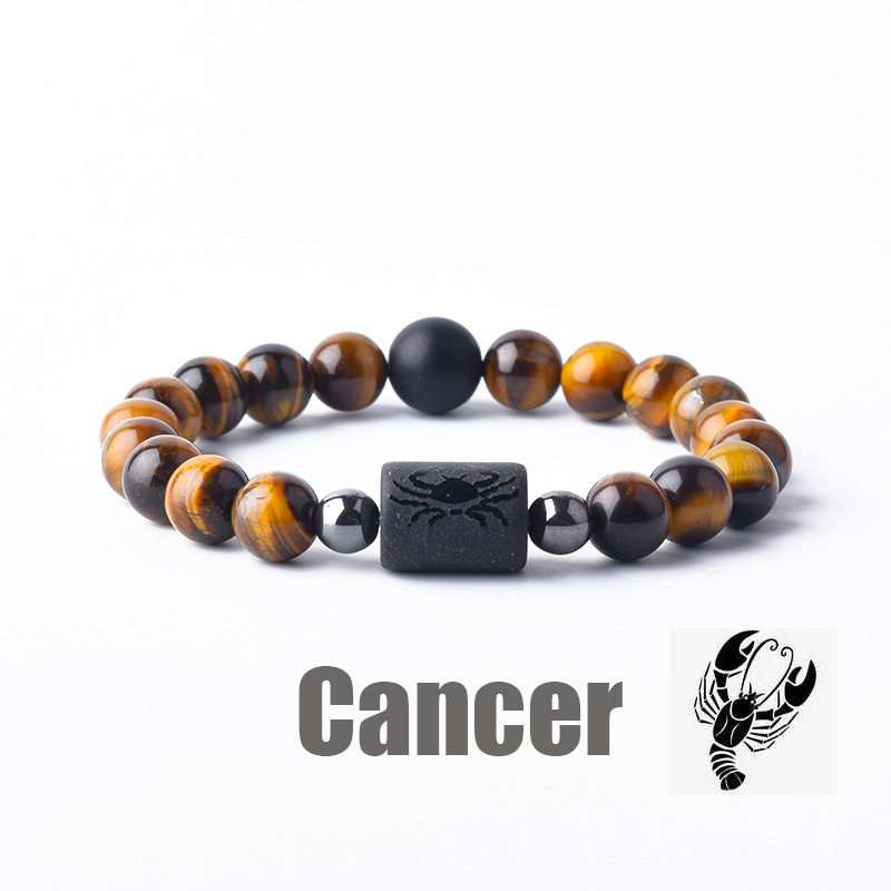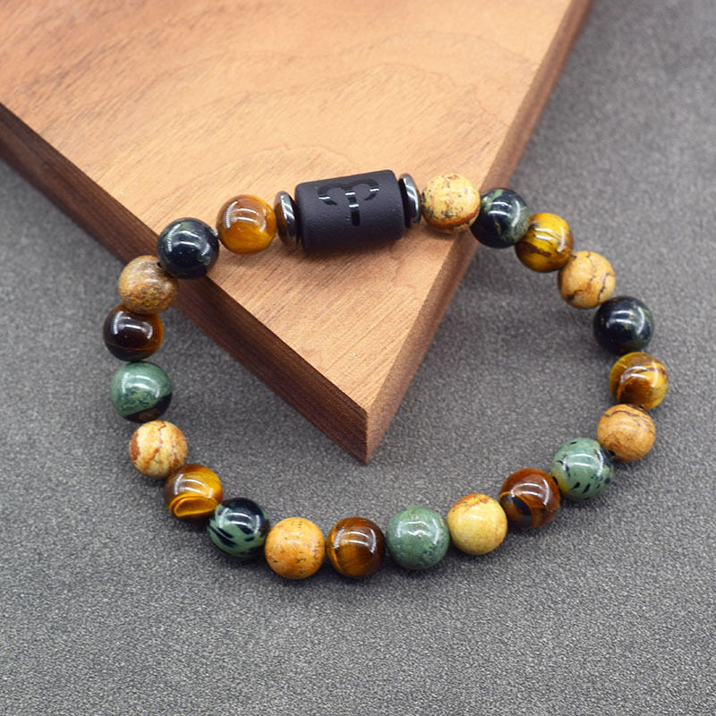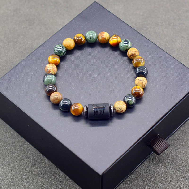 Cross-Border Amazon Zodiac Natural Stone Beaded Bracelet Twelve Zodiac Signs Tiger Eye Stone Picture Stone Bracelet Wholesale