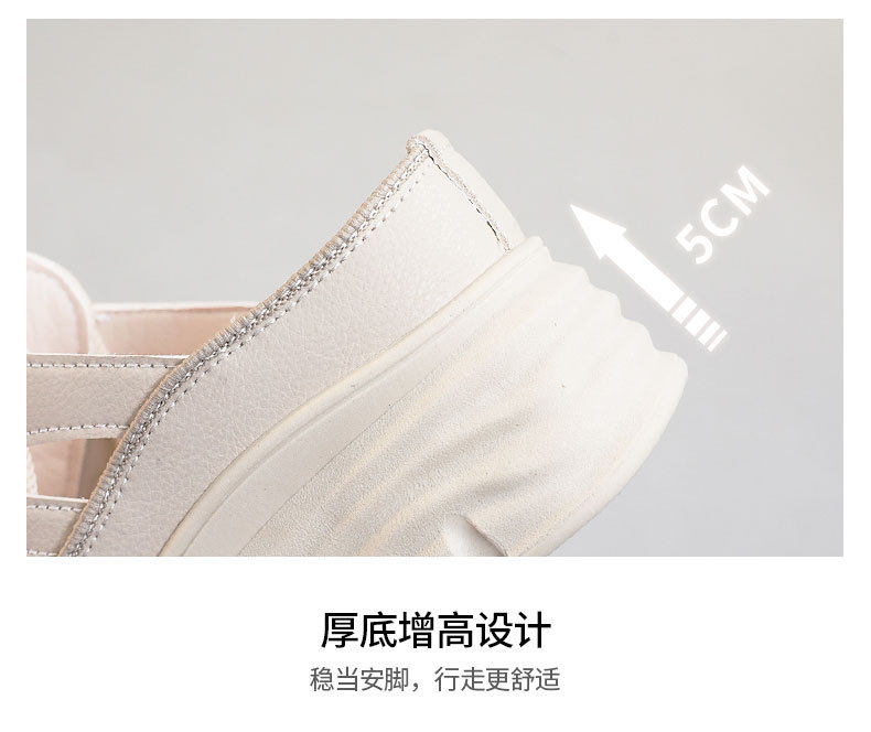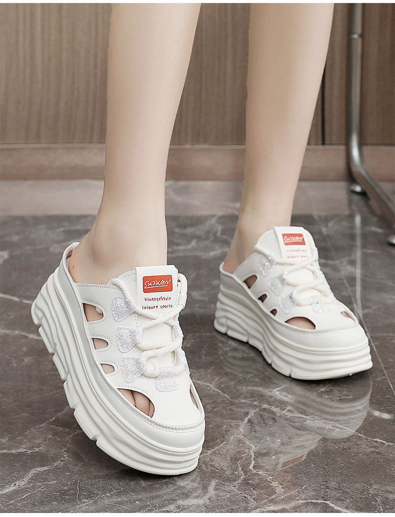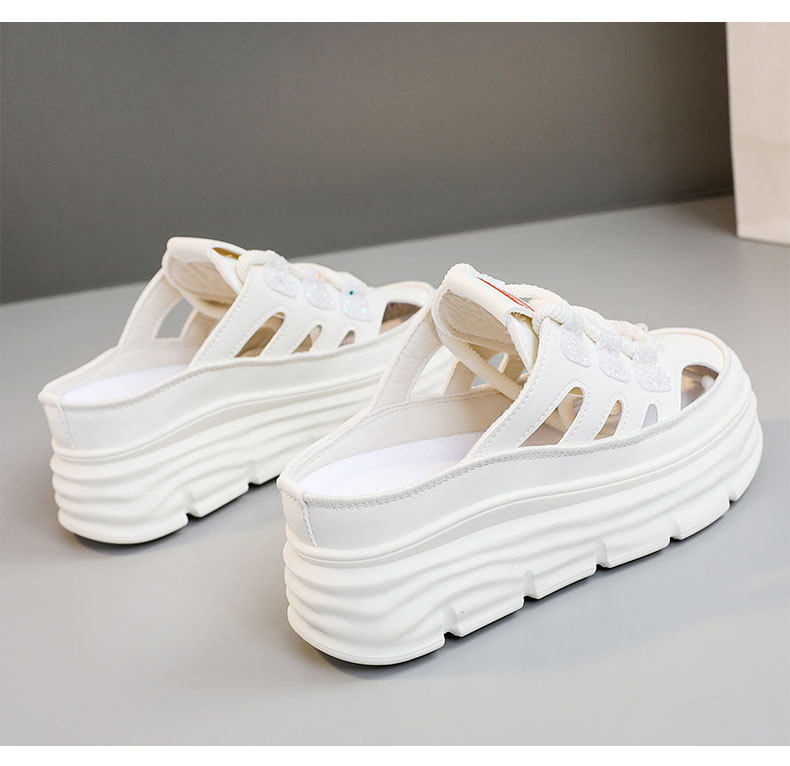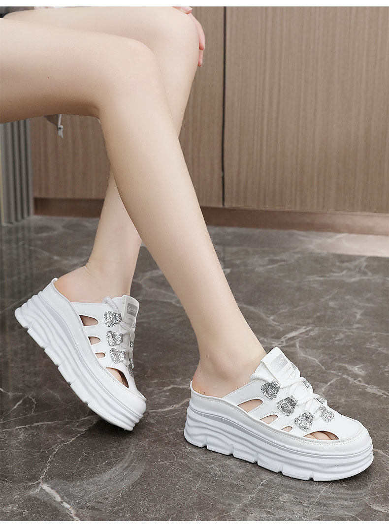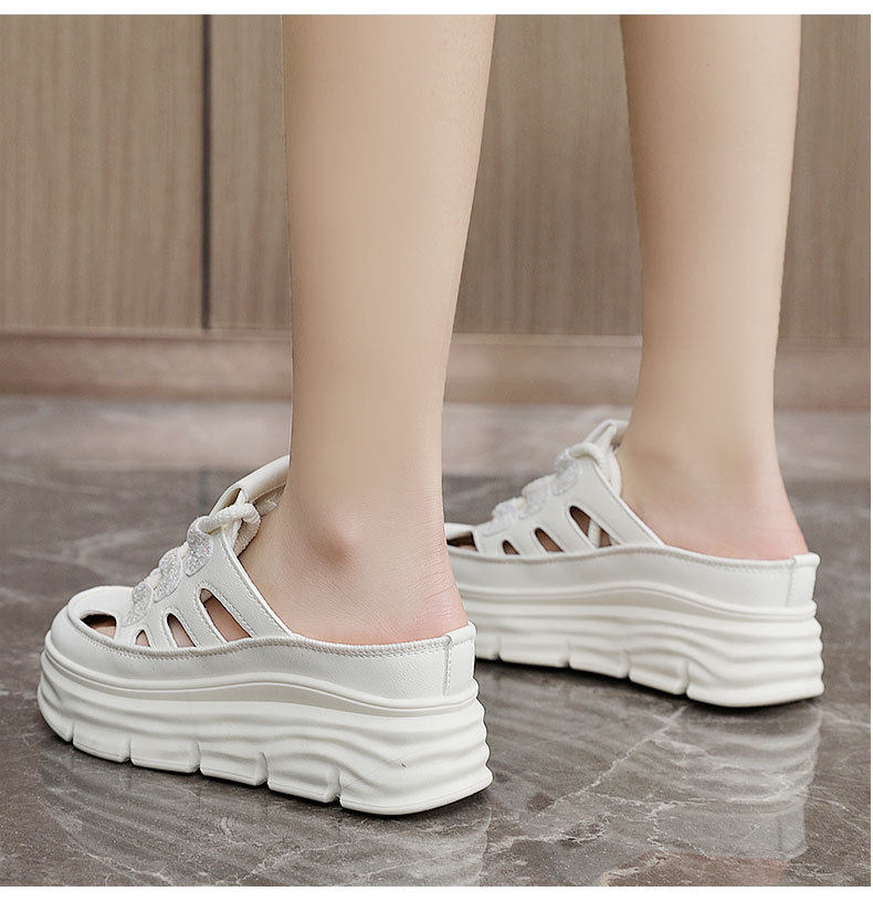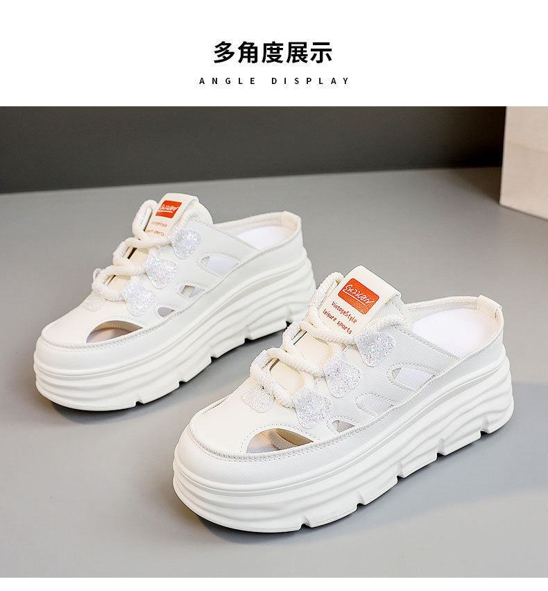 W3650 New Half-Slip Women's 2024 Summer Cut Out Heightening White Shoes Thick-Soled Casual Shoes Women's Sandals Breathable