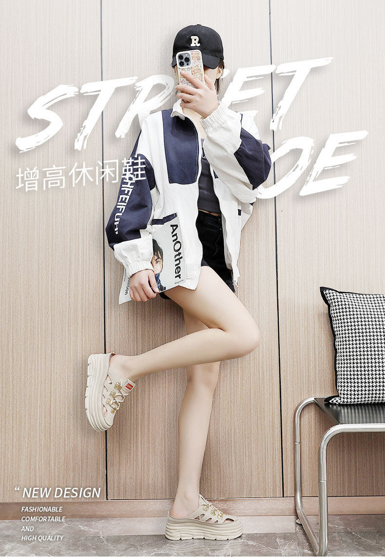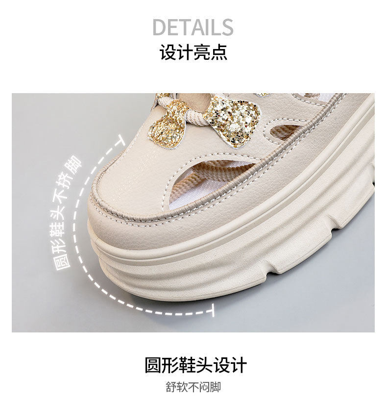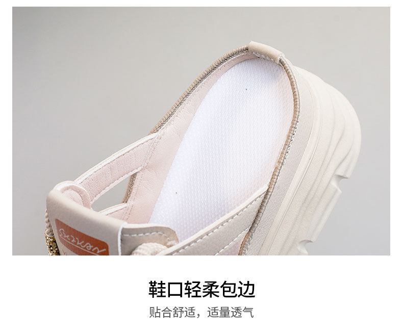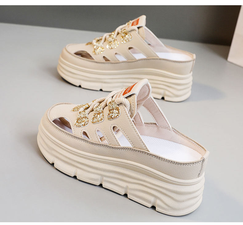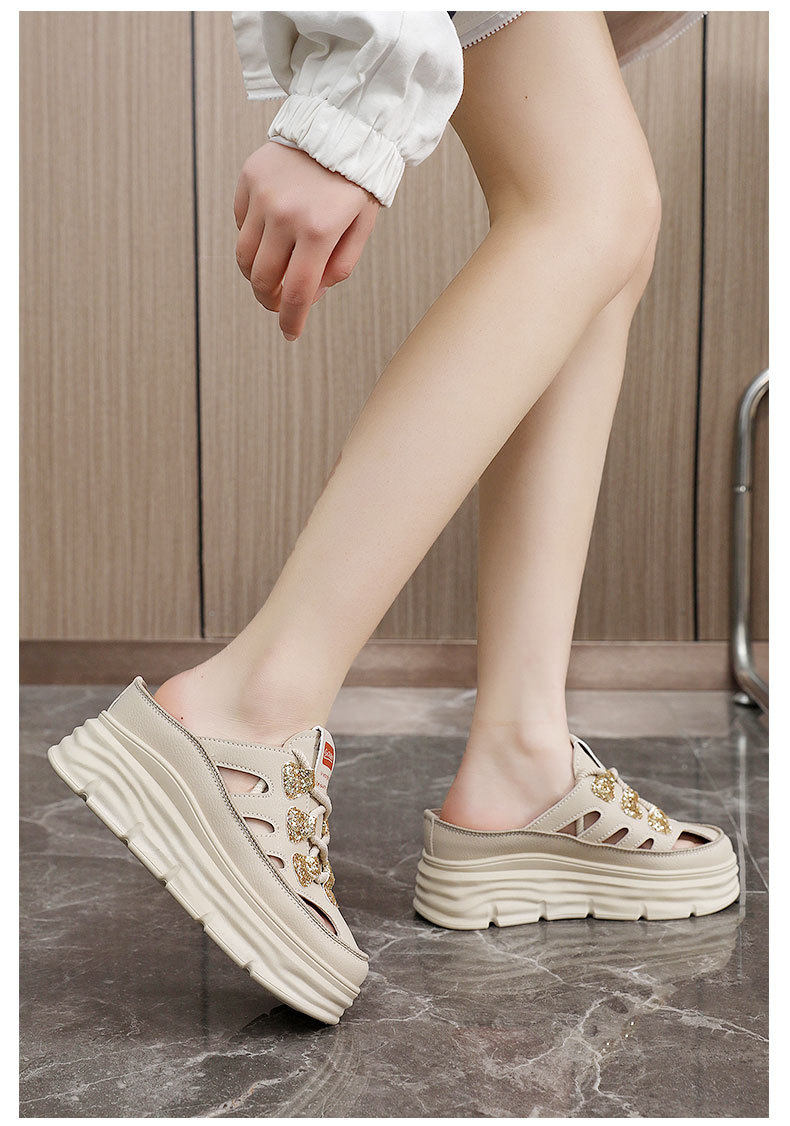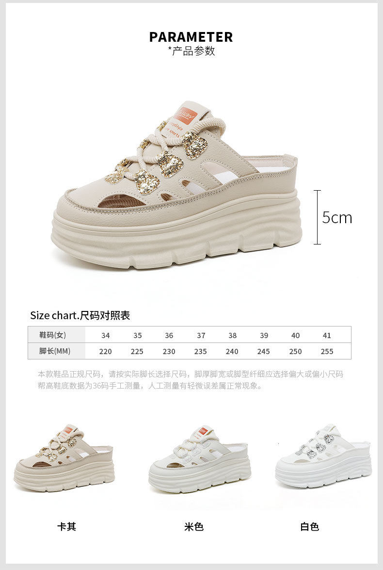 W3650 New Half-Slip Women's 2024 Summer Cut Out Heightening White Shoes Thick-Soled Casual Shoes Women's Sandals Breathable