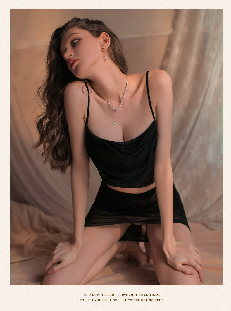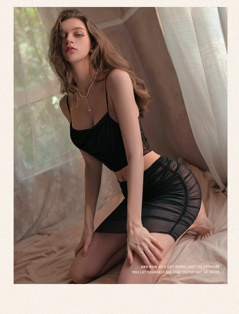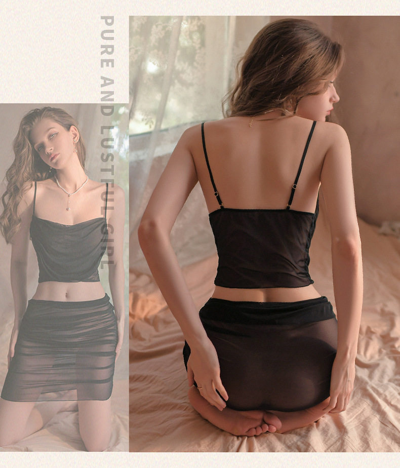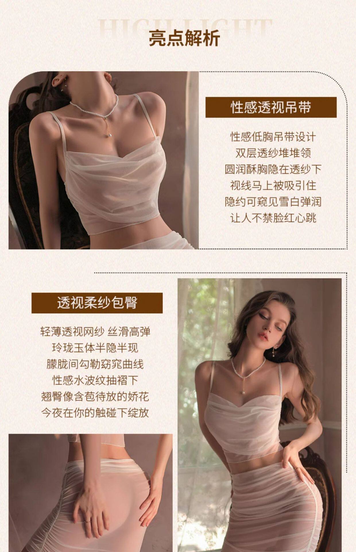 Nine-color life sexy lingerie sexy perspective mesh split tight hip wrap skirt transparent pajamas set wholesale women