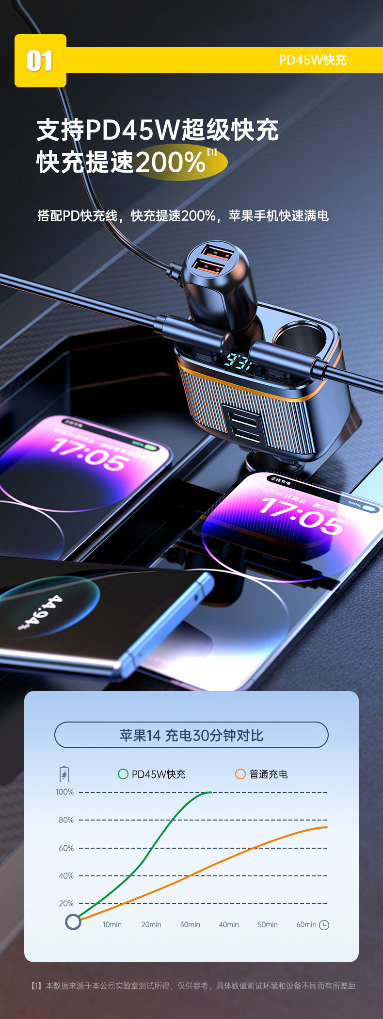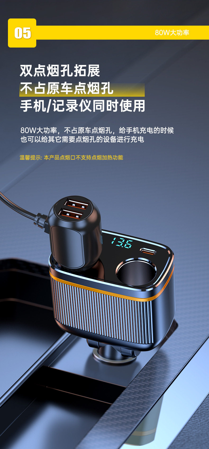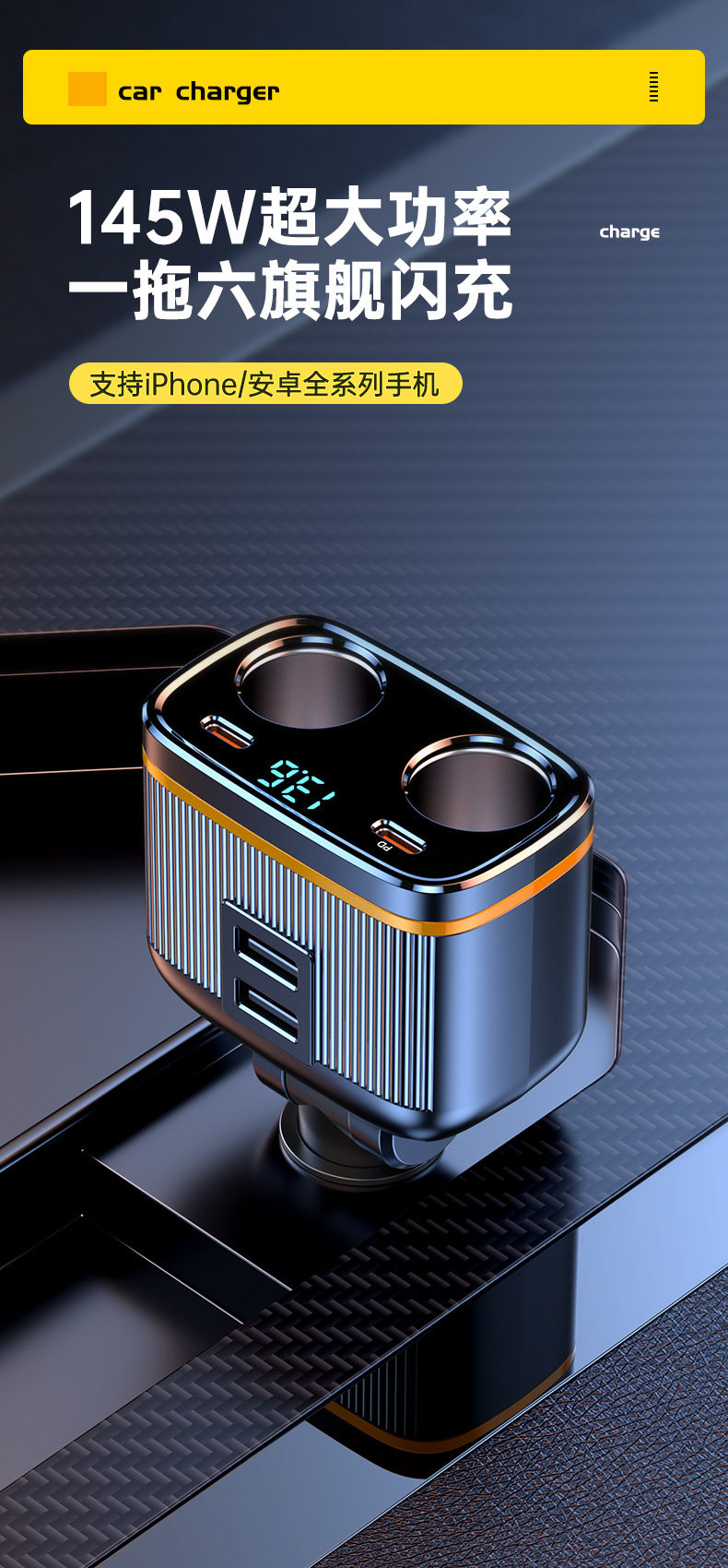 C27 new car charger car cigarette lighter one drag two double hole cigarette lighter extender PD45W fast charge