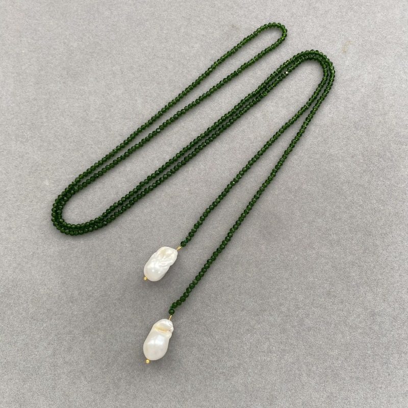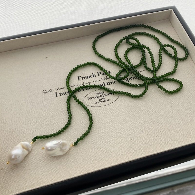 French Niche Emerald Green Pointed Crystal Natural Baroque Pearl Necklace Women's Ins High-end Multi-use Long Chain