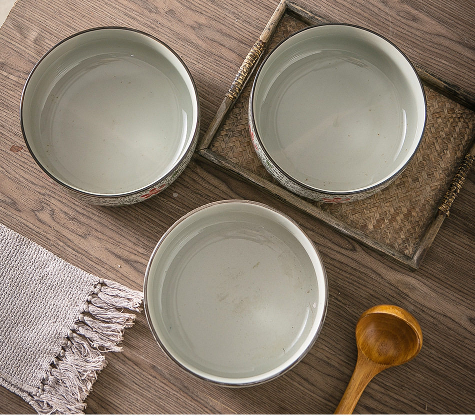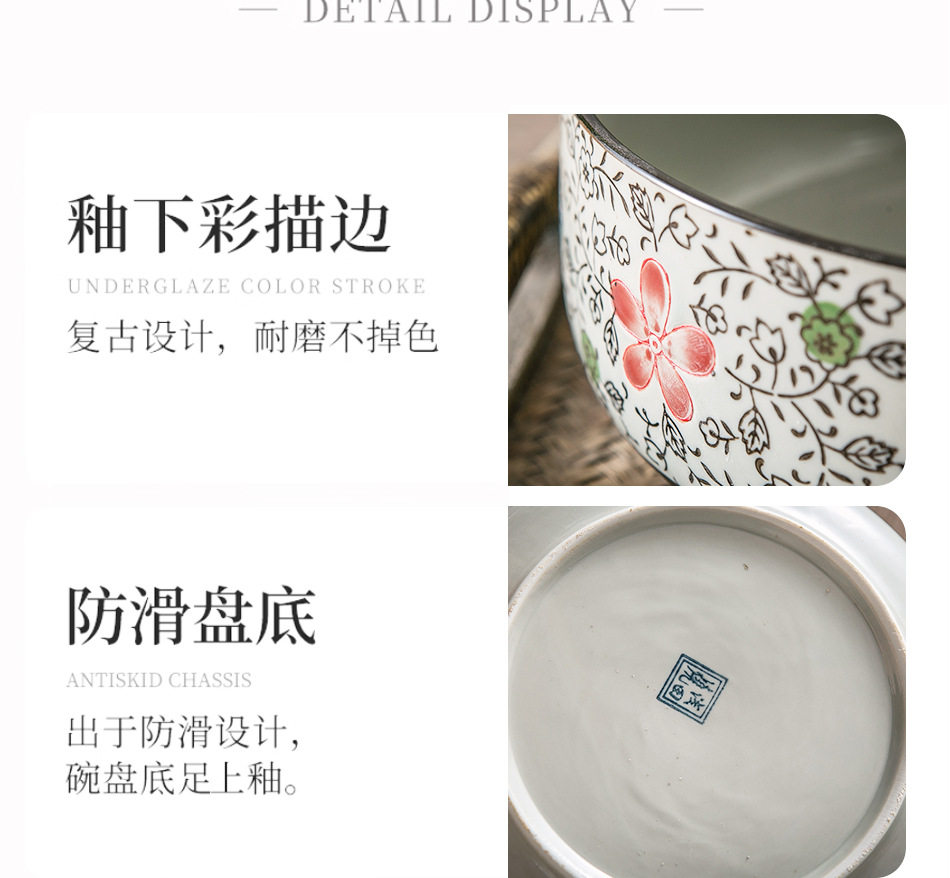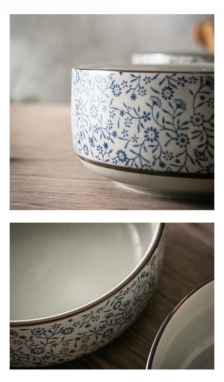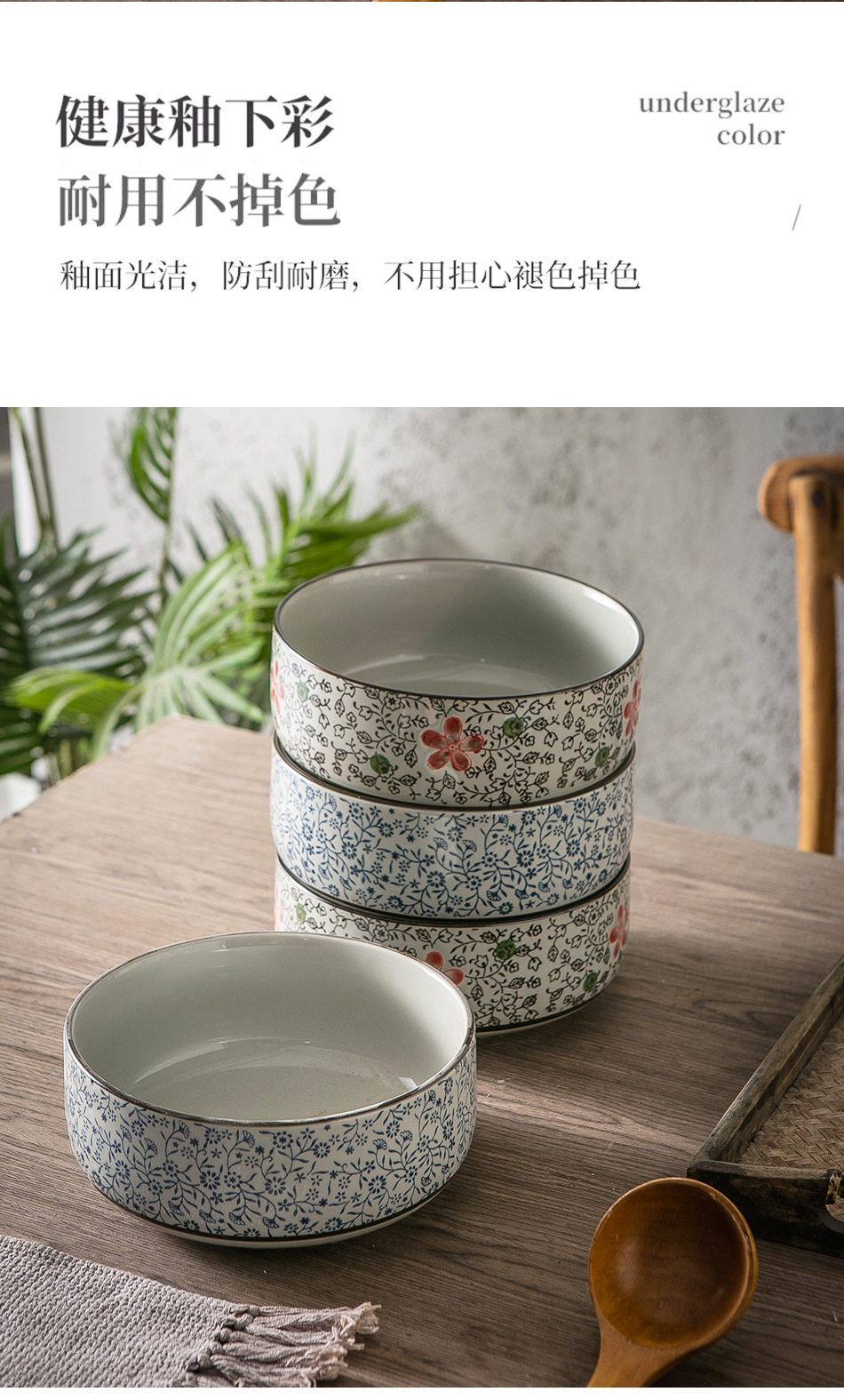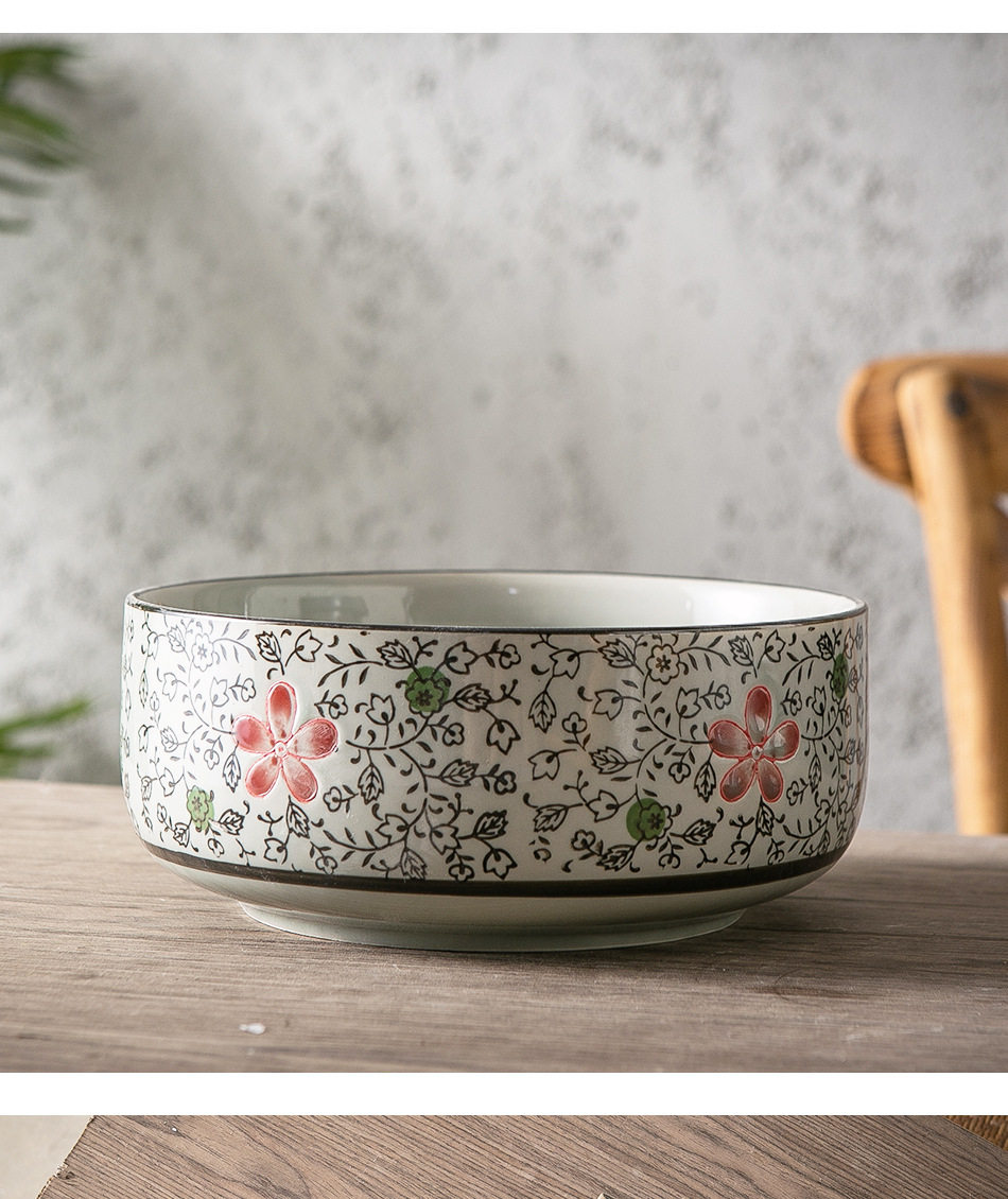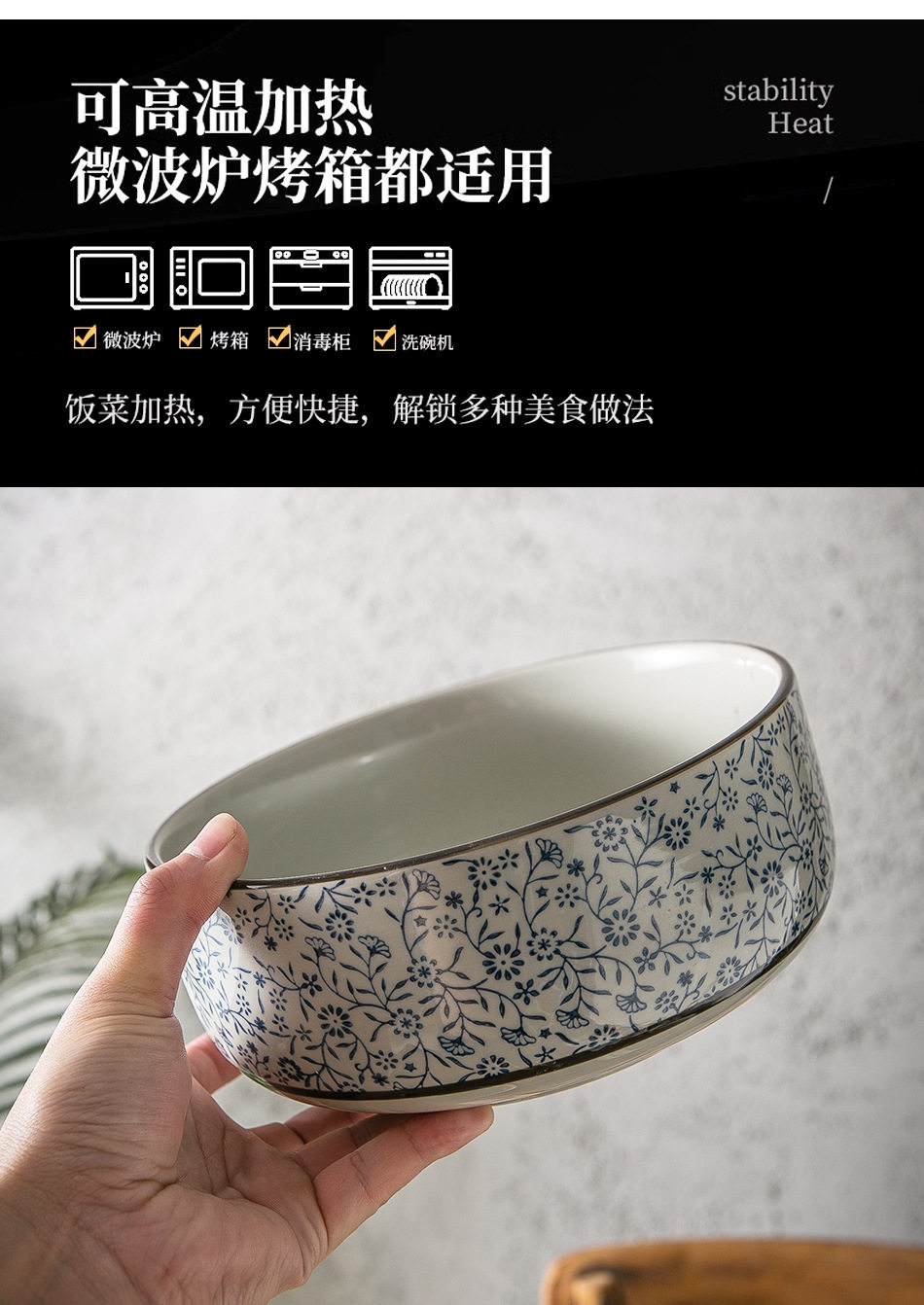 Jixiang Flower Ceramic Large Soup Bowl Straight Body Wide Mouth Noodle Bowl Seafood Soup Bowl Large Ceramic Bowl Household Sweet Soup Bowl
