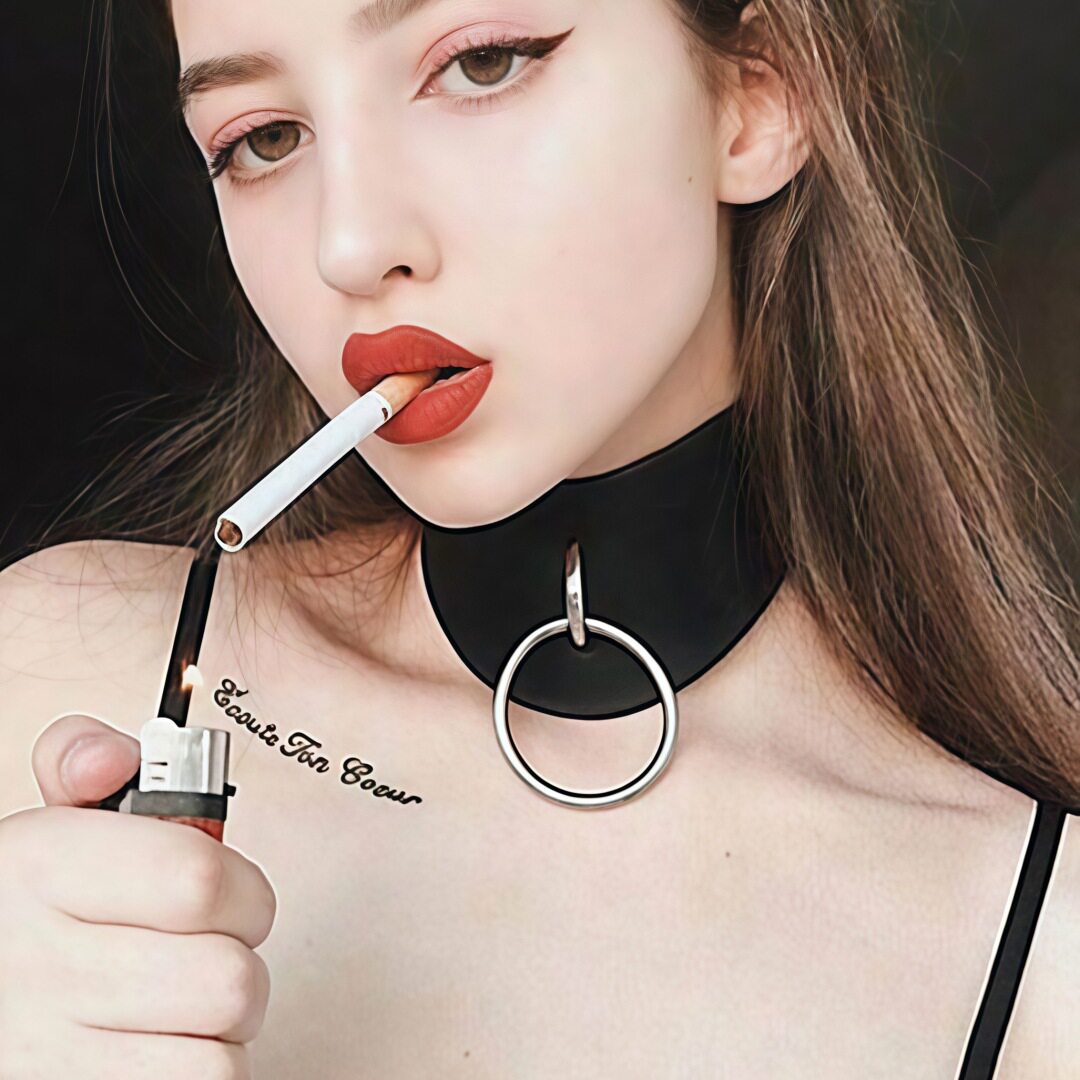 Eco-Friendly Pu Leather European and American Fashion Exaggerated Nightclub Punk O-Ring Necklace Street Style Nightclub Choker Neck Chain