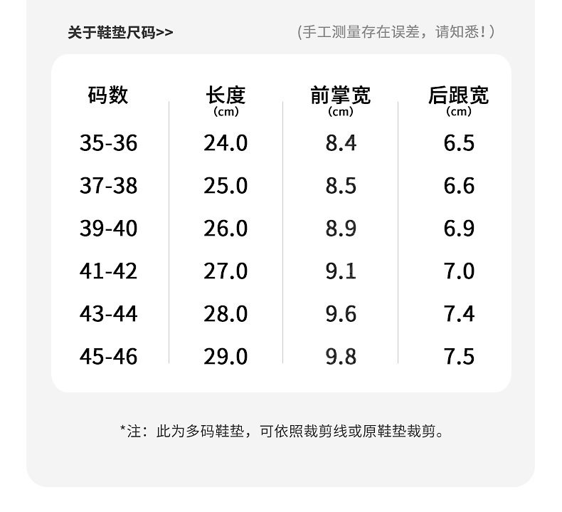 Insole size 35,36,39,38,40,41,42,43,44,45,46,37
