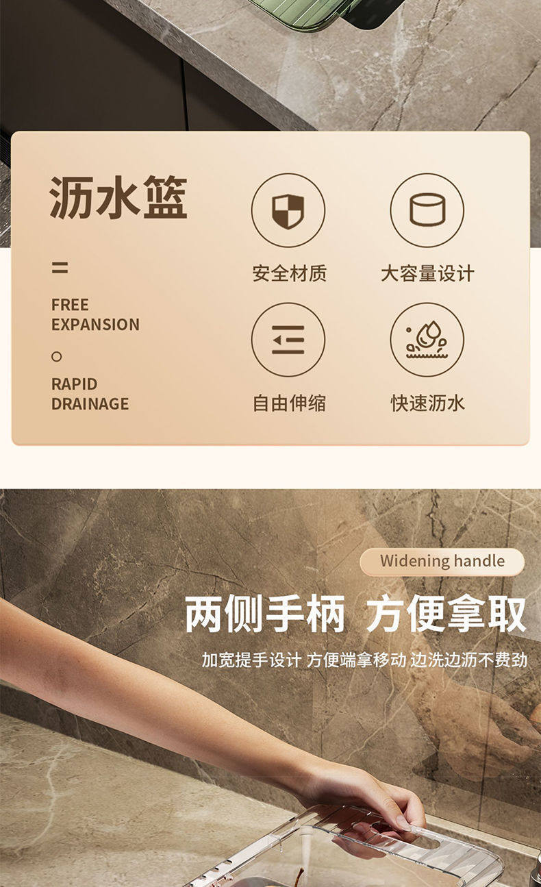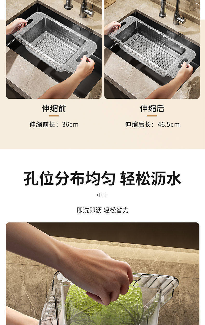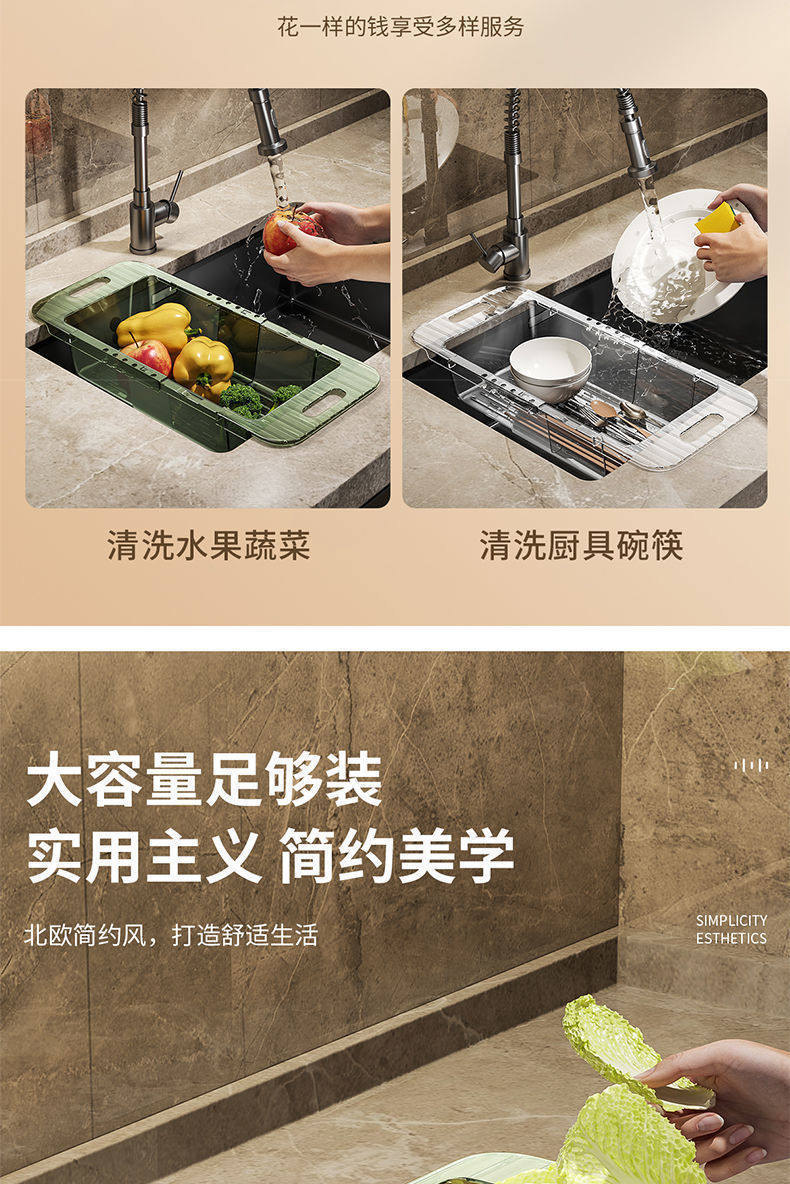 Retractable Drain Basket Kitchen Vegetable Basket Washbasin Drain Home Living Room Fruit Plate Sink Drain Basket Artifact