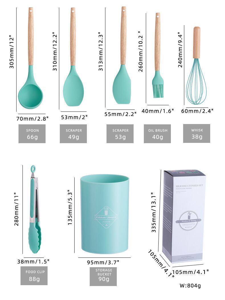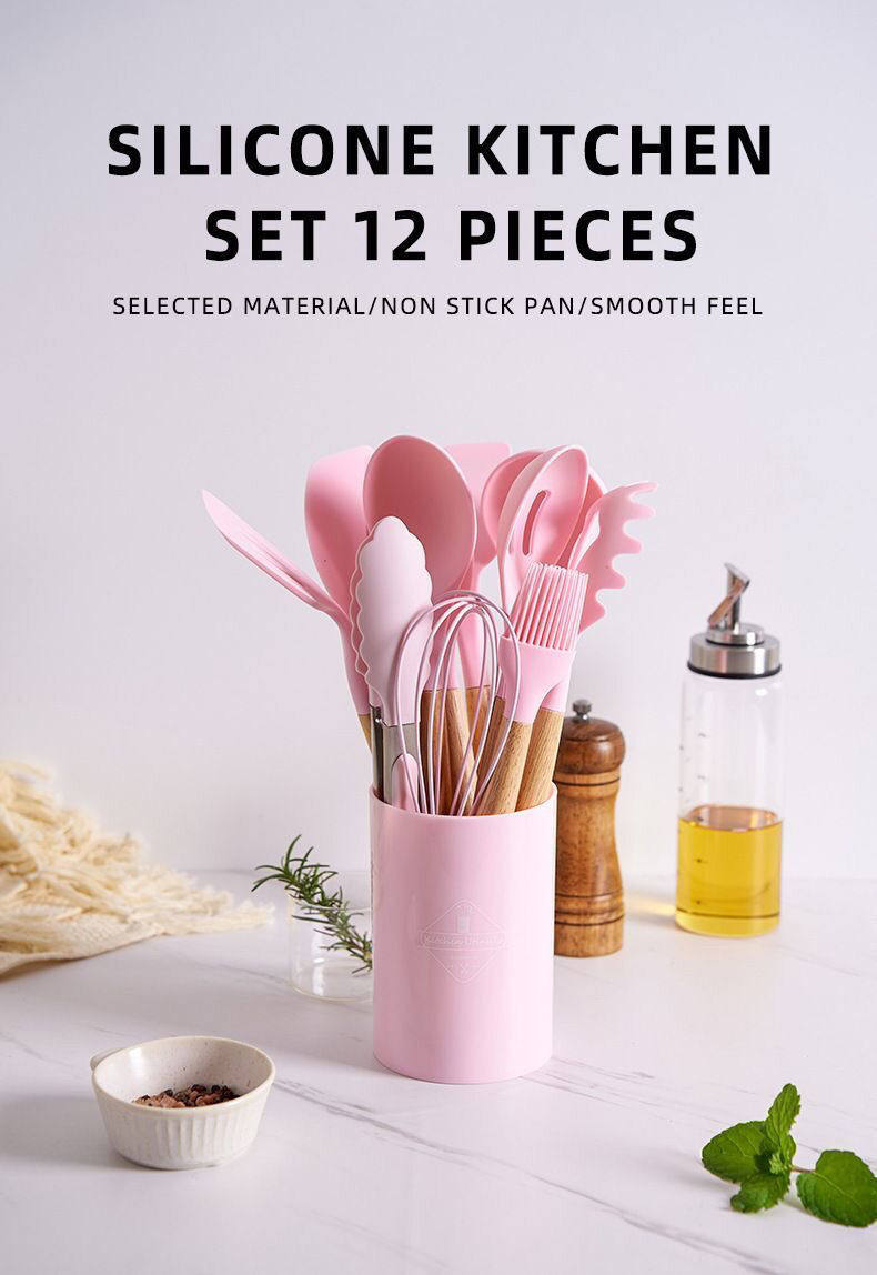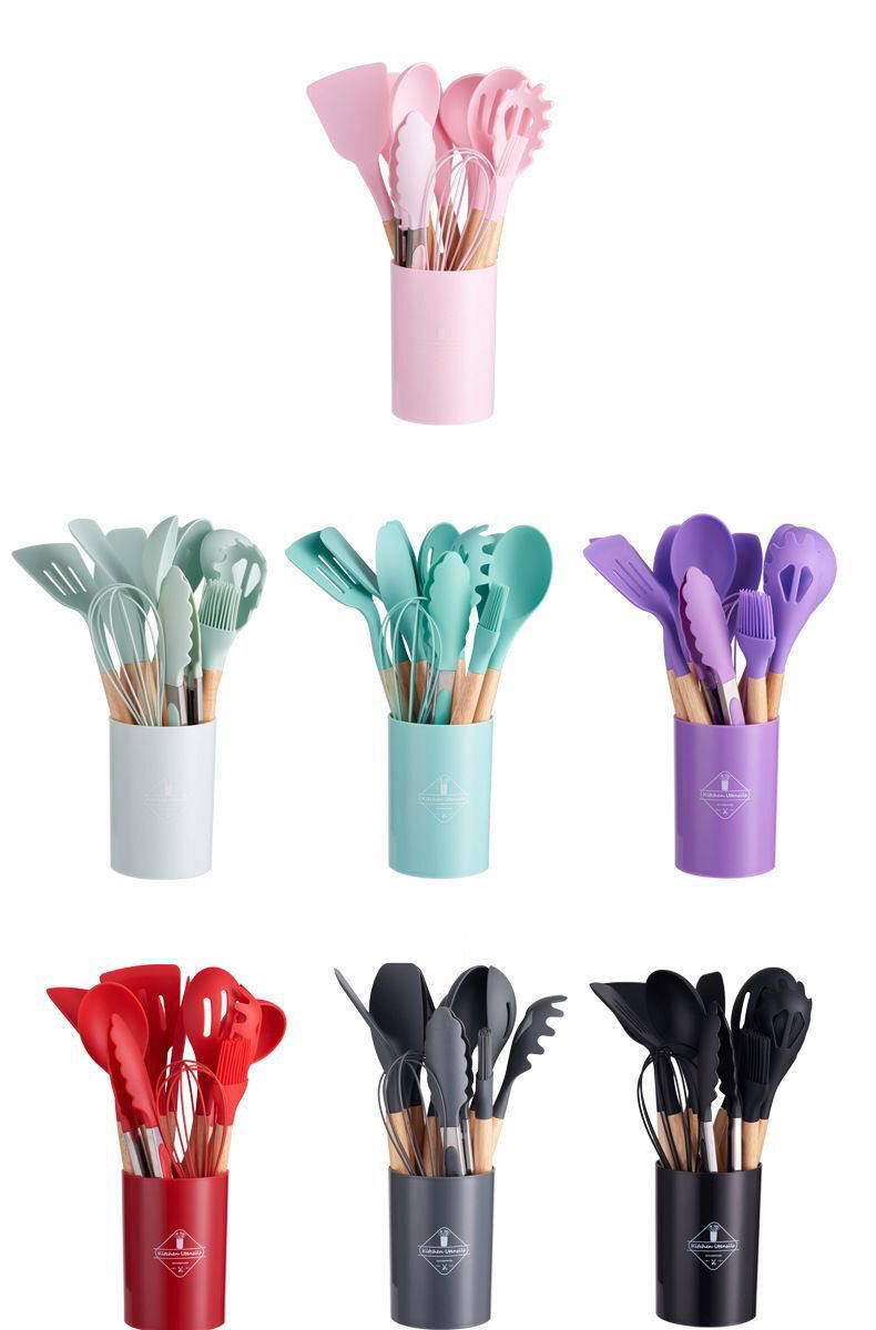 New Cross-Border Silicone Kitchenware Pp Handle 12-Piece Set Non-Stick Pan Silicone Spatula Silicone Spatula Soup Spoon Set Ready for Sale