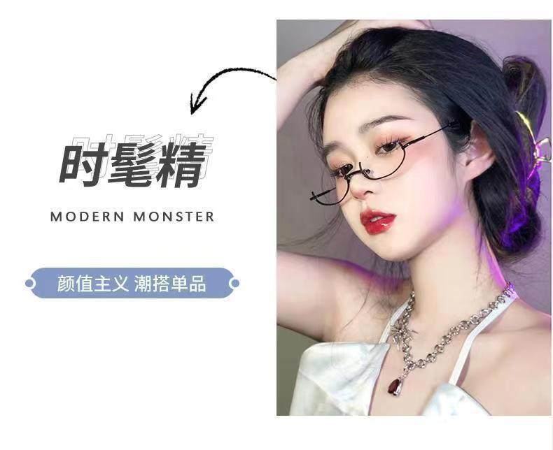 Internet Celebrous Pure Desire Half-rimmed Glasses Without Lenses cos Decorative Glasses Frame Secondary Yuan Yujie Female Jk Soft Sister Glasses Frame